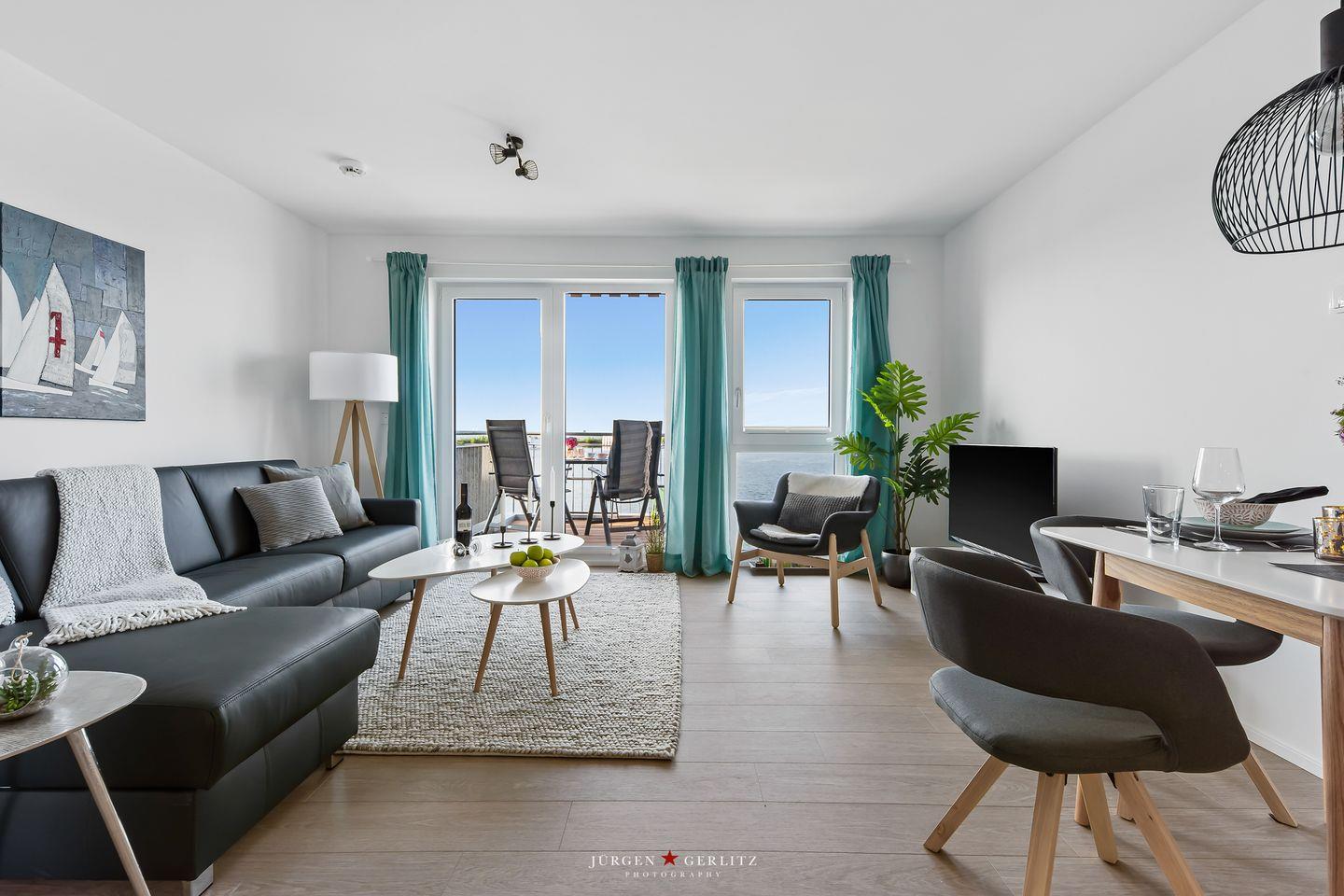 Herzlich willkommen in der bezaubernden Ferienoase "Sea Haven", wo auf ca. 55m² ein traumhafter Blick auf den Hafen und die malerische Schlei auf Sie wartet. Der Wohnbereich ist loftartig gestaltet und verfügt neben einem gemütlichen Sofa über eine moderne Küche und einen stilvollen Essbereich. Die bodentiefen Fenster machen die Wohnung zu einem wahren Lichtblick. Die Küche ist komplett ausgestattet, sodass Sie nach Lust und Laune kochen können. Im Wohnzimmer bietet das Schlafsofa zusätzliche Schlafplätze. Im Schlafzimmer erwartet Sie ein großzügiges Doppelbett (180x200cm), und sowohl hier als auch im Wohnzimmer stehen Ihnen Verdunklungsmöglichkeiten zur Verfügung – für erholsame Urlaubsnächte. Das geräumige und moderne Bad verfügt über eine bodengleiche Dusche. Das Highlight der Wohnung ist der Balkon, von dem Sie einen atemberaubenden Blick auf das Wasser genießen können. Hier lassen Sie den Tag bei einem Glas Wein ausklingen und erleben die Ruhe und Schönheit des Hafens hautnah.