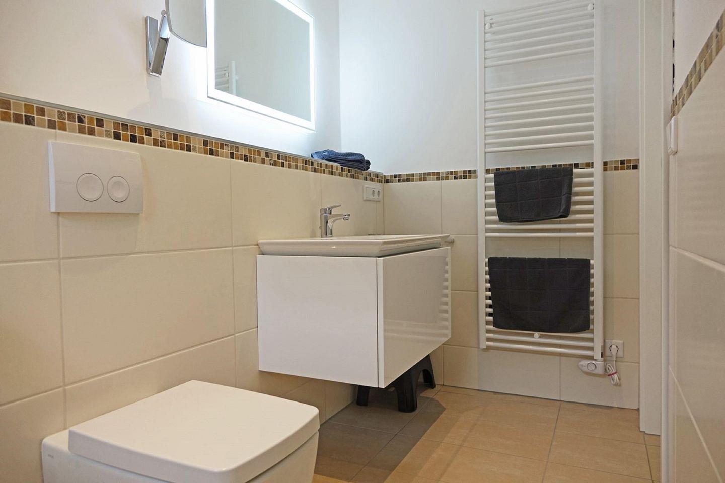 In dem Wohnbereich können Sie es sich vor dem Kamin gemütlich machen & in der vollausgestatteten Küche können leckere Gerichte zubereitet werden. An lauen Sommerabenden kann dank des Weber Elektrogrills gegrillt werden. Die Ferienwohnung bietet ein komfortables Schlafzimmer mit einem Doppelbett. Im Badezimmer erwartet Sie ein Handtuchtrockner, ein Föhn und eine ebenerdige Dusche. Ein eigener Stellplatz mit E-Ladestation und ein abschließbarer Fahrradschuppen befinden sich vor dem Haus.
