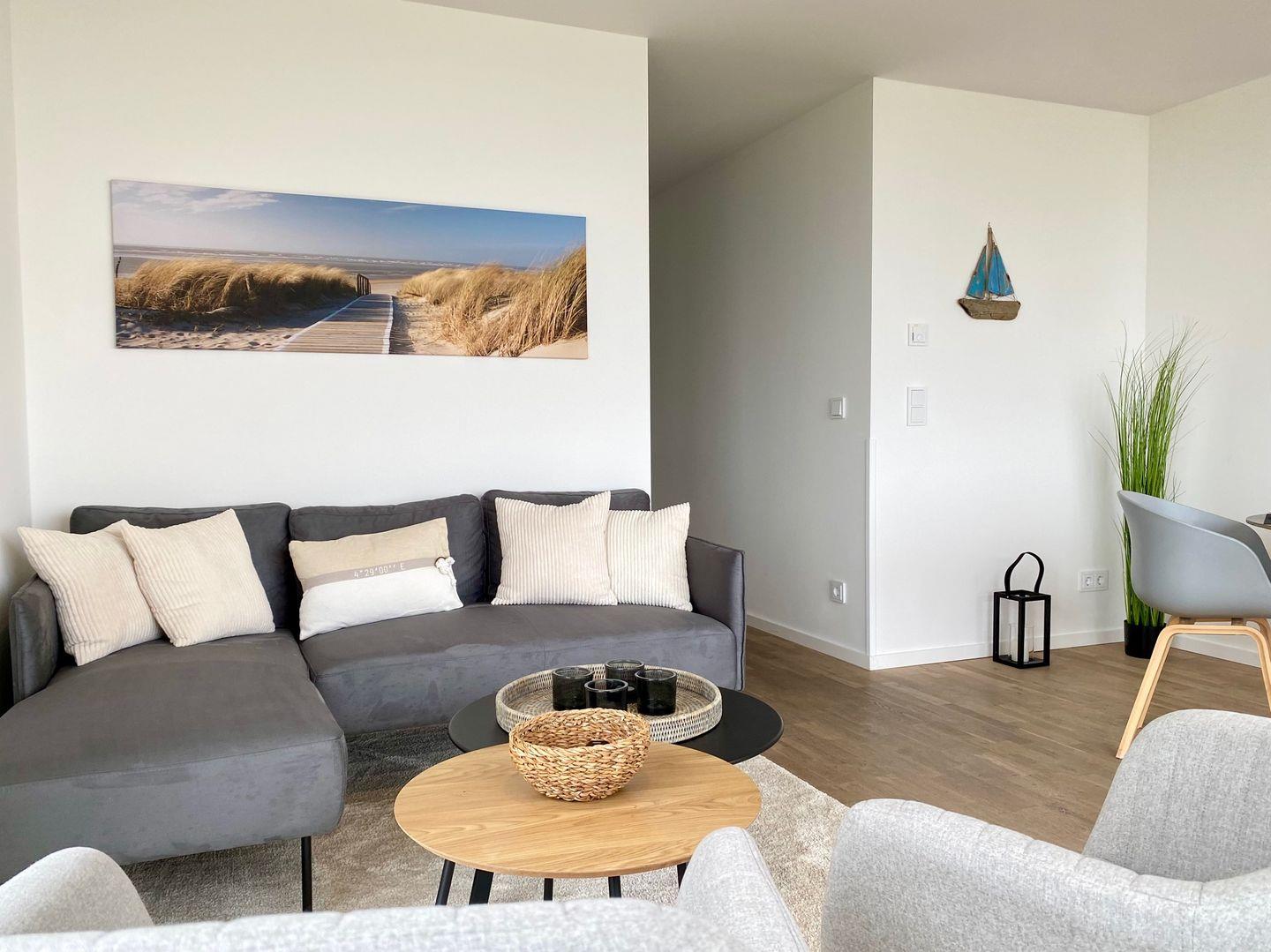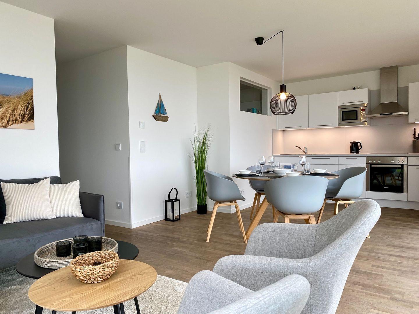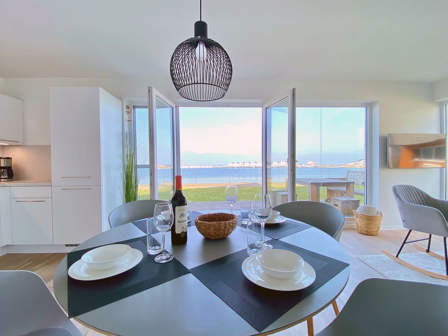 Herzlich willkommen in der traumhaften Ferienwohnung "Pier 21" mit atemberaubendem Meerblick in Olpenitz! Hier erwartet Sie auf großzügigen 83m² ein Urlaubserlebnis der Extraklasse mit einem offenen Wohn- und Essbereich, einer vollausgestatteten Küche, zwei Schlafzimmern, einem luxuriösen Badezimmer und einer einladenden Terrasse. Der Wohnbereich ist ein Rückzugsort, um dem Alltag zu entfliehen und inmitten einer entspannten Atmosphäre zur Ruhe zu kommen. In der vollausgestatteten Küche können Sie nach Lust und Laune kulinarische Meisterwerke zaubern und die köstlichen Mahlzeiten dann entweder am Esstisch oder auf der malerischen Sonnenterrasse genießen, die Ihnen einen atemberaubenden Blick auf das Meer bietet. Für unsere kleinen Gäste stehen ein Kinderreisebett und ein Kinderhochstuhl bereit, damit auch die jüngsten Familienmitglieder einen komfortablen Aufenthalt genießen können. Die beiden Schlafzimmer der Ferienwohnung versprechen erholsamen Schlaf – beide sind mit großzügigen Doppelbetten (180x200cm) ausgestattet, eins davon verfügt über einen Smart-TV. Beide Schlafzimmer sind mit Insektenschutzgittern versehen, um ruhige Nächte zu garantieren. Im Badezimmer erwartet Sie neben einem Handtuchtrockner und einem Föhn, eine luxuriöse Whirlwanne sowie das Highlight – eine Infrarot-Sauna! Hier können Sie nach langen Strandspaziergängen oder aufregenden Ausflügen Ihre Sinne verwöhnen und vollkommen abschalten. Die Terrasse lädt zu gemütlichen Sommerabenden unter freiem Himmel ein, wo Sie die frische Ostseeluft und den Meerblick in vollen Zügen genießen können. Tagsüber bietet sich dieser Ort auch perfekt für entspannte Lesestunden an.