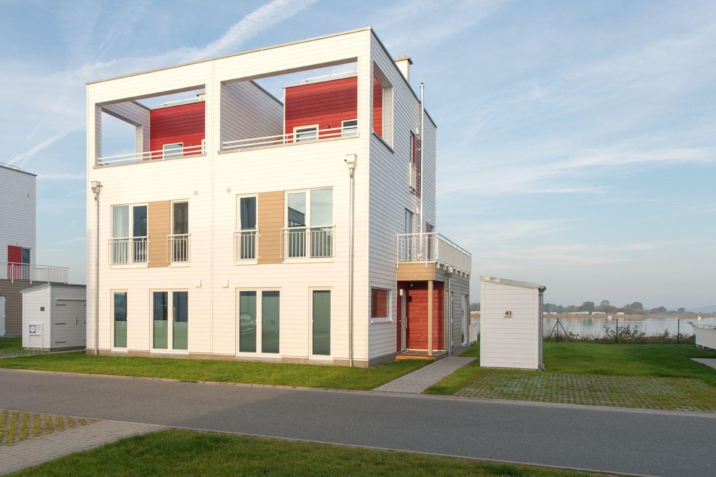 Das Ferienhaus "Nordlicht" bietet zwei Badezimmer, ein Gäste-WC, einen offenen Wohn- und Essbereich, sowie Terrassen mit Wasserblick auf jeder Ebene. Die zwei Schlafzimmer mit Doppelbetten ausgestattet. Highlight sind die finnische Sauna und eine Whirlwanne. Es gibt zwei Stellplätze und einen abschließbaren Fahrradschuppen.