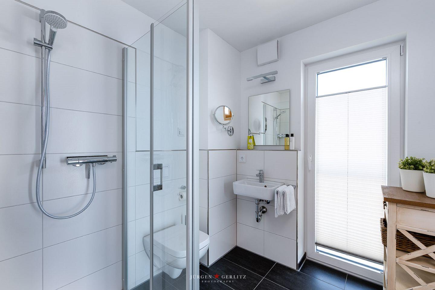 Willkommen im Ferienhaus "Nordlicht" in Olpenitz! Ankommen und Wohlfühlen! Das moderne Ferienhaus bietet auf 146m² zwei Schlafzimmer, zwei Badezimmer, eine finnische Sauna, ein Gäste-WC, einen offenen Wohn- und Essbereich und 4 Terrassen. In dem im Erdgeschoss gelegenen, einladenden Wohn- und Essbereich kann auf dem Sofa vor dem Flachbild-TV entspannt werden. An "Schietwetter"-Tagen sorgt der Kamin für eine gemütliche Atmosphäre und wohlige Wärme. Die angrenzende Terrasse bietet einen Strandkorb, von dem aus Sie einen wunderschönen Blick auf die Schlei haben - Urlaub pur! Die moderne, vollausgestattete Küche bietet alles für gesellige Kochabende mit der ganzen Familie. Für unsere kleinen Gäste stehen ein Kinderhochstuhl und ein Kinderreisebett bereit. Die Schlafzimmer im 1. Obergeschoss bieten zwei gemütliche Doppelbetten (180x200cm und 160x200cm) sowie Verdunkelungsmöglichkeiten für erholsame Urlaubsnächte. Das Schlafzimmer zur Wasserseite bietet einen Balkon mit einem atemberaubenden Blick auf die Schlei und in dem anderen Schlafzimmer mit Flachbild-TV kann der Ausblick auf den Hafen in Olpenitz genossen werden. Im 2. Obergeschoss lädt zusätzlich ein kleines Studio mit Wasserblick, Sofa und Schreibtisch zu gemütlichen Stunden ein. "Nordlicht" verfügt über ein Gäste-WC im Erdgeschoss, ein Badezimmer mit Whirlwanne und Balkon im 1. Obergeschoss und ein großzügiges Badezimmer mit ebenerdiger Dusche im 2. Obergeschoss und angeschlossener finnischer Sauna. Hier können Sie nach langen Strandspaziergängen herrlich entspannen und die Seele baumeln lassen. Das absolute Highlight befindet sich ebenfalls im 2.Obergeschoss - die Dachterrasse mit faszinierendem Ausblick über den Hafen, die Schlei und die Ostsee. Hier können in geselliger Runde die Sommerabende an der frischen Luft ausgeklungen werden. Neben dem Ferienhaus sind zwei Parkplätze und ein abschließbarer Fahrradschuppen für Sie reserviert. Eine E-Ladestation steht ebenfalls bereit.