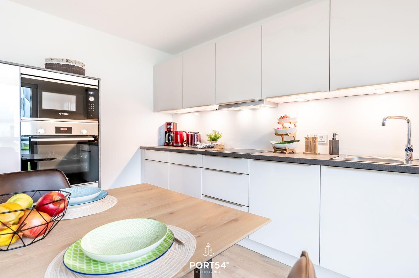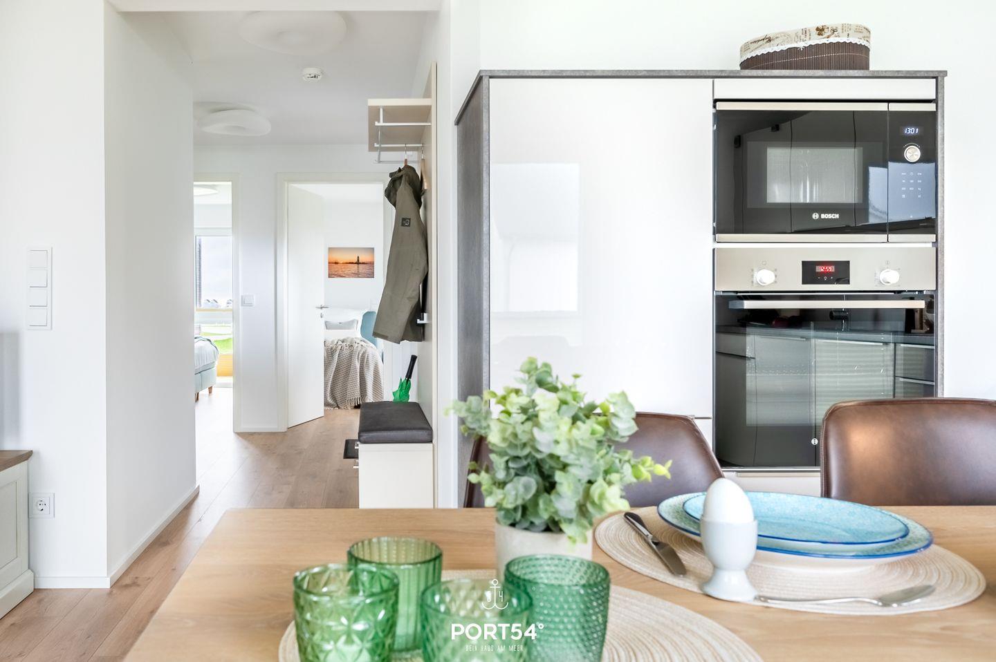 Die Ferienwohnung "Plüschappel" befindet sich im neuerbauten OstseeResort Olpenitz. Willkommen in der Ferienwohnung "Plüschappel" - Ihrem stilvollen Rückzugsort für entspannte Urlaubstage an der Ostsee! Tauchen Sie auf großzügigen 76m² in ein modernes Ambiente ein, das Ihnen barrierearmen Komfort und höchste Entspannung verspricht. Der offene Wohn- und Essbereich ist das Herzstück des "Plüschappels". Ein einladender Kamin schafft eine behagliche Atmosphäre, während die angrenzende Terrasse zum Verweilen einlädt. Die großzügige Couch im Wohnzimmer bietet den perfekten Ort zum Relaxen und gemütlichen Beisammensein. Die voll ausgestattete moderne Küche, inklusive allem, was Sie zum Kochen benötigen, bietet im angrenzenden Essbereich Platz für 4 Personen. Das gemütliche Schlafzimmer ist ein Rückzugsort der Extraklasse. Ein großer Kleiderschrank bietet ausreichend Stauraum, und das komfortable Boxspring-Doppelbett (180x200cm) verspricht erholsamen Schlaf. Das ebenso helle und freundliche zweite Schlafzimmer verfügt über zwei Einzelbetten (90x200cm). Im Badezimmer erwarten Sie eine großzügige, ebenerdige Dusche sowie eine Infrarot-Sauna – eine perfekte Oase der Entspannung zu jeder Jahreszeit. Der Strand liegt nur einen Katzensprung entfernt, sodass Sie die Meeresluft jederzeit genießen können. Das absolute Highlight der Wohnung ist eine weitere, kleinere Terrasse mit Blick auf den Hafen, perfekt für einen entspannten Ausklang des Tages. Ein eigener Parkplatz direkt vor der Unterkunft sorgt dafür, dass Sie Ihren Urlaub ganz unbeschwert genießen können.
