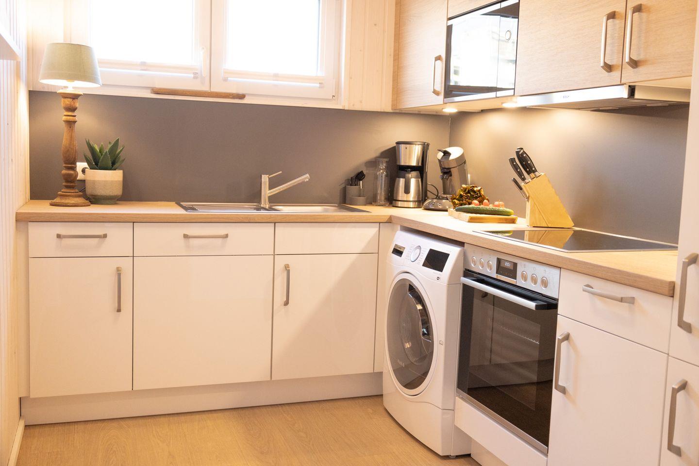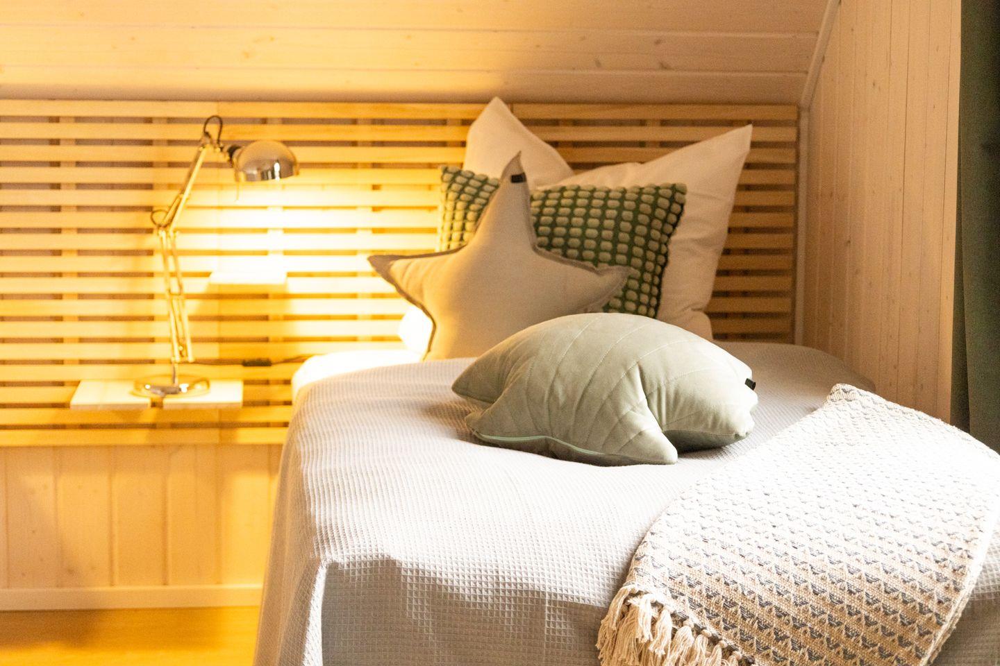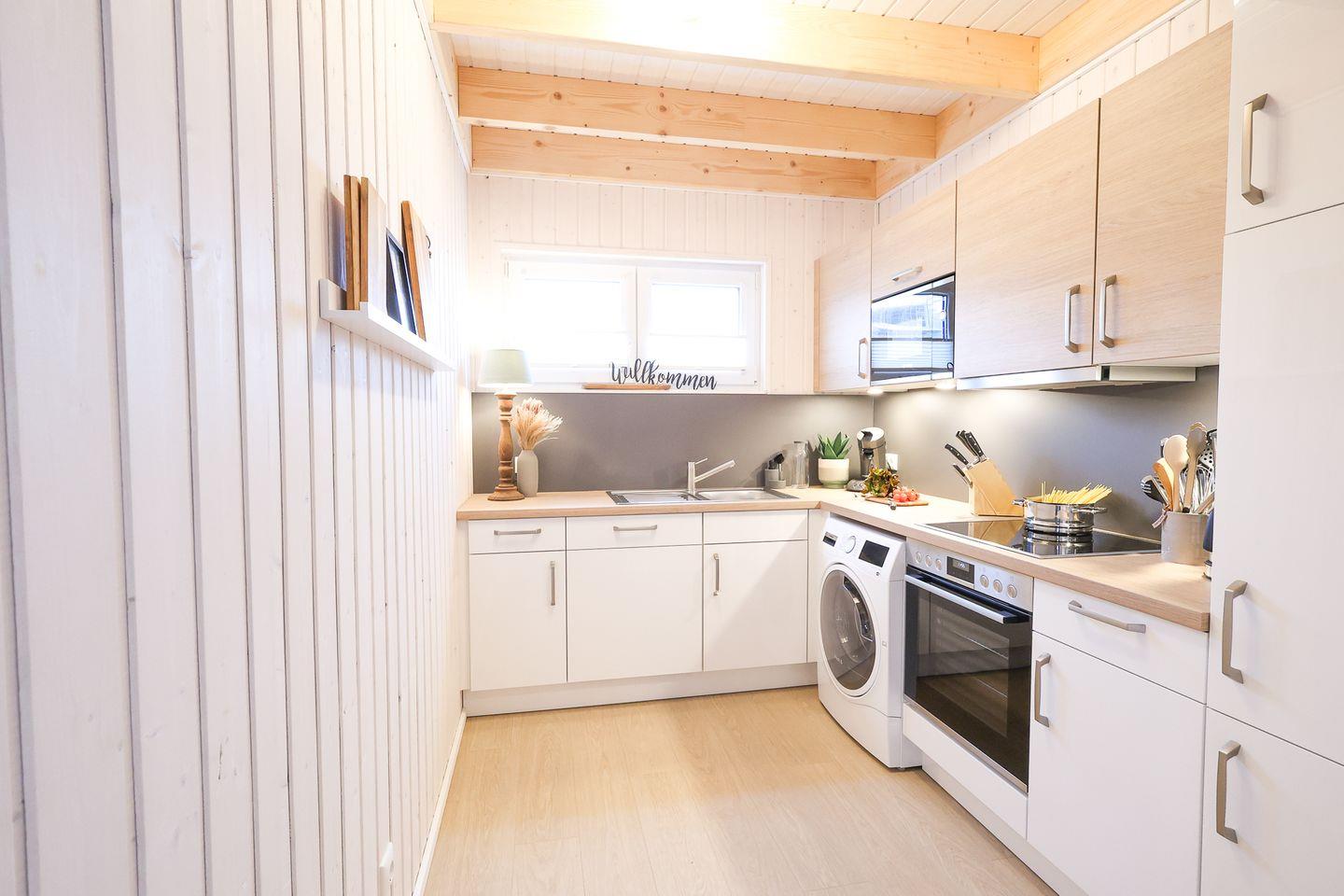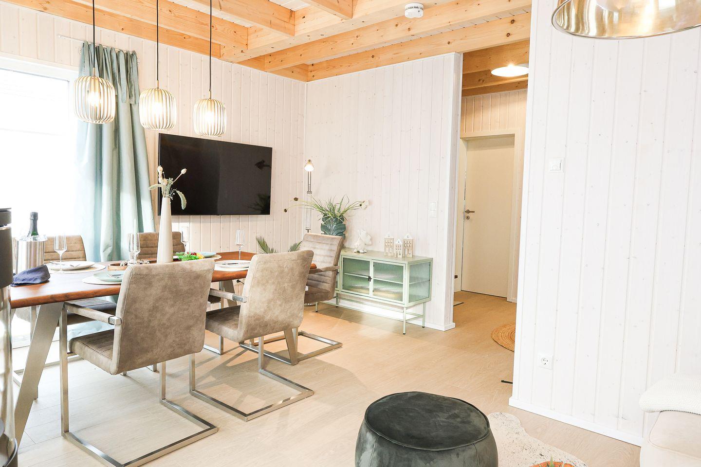 Möchten Sie dem Alltag entfliehen und pure Erholung in Strandnähe erleben? Genießen Sie das besondere Ambiente im geschmackvoll eingerichteten modernen Ferienhaus "Kleine Freiheit"! Mit 2 Schlafzimmern bietet es Gemütlichkeit pur! Ein Schlafzimmer ist mit einem kuscheligen Doppelbett (180x200cm) mit zwei unterschiedlichen Matratzenhärten und das andere mit zwei bequemen Einzelbetten (90x200cm) eingerichtet – ideal für Familien, Freunde oder Paare! Je nach Bedarf können die Einzelbetten auch zu einem Doppelbett zusammengeschoben werden. Beide Schlafzimmer verfügen über einen gemütlichen Lesesessel, perfekt für entspannte Stunden mit einem guten Buch. Im Schlafzimmer mit den zwei Einzelbetten steht außerdem ein Schreibtisch bereit, ideal für Homeoffice. Für ein weiteres Kind steht ebenfalls eine Schlafmöglichkeit zur Verfügung, so dass die Belegung für 4 Erwachsene und 1 Kind ausgelegt ist. Die "Kleine Freiheit" bietet zwei Badezimmer: Eines ist mit einer ebenerdigen Dusche und einer Infrarot-Sauna ausgestattet und im zweiten Bad befindet sich eine Badewanne. Entspannen Sie in der Infrarot-Sauna oder gönnen Sie sich ein Schaumbad in der Badewanne – hier ist Platz für Ihre persönliche Wellnessoase! Der großzügige Wohnbereich lädt zum Relaxen vor dem Kamin ein. Perfekt, um kalte Tage in wohliger Atmosphäre zu verbringen. Die Küche ist vollausgestattet und lässt keine Wünsche offen – zaubern Sie Ihre Lieblingsgerichte und genießen sie diese im offenen Essbereich. Die Terrasse lädt ein, die Sonnenstrahlen und die frische Ostseeluft zu genießen! Ob beim Frühstück in der Morgensonne oder beim Abendessen mit Meeresrauschen im Hintergrund – hier lässt es sich wunderbar verweilen. Vor dem Ferienhaus befindet sich ein Stellplatz.