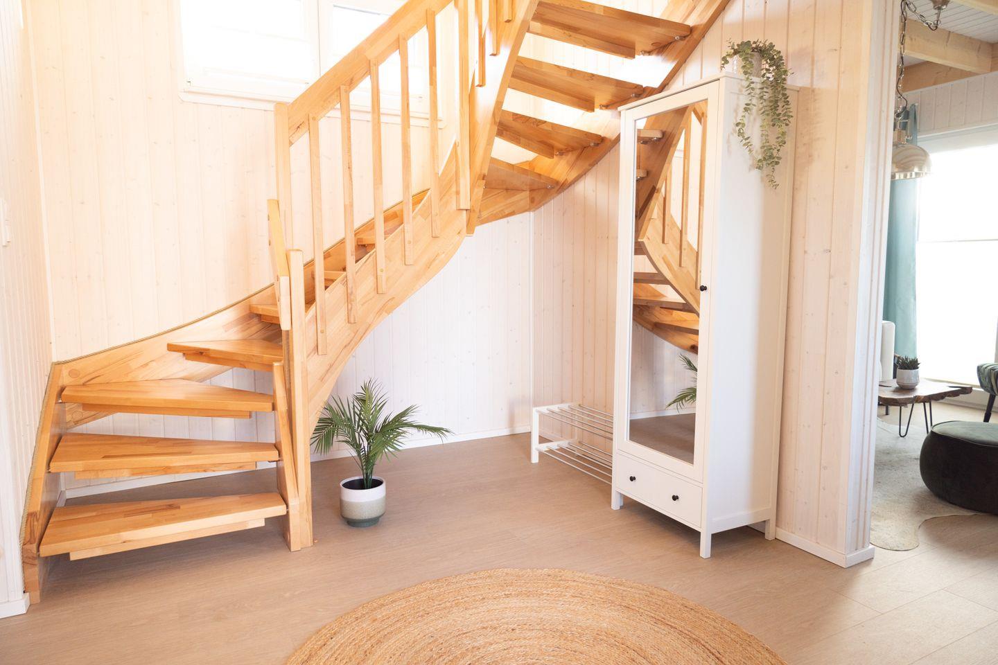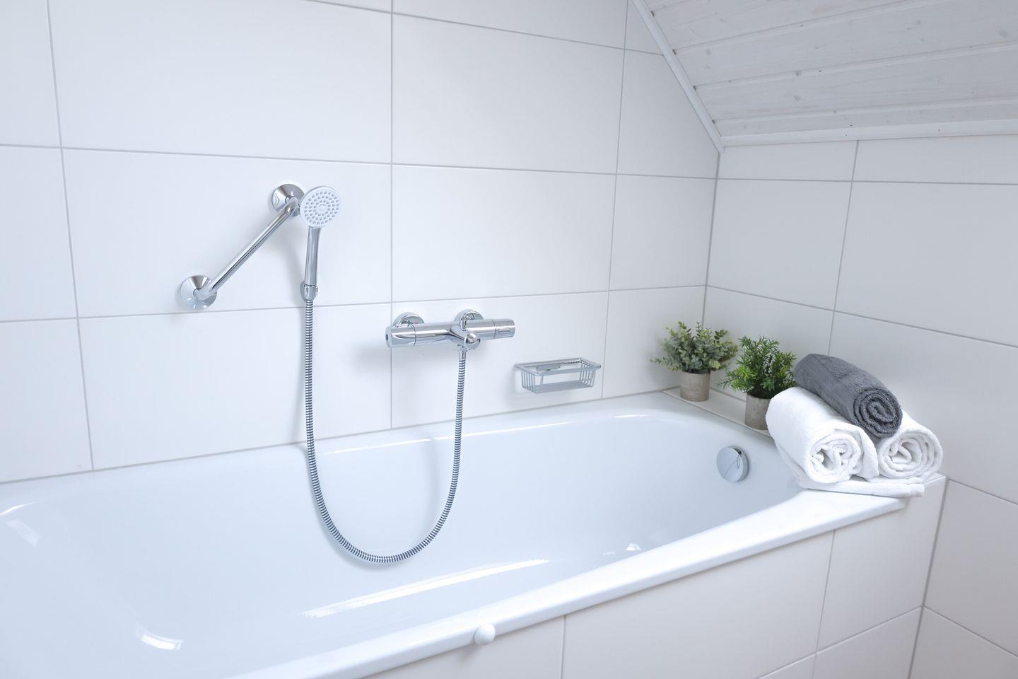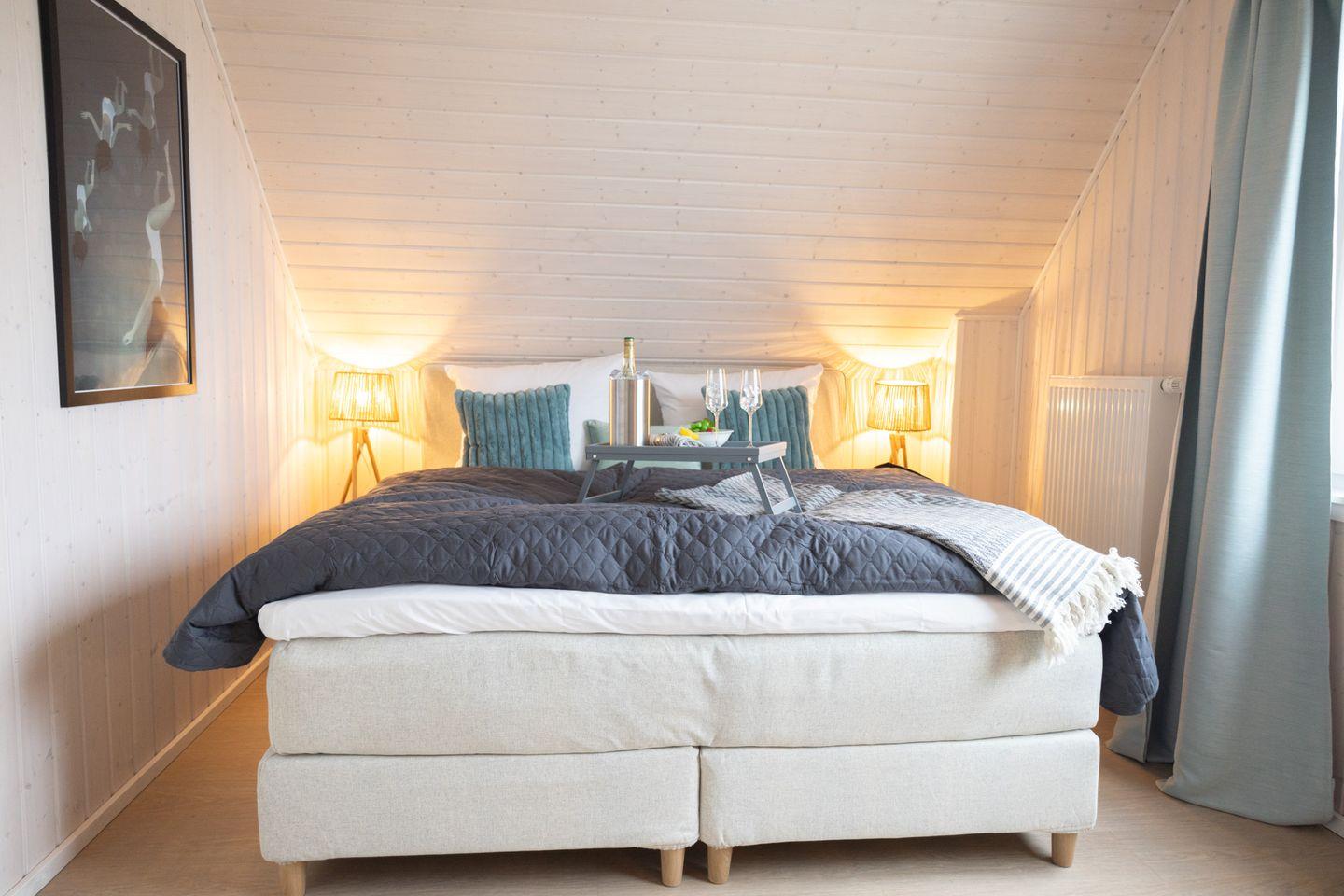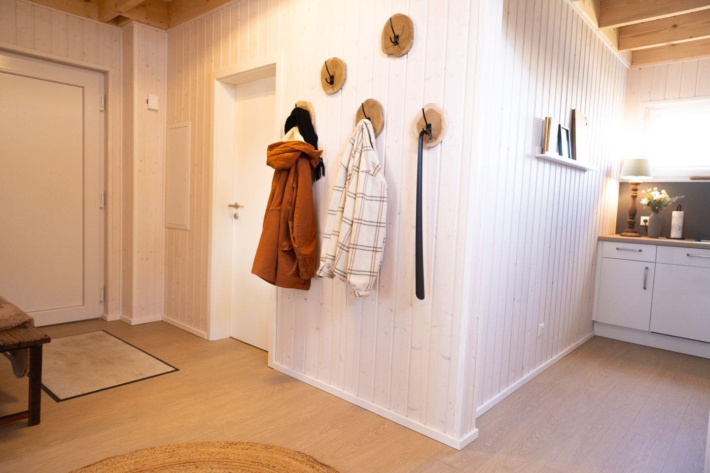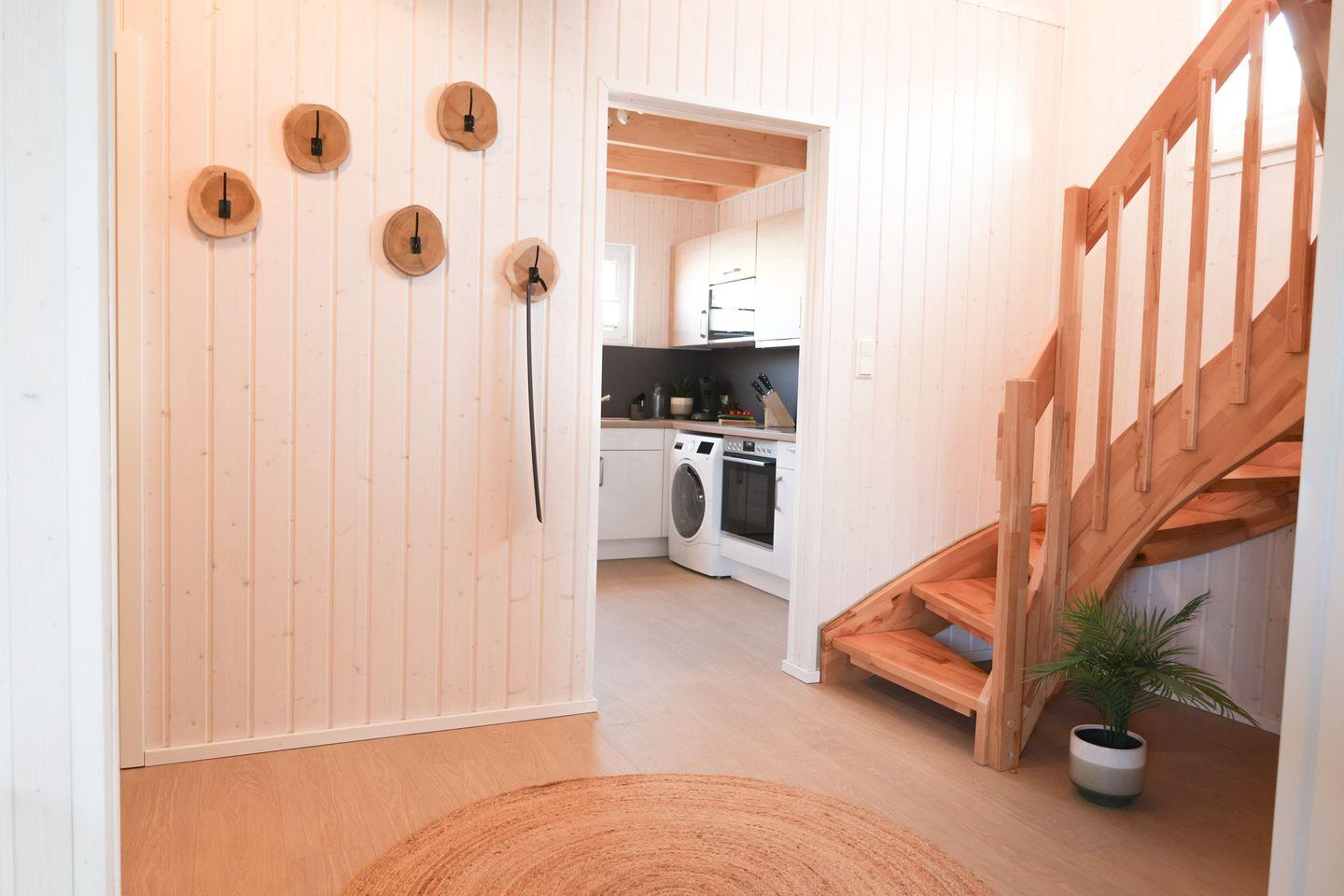 Das Ferienhaus "Kleine Freiheit" bietet 2 Schlafzimmer, zwei Badezimmer, einen offenen Wohn-/Essbereich mit Kamin, eine Küche und eine Terrasse. Das eine Schlafzimmer bietet ein Doppelbett, das andere Zimmer 2 Einzelbetten. Die Bäder verfügen über eine Dusche, eine Badewanne und eine Infrarot-Sauna. Ein Stellplatz ist vorhanden.