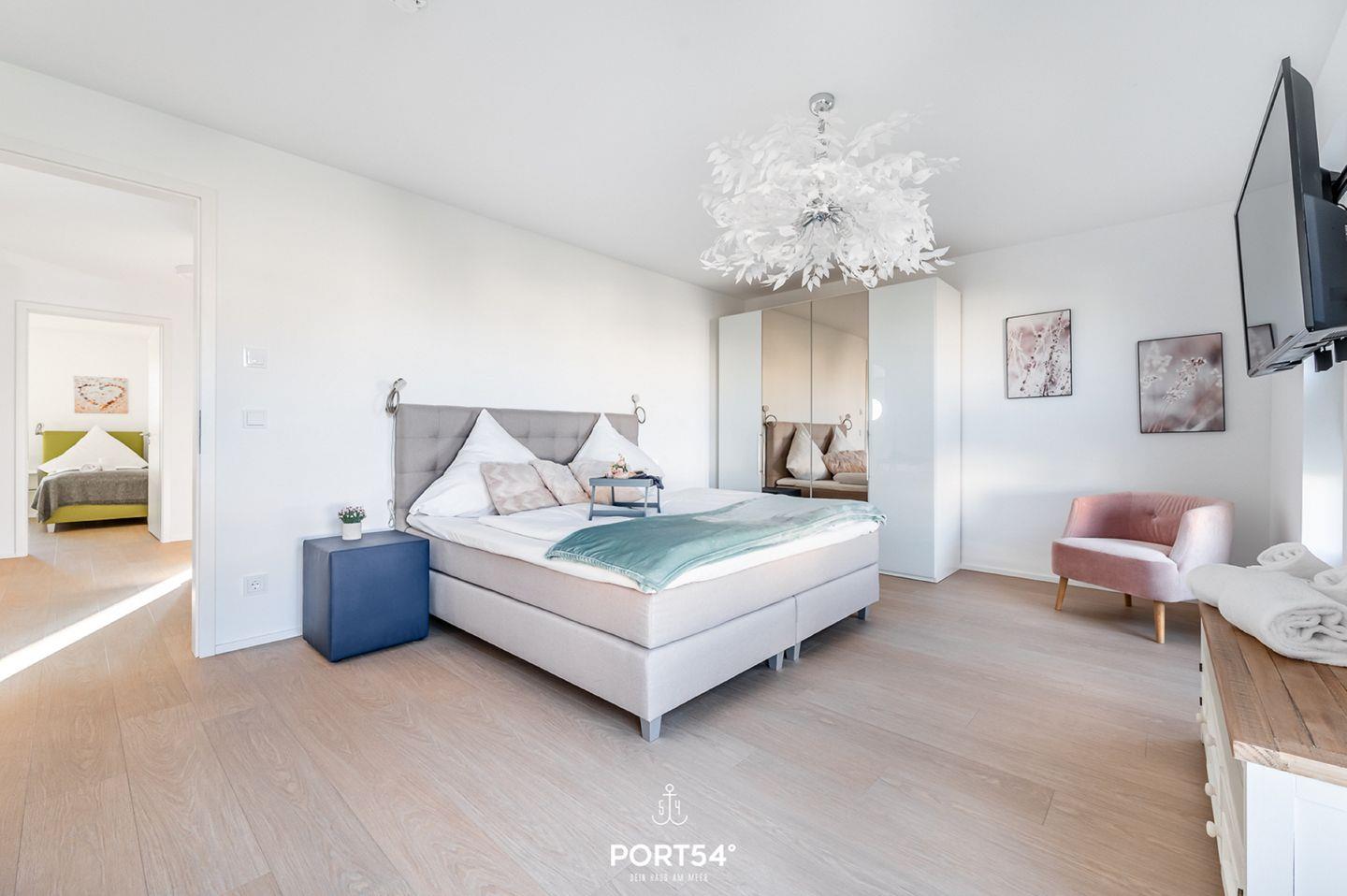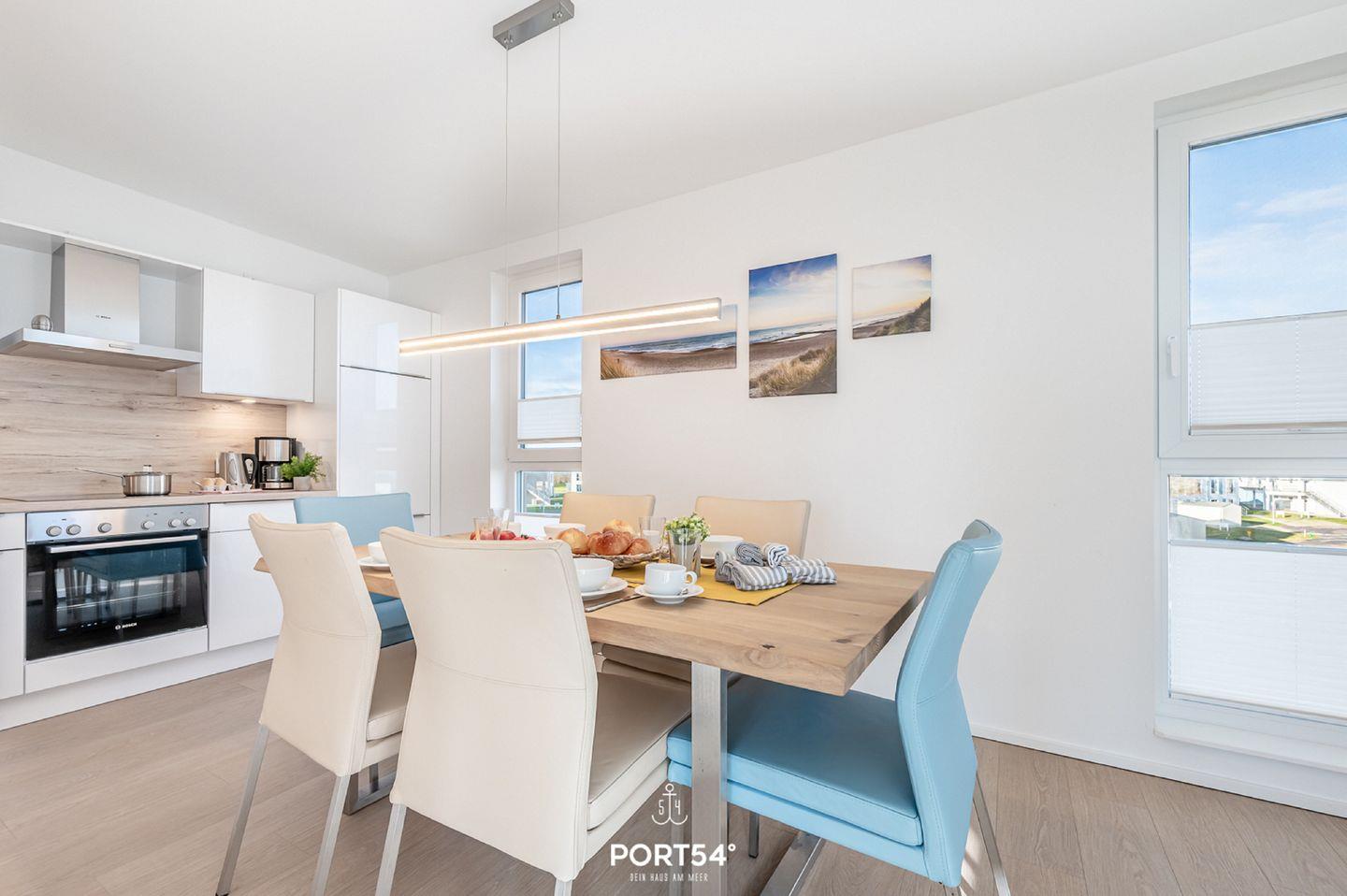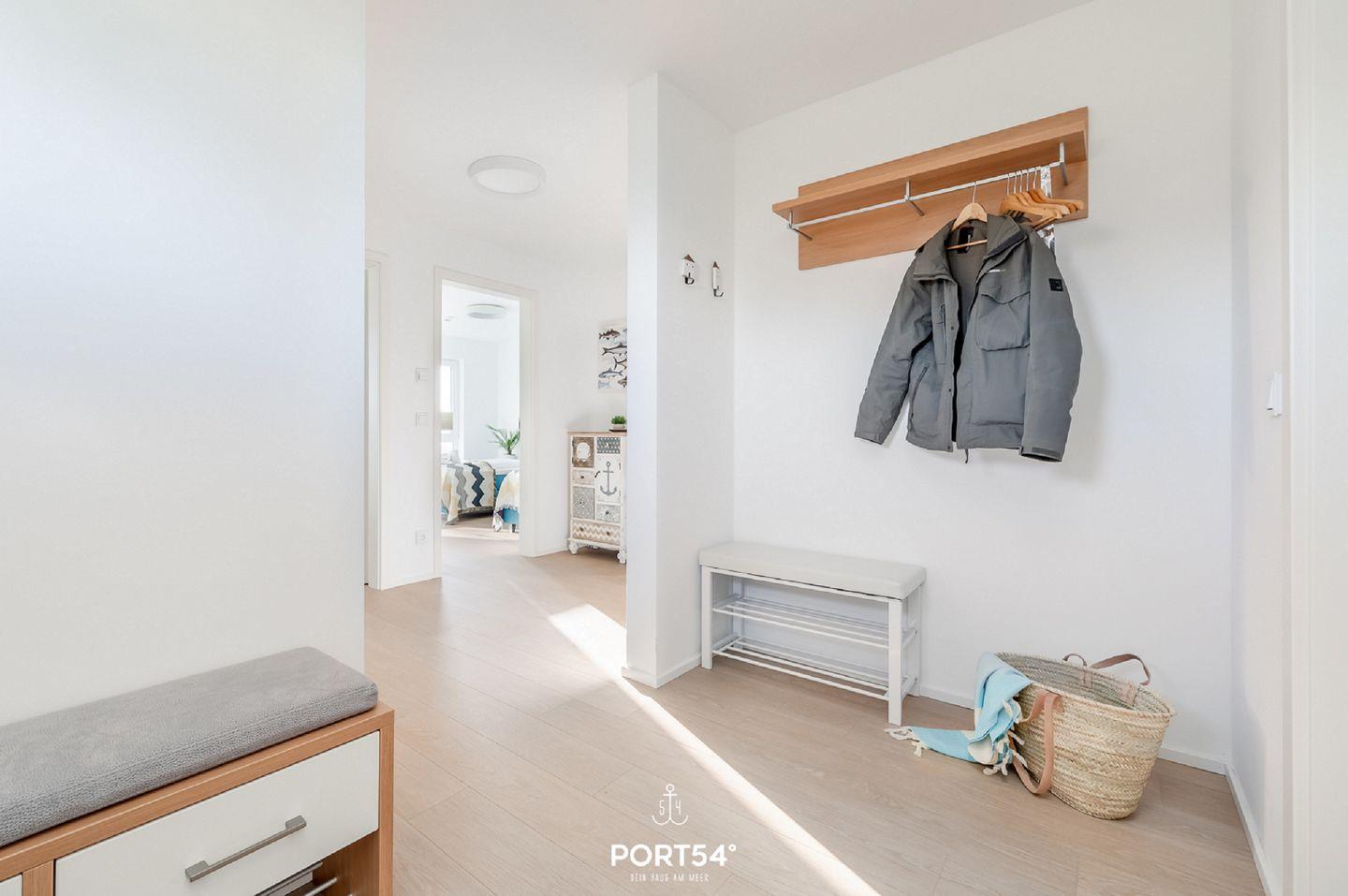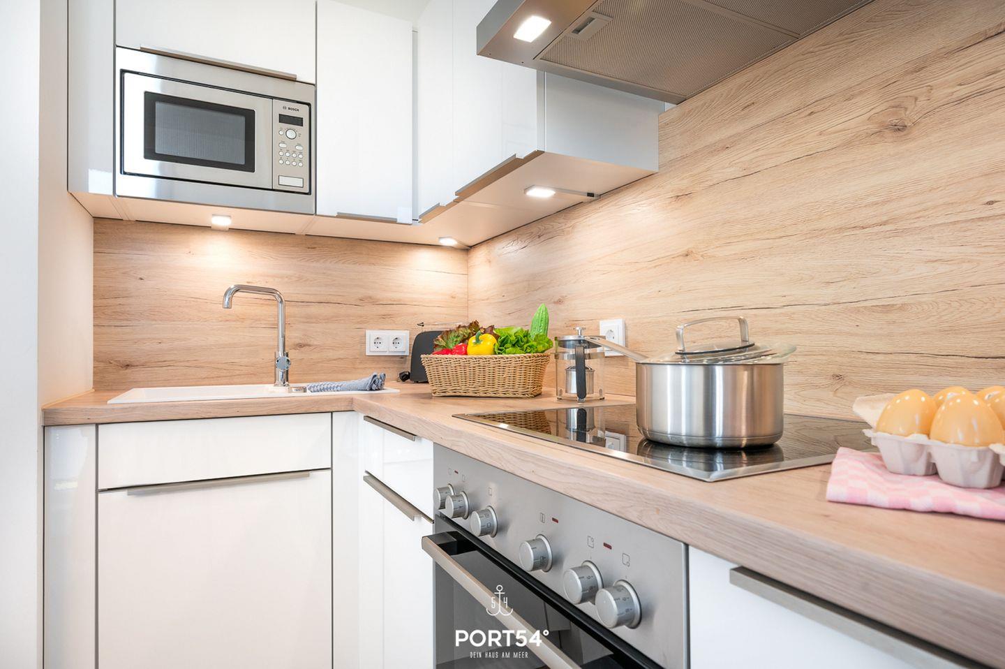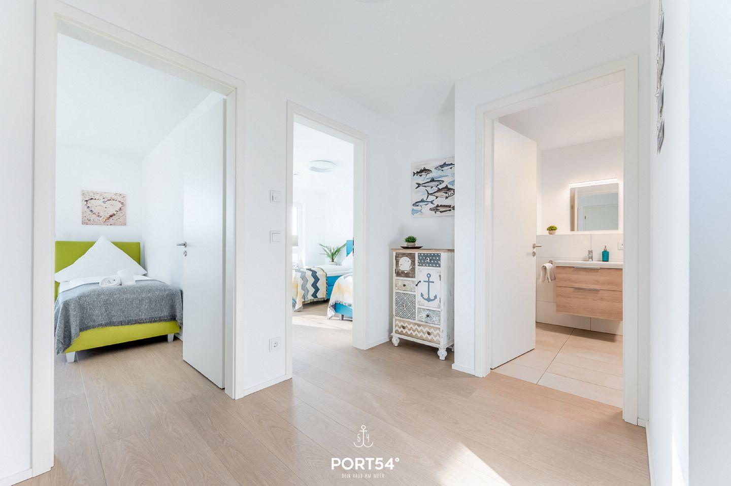 Die Ferienwohnung "Küstenliebe" lädt zu einem unvergesslichen Urlaub an der Ostsee und zum Träumen ein! Die Wohnung ermöglicht mit einem gemütlichen Wohn-/Essbereich im 2. Obergeschoss gemütliche Abende auf der Couch vor dem Flachbild-TV. Der knisternde Kamin spendet Ihnen an pustigen "Schietwetter"-Tagen eine wohlige Wärme. In der vollausgestatteten Küche können Hobbyköche sich kulinarisch austoben und leckere Gerichte zubereiten. In den drei Schlafzimmer können Sie ausgiebig ausschlafen und dem Alltagsstress entfliehen. Das eine Schlafzimmer bietet ein Boxspring-Doppelbett (180x200cm), sowie eine Flachbild-TV und die anderen Zimmer sind mit jeweils 2 gemütlichen Boxspring-Einzelbetten (je 90x200cm) eingerichtet. Durch die gemütliche und moderne Ausstattung kommt beim Betreten der "Ferienlounge" direkt Urlaubsfeeling auf! In dem einen Badezimmer erwartet Sie eine Badewanne, in der Sie sich bei einem Schaumbad herrlich vom Stress erholen können. Das zweite Badezimmer vervollständigt das Wellnessprogramm mit einer Infrarot-Sauna und einer ebenerdigen Dusche. Die großzügige Dachterrasse ist das absolute Highlight: hier haben Sie einen hervorragenden Blick in die Natur und auf die Ostsee. Machen Sie es sich an Sommertagen auf den Sonnenliegen bequem. Abends können mit den Liebsten am Elektrogrill grillen und morgens schon mit einem Kaffee in der Hand an der frischen Ostseeluft in den Urlaub starten - was will man mehr? Vor der Unterkunft befindet sich ein Stellplatz für Ihren PKW.