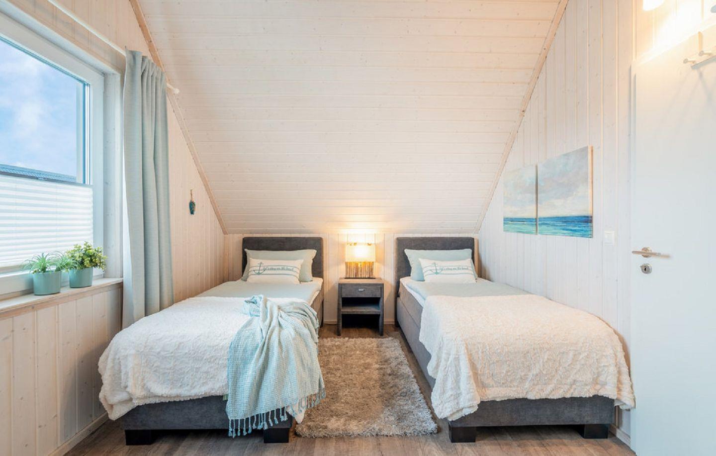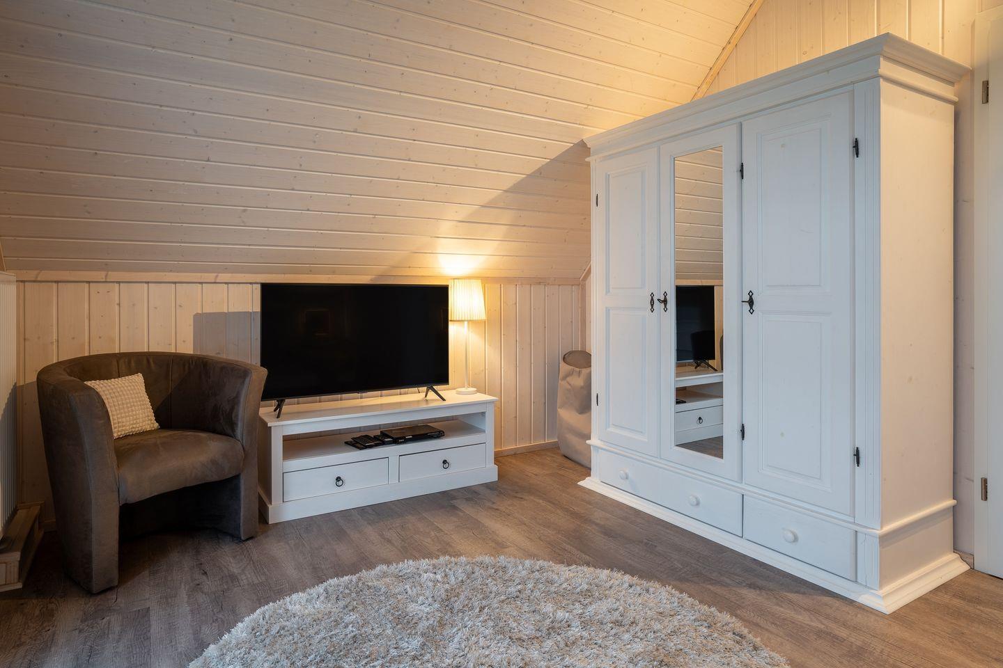 Willkommen im freistehenden Feriendomizil "Kuschelhaus" in Olpenitz – Ihr perfekter Rückzugsort für einen unvergesslichen Urlaub! Dieses charmante Refugium vereint gemütlichen Komfort mit modernen Annehmlichkeiten und sorgt so für eine Wohlfühlatmosphäre, die Sie vom ersten Moment an begeistern wird. Der offene Wohn-Essbereich bildet das Herzstück des Hauses. Hier können Sie es sich auf dem gemütlichen Sofa bequem machen, das sich bei Bedarf in ein komfortables Schlafsofa verwandeln lässt. Der Kamin verbreitet eine angenehme Wärme an kühlen Abenden. Die voll ausgestattete Küche ist ein Paradies für Hobbyköche und lässt keine Wünsche offen: Mit einem Ceran-Kochfeld, Backofen, Mikrowelle und einer Spülmaschine sind Sie bestens gerüstet, um kulinarische Köstlichkeiten zu zaubern. Zusätzlichen Komfort bieten eine Waschmaschine und ein Trockner, die Ihnen die Möglichkeit geben, auch während Ihres Aufenthalts stets frische Wäsche zur Verfügung zu haben. Die beiden Schlafzimmer versprechen erholsame Nächte und angenehme Träume. Das erste Schlafzimmer verwöhnt Sie mit einem großzügigen Doppelbett (180x200cm) und bietet reichlich Platz im geräumigen Kleiderschrank. Ein Smart-TV sorgt für abendliche Unterhaltung. Das zweite Schlafzimmer ist mit zwei Boxspringbetten (je 90x200 cm) ausgestattet und ebenfalls mit einem Kleiderschrank und Smart-TV versehen. Beide Schlafzimmer verfügen über Verdunkelungsmöglichkeiten, damit Sie ungestört schlafen können. Im Erdgeschoss befindet sich ein modern gestaltetes Badezimmer mit Dusche, WC, Handtuchheizung und Föhn. Ein besonderes Highlight ist die luxuriöse Infrarotsauna, die wohltuende Entspannung nach einem Tag voller Aktivitäten bietet. Das obere Badezimmer begeistert mit einem Dachfenster, das Tageslicht hineinlässt, während der Sichtschutz Ihre Privatsphäre wahrt. Hier können Sie in der Badewanne entspannen und die wohlige Wärme der Handtuchheizung genießen. An sonnigen Tagen lädt die großzügige, nach Südwesten ausgerichtete Terrasse zum Verweilen ein. Hier finden Sie bequeme Outdoormöbel, zwei Gartenliegen, eine Hängematte, einen Sonnenschirm und einen Holzkohlegrill, der perfekte Voraussetzungen für gesellige Grillabende bietet. Der Garten verfügt über einen Schuppen, der ausreichend Platz für mitgebrachte oder beim Tourguide gemietete Fahrräder bietet. Zwei eigene Parkplätze direkt am Haus sorgt für zusätzlichen Komfort. Für Unterhaltung ist im "Kuschelhaus" ebenfalls bestens gesorgt: Eine Wii-Spielekonsole mit einer Auswahl an Spielen steht Ihnen zur Verfügung, ebenso wie eine umfangreiche Spielesammlung für gesellige Abende. Für die kleinen Gäste sind ein Kinderhochstuhl und ein Kinderreisebett vorhanden, ebenso ein ausziehbares Treppenschutzgitter. Alle Fenster im Haus sind mit Sichtschutz ausgestattet, um Ihnen ein Höchstmaß an Privatsphäre zu gewährleisten. Das "Kuschelhaus" besticht durch seine liebevolle und stilvolle Einrichtung, die Ihnen das Gefühl vermittelt, zu Hause angekommen zu sein. Erleben Sie einen unvergesslichen Urlaub in dieser idyllischen Oase, wo Gemütlichkeit und Komfort im Einklang sind.