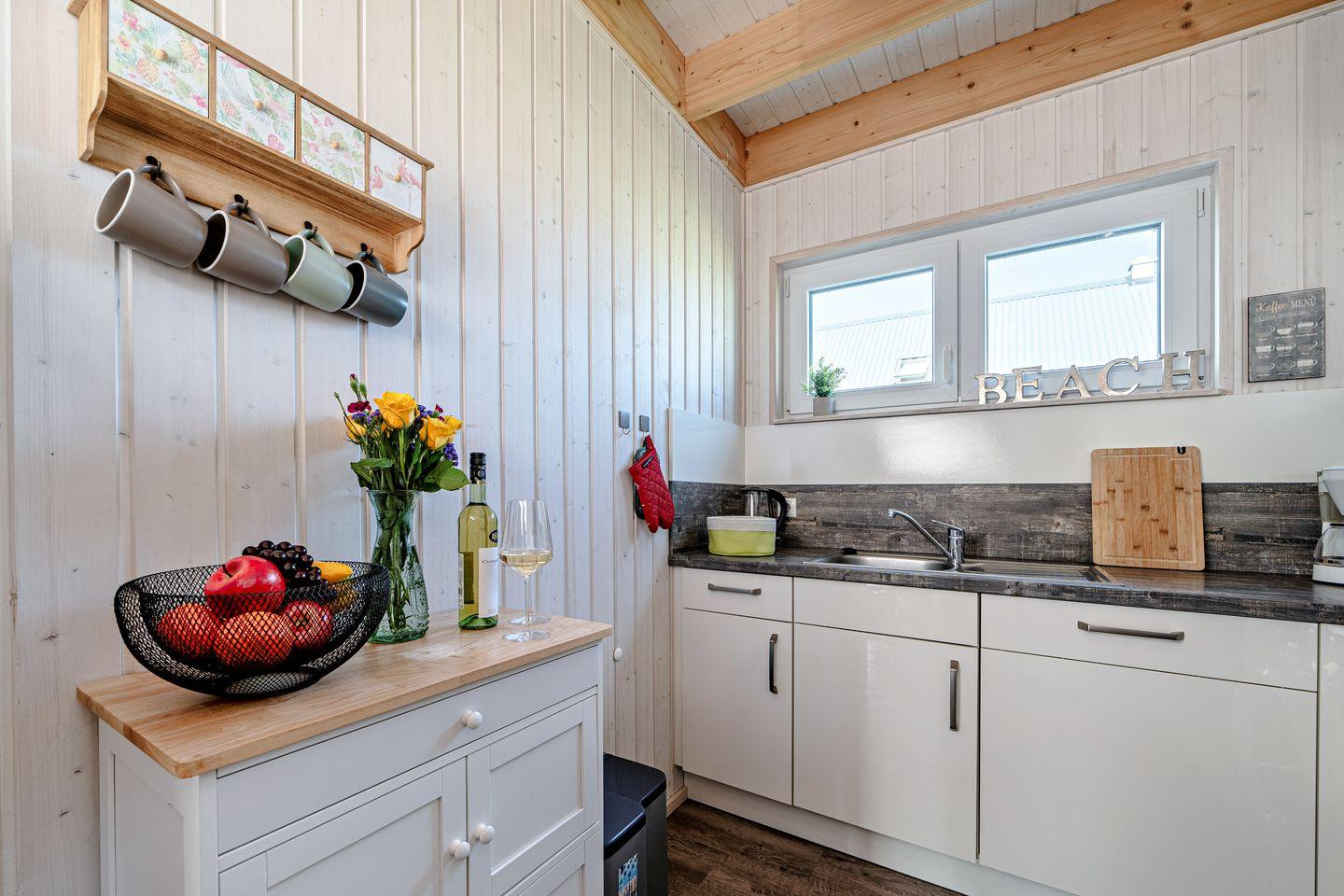Das Haus "Küstenkind" verfügt über einen offenen Wohn- und Essbereich, eine Küche, zwei Schlafzimmer und zwei Bäder. Die Küche ist voll ausgestattet. Die zwei Schlafzimmer bieten 1 Doppelbett und 2 Einzelbetten. Die Bäder verfügen über 1 Dusche und eine Badewanne mit Duschwand, sowie eine Infrarot-Sauna. Direkt vor dem Haus befindet sich ein eigener PKW Stellplatz und ein abgeschlossener Fahrradschuppen für Ihre mitgebrachten oder geliehenen Fahrräder.
