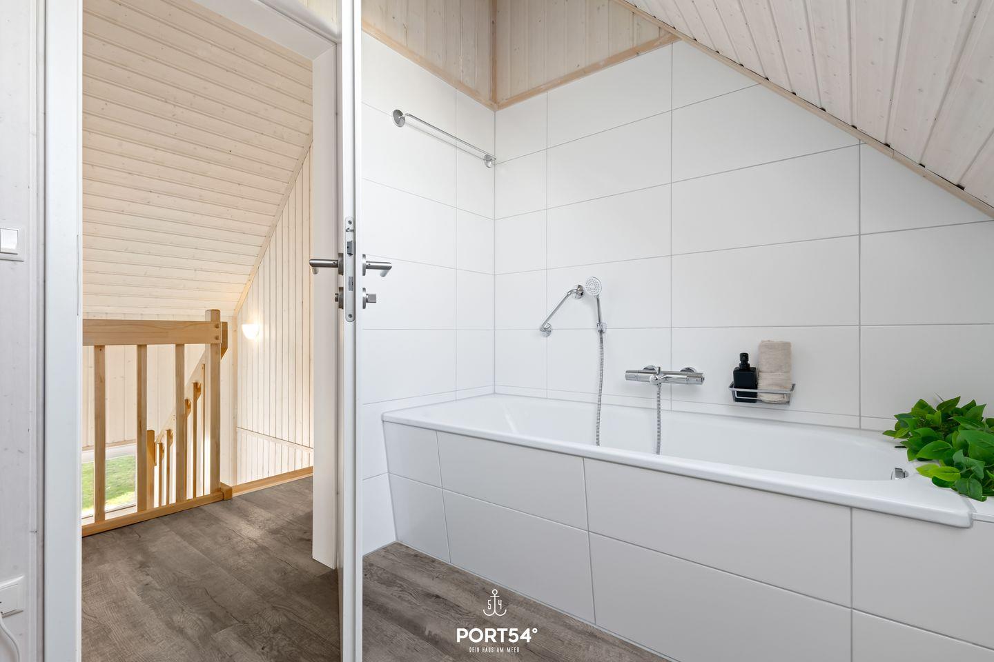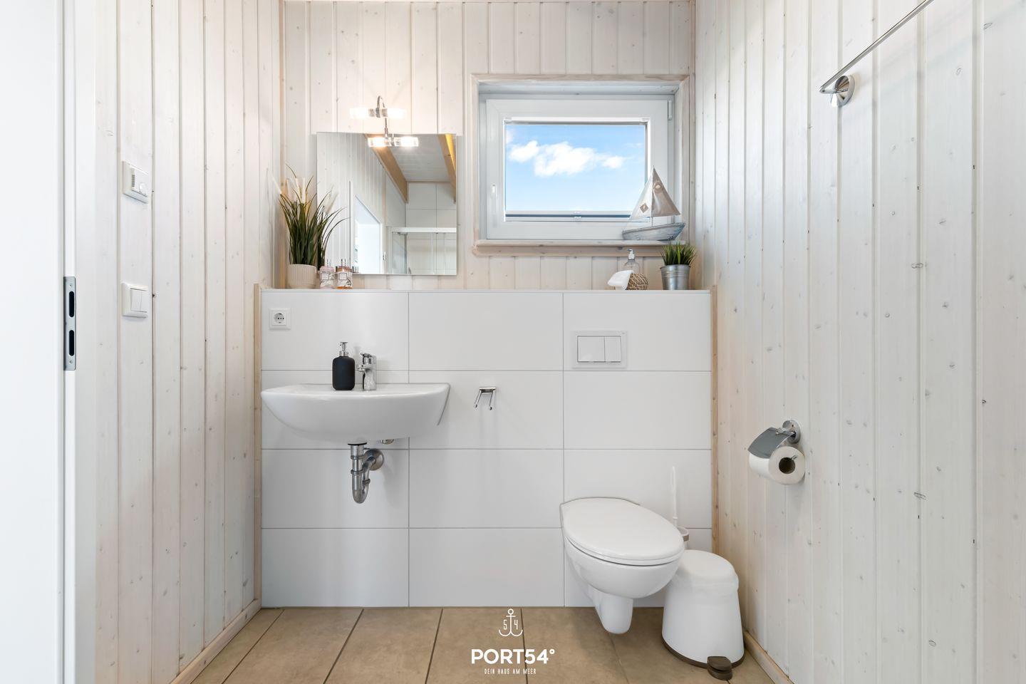 Ein Badezimmer befindet sich im Erdgeschoss und ist mit einer Dusche, einem Fön, Insektenschutzgitter und dem Highlight: einer Infrarot-Sauna ausgestattet. Hier kannst Du Dich an kalten Tagen aufwärmen und entspannen! Das andere Badezimmer im ersten Obergeschoss bietet eine Badewanne.
