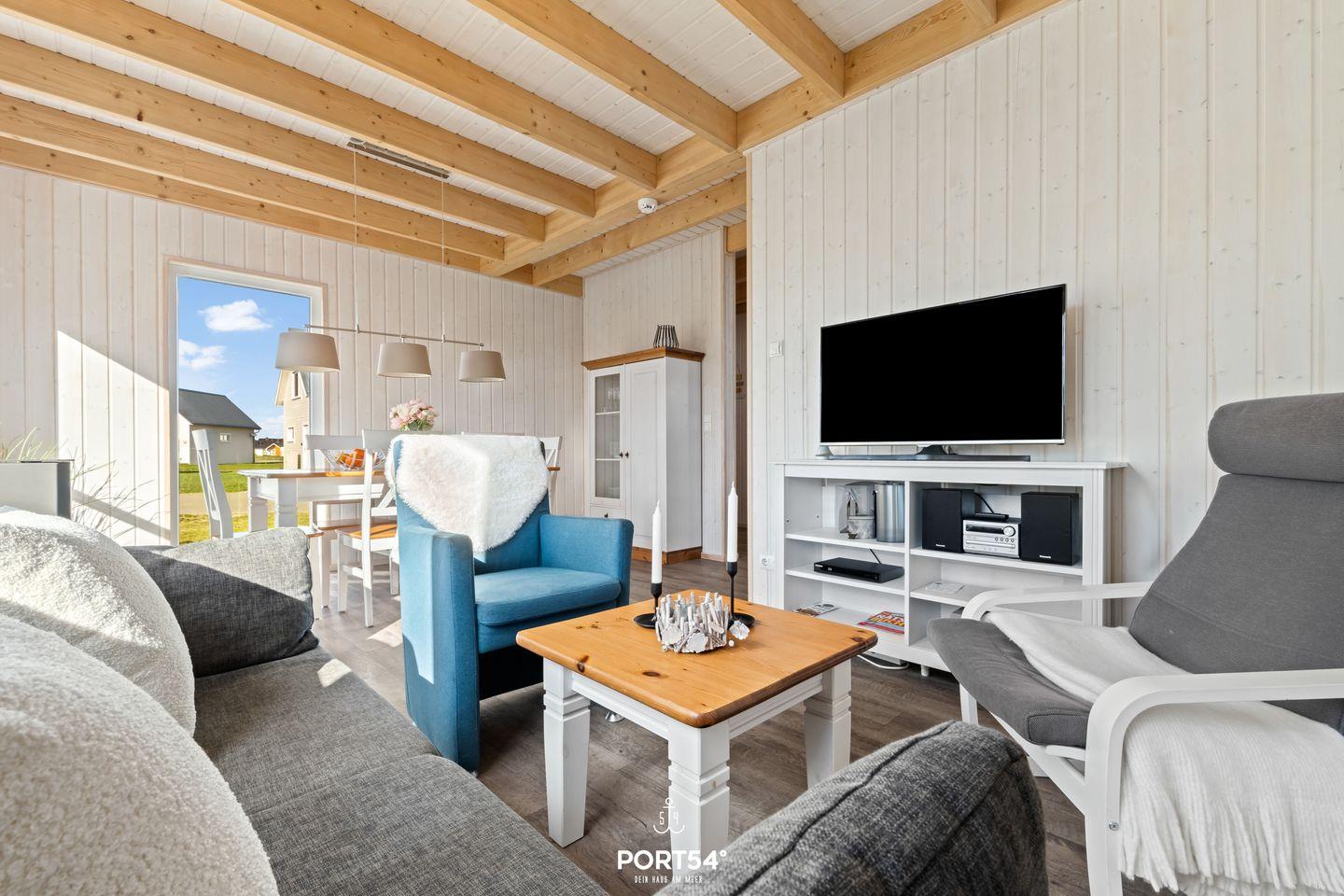 Nach langen Strandspaziergängen kannst Du auf dem gemütlichen Sofa vor dem Kamin entspannen und Deine Lieblingsserie auf dem Flachbild-TV schauen. Das Sofa kann zu einer Schlafcouch (160 x 200 cm) ausgezogen werden und bietet Platz für zwei Personen. Die Küche bietet alles, was Du für einen geselligen Kochabend mit der Familie benötigst.