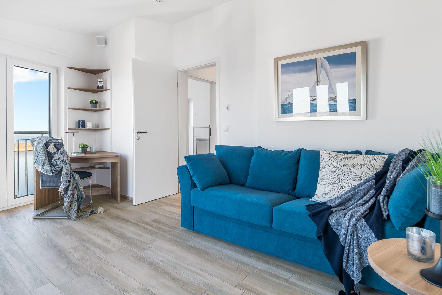 Die Schlafzimmer punkten allesamt mit dem wunderschönen Blick auf das Wasser. Zwei von den insgesamt vier Schlafzimmern haben direkten Zugang zu den beiden Dachterrassen (22 m² und 44 m²). Beim morgendlichen Kaffee lässt sich der Sonnenaufgang und der Schiffverkehr beobachten. Für die perfekte Entspannung stehen dort zwei gemütliche Lounge Möbel. Drei Schlafzimmer verfügen über 1,80m große Boxspringbetten. Das vierte Schlafzimmer ist mit einer Schlafcouch für bis zu zwei Personen ausgestattet.