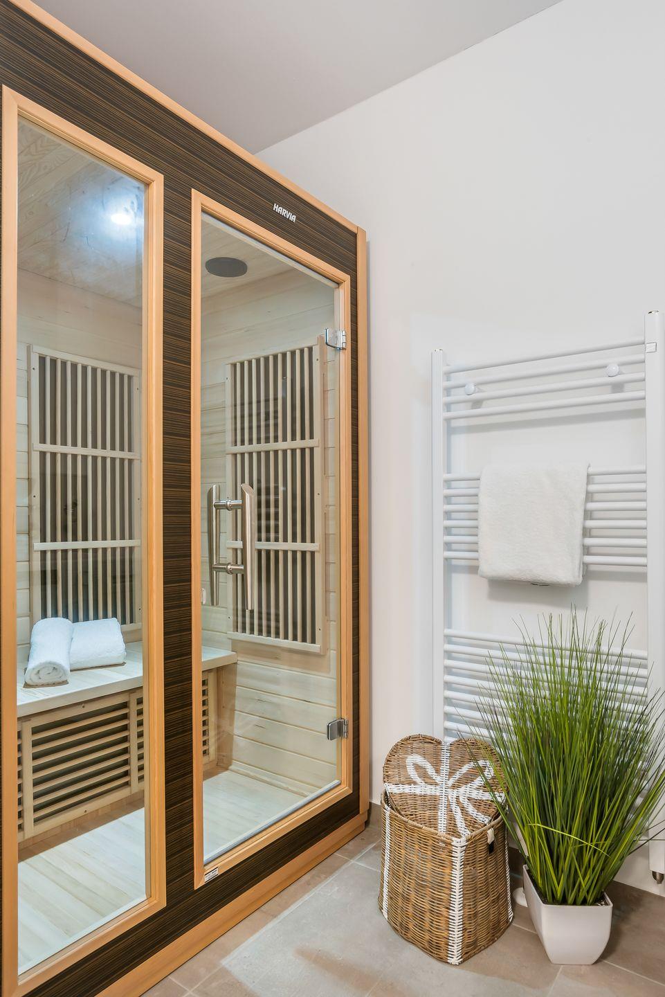 Das Highlight: Ein Badezimmer mit großer, bodengleicher Regendusche und eigener Infrarotkabine. Das ist Luxus und Entspannung auf höchstem Niveau – zu jeder Jahreszeit!