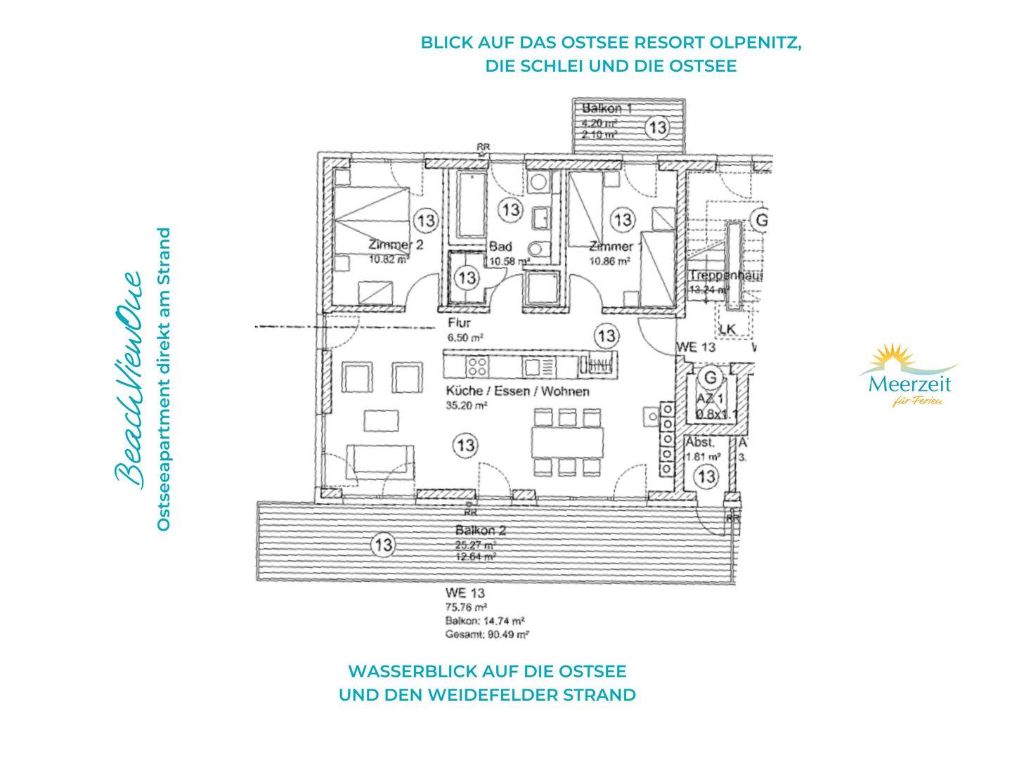 Ostseeurlaub in moderner Ferienwohnung mit bodentiefen Panoramafenstern und großem Meerblickbalkon direkt am Weidefelder Strand: Genießen Sie exklusives Wohnen im Apartment "BeachViewOne", gelegen im 3. Obergeschoss eines Apartmenthauses. Im Haus, das insgesamt über vier Stockwerke verfügt, befindet sich ein Aufzug. Im Treppenhaus befinden sich 9 Stufen vom Eingang bis zum Fahrstuhl.