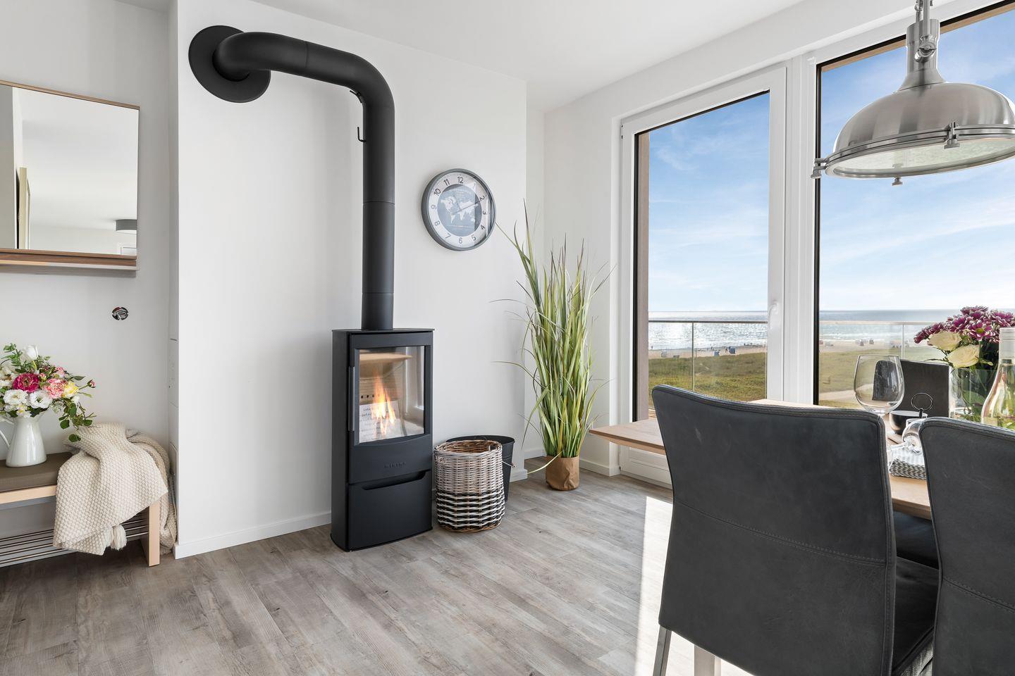 Luxus-Ferienwohnung "BeachViewOne" im 3. OG, direkt am Ostseestrand, mit Panoramafenstern und großem Meerblickbalkon. Der großzügige Wohn-Essbereich, die integrierte Küche und ein Kamin bieten ideale Bedingungen für gemütliche Stunden. Zwei Schlafzimmer mit Boxspringbetten, eine Badewanne und eine finnische Sauna sorgen für Erholung im Ostseeurlaub. Der große Balkon und der nahegelegene Strand laden zum Entspannen ein. Ein Parkplatz, eine E-Ladestation sowie ein Fahrradkeller sind vor Ort.