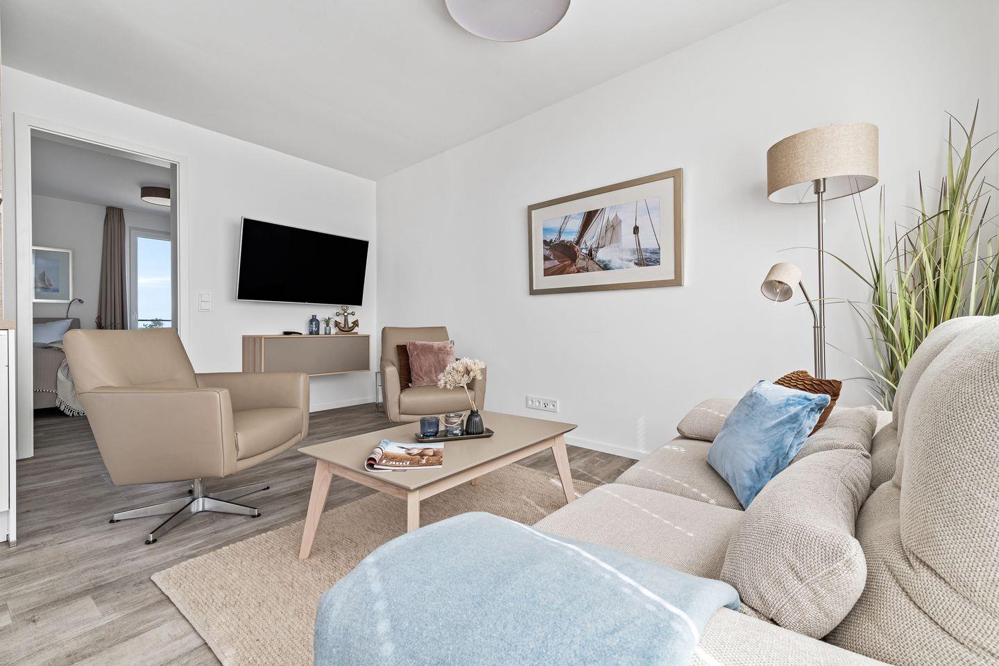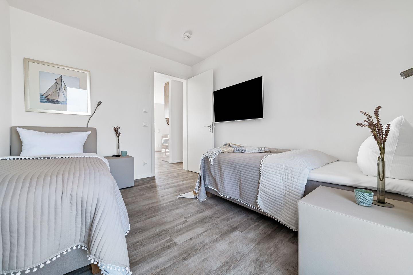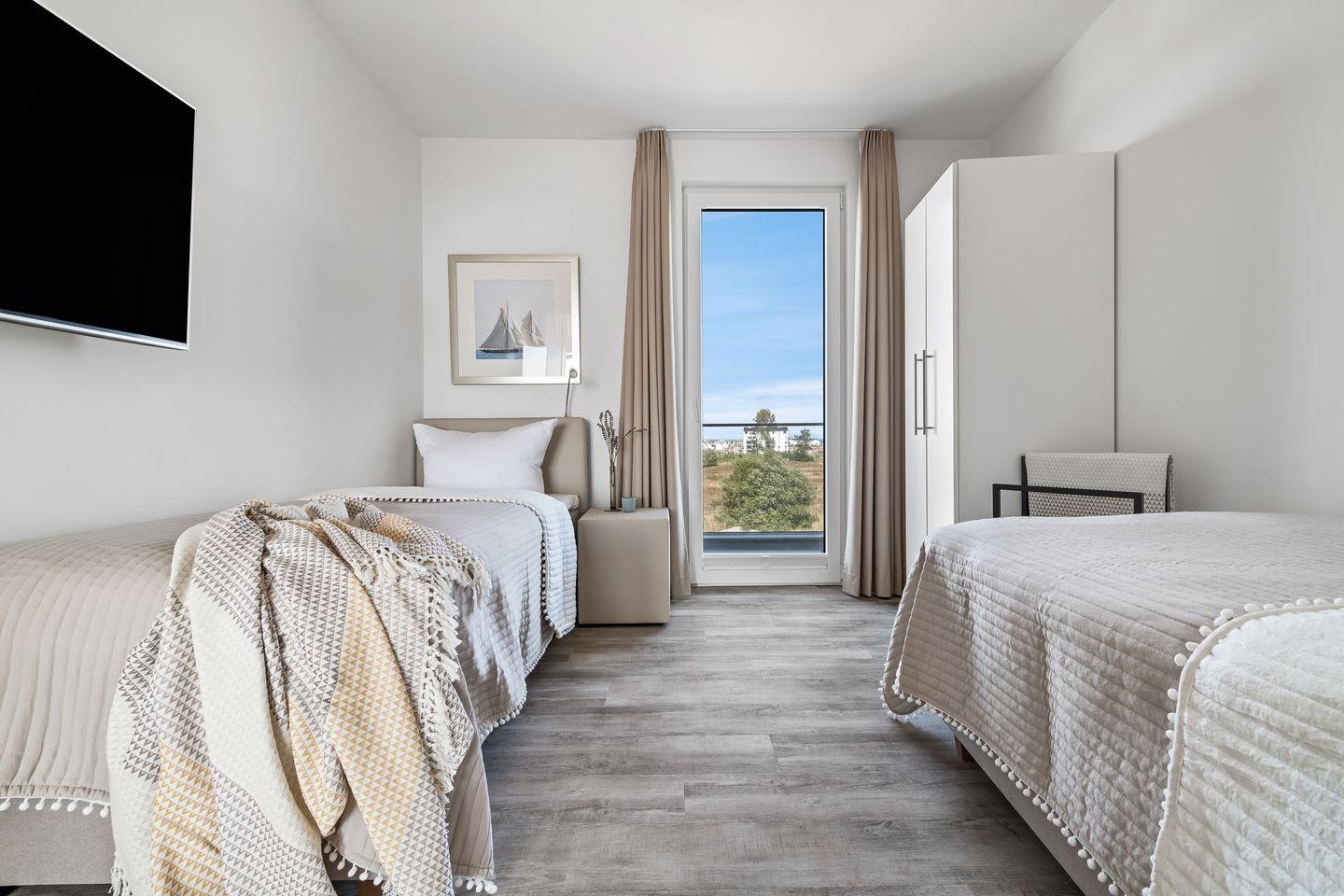 Das Apartment "BeachViewTwo" bietet zwei Schlafzimmer, ausgestattet mit hochwertigen Boxspringbetten für einen erholsamen Schlaf. Entspannen Sie sich in der finnischen Sauna oder genießen Sie ein Bad in der großzügigen Wanne.