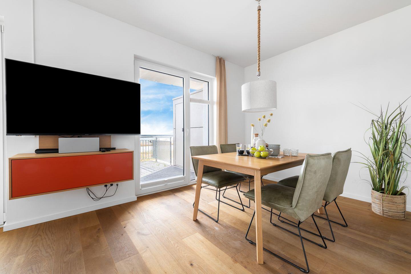 Die frisch zubereiteten Köstlichkeiten können dann am großzügigen Esstisch oder auf der Sonnenterrasse verspeist werden. Durch Möwengeschrei oder vorbeifahrende Segelschiffe verblasst hier jeglicher Alltagsstress.