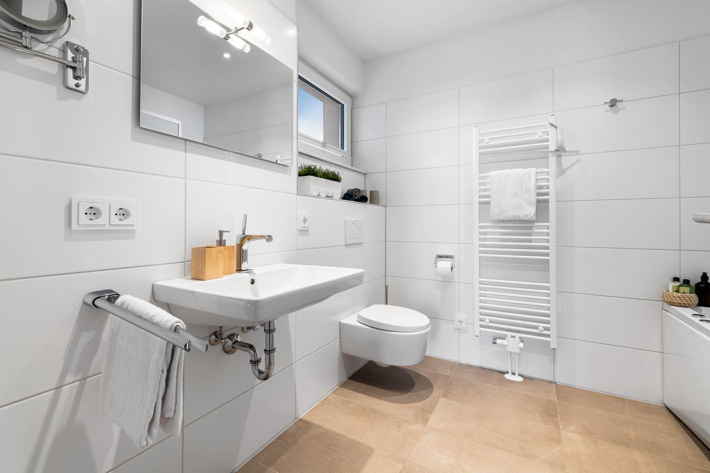 Das im skandinavisch-maritimen Stil gehaltene Interieur erhält durch seine Farbgestaltung eine zeitlos elegante Note, sodass man sich gleich wie zu Hause fühlen kann. Eine bequeme Sofalandschaft, Parkettfußböden, eine Fußbodenheizung in allen Bereichen sowie ein Kamin tragen hierzu mit bei.