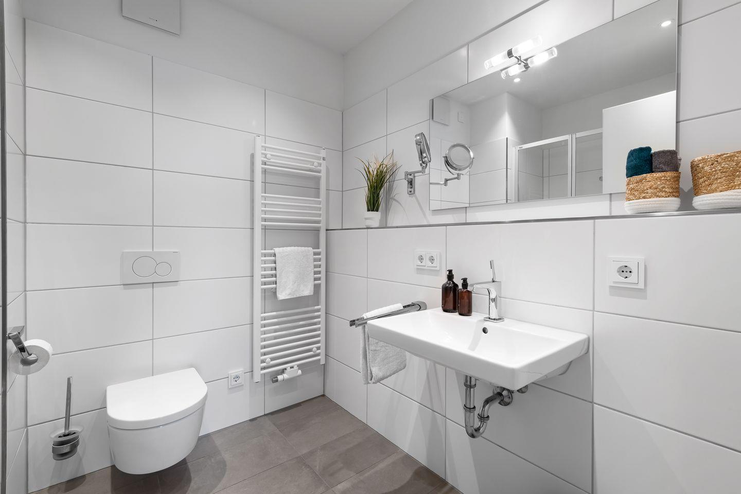 Zusätzlich zum modernen Badezimmer mit Badewanne steht den Gästen noch ein weiteres separates WC zur Verfügung.