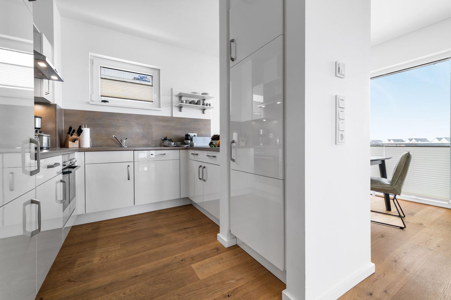 Der Koch- und Essbereich ist mit der voll ausgestatteten Einbauküche ein Traum für jeden Hobbykoch. Hier lässt sich das Zubereiten von Köstlichkeiten und das gemütliche Beisammensein herrlich vereinbaren.