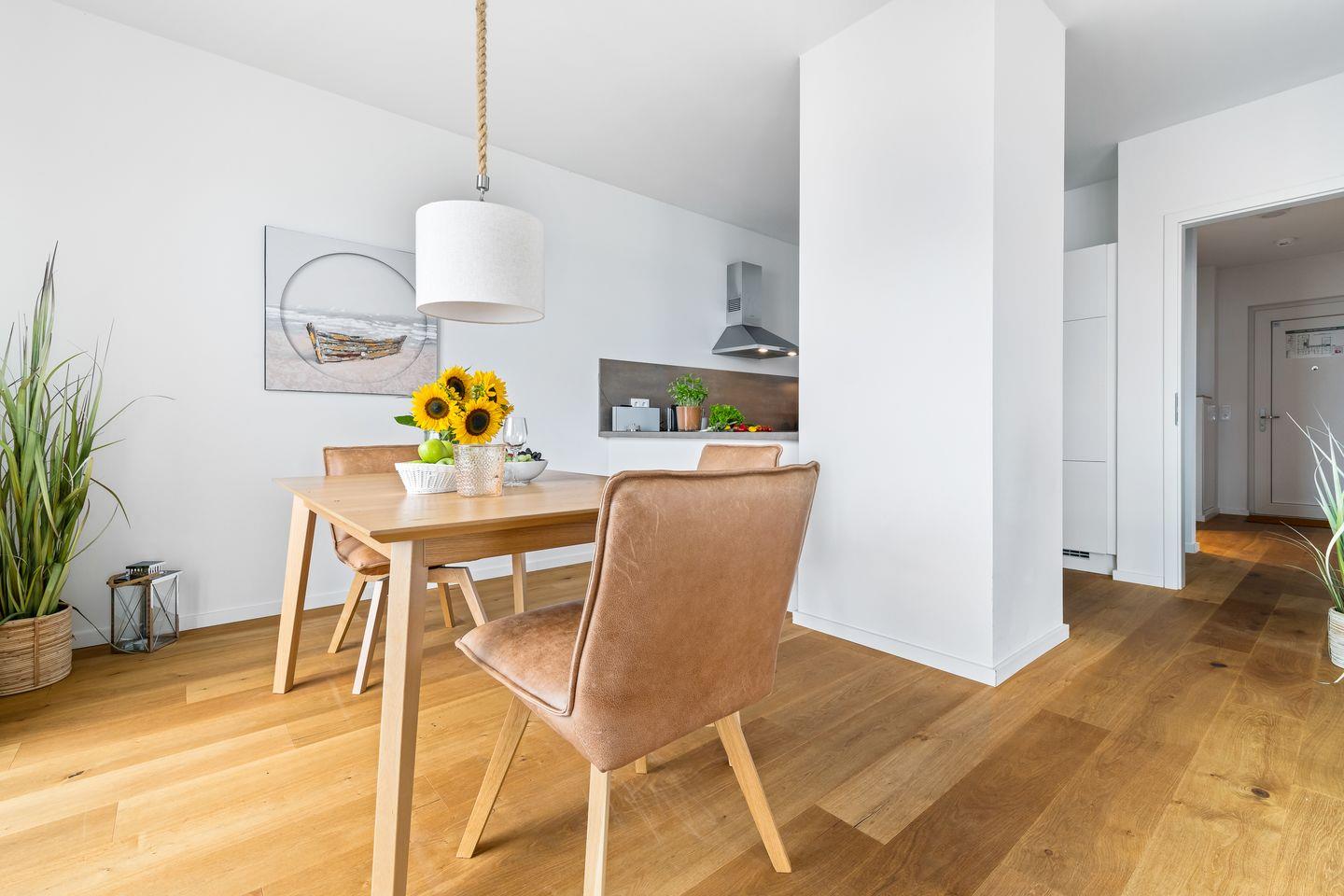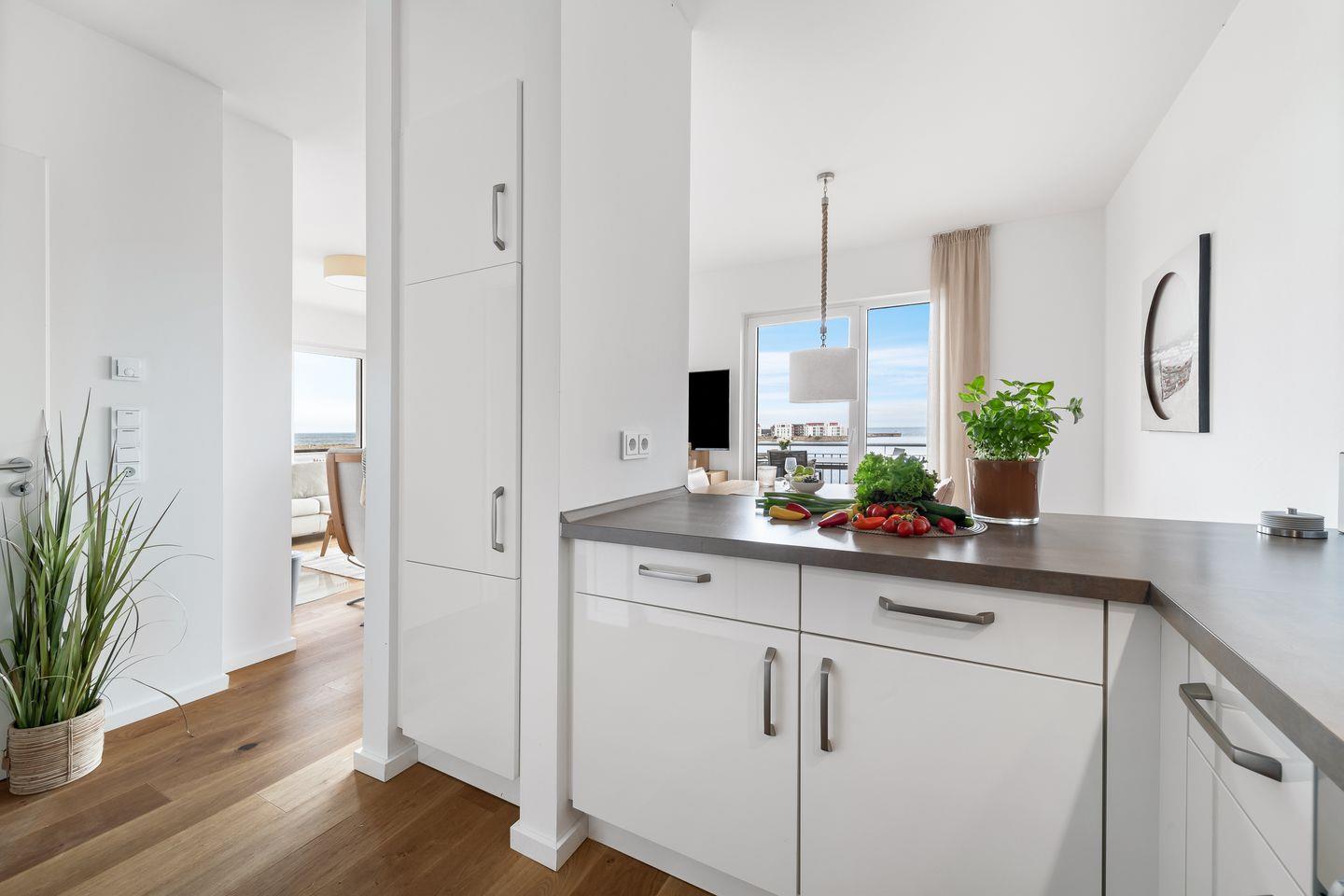 Auch die hochwertige und voll ausgestattete Einbauküche lässt keine Wünsche offen, „Kochen mit Blick ins Blaue" ist hier das Motto! Durch den direkt anschließenden Essbereich lassen sich gemütliches Beisammensein und das Zubereiten von Köstlichkeiten perfekt vereinbaren.