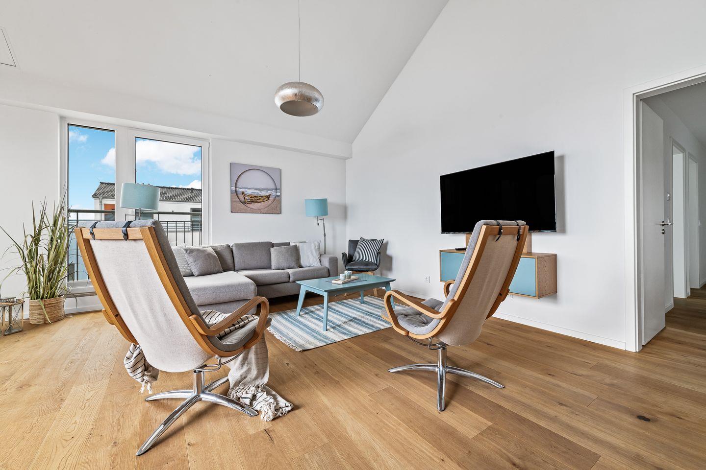 Das wunderschöne Apartment „Ocean King" erwartet Sie mit maritimem Flair und einem wunderbaren Blick ins Blaue. Hier fällt jeglicher Alltagsstress ab. Das großzügige Penthouse "Ocean King" bietet mit 128m² das ideale Urlaubszuhause für bis zu sechs Personen.