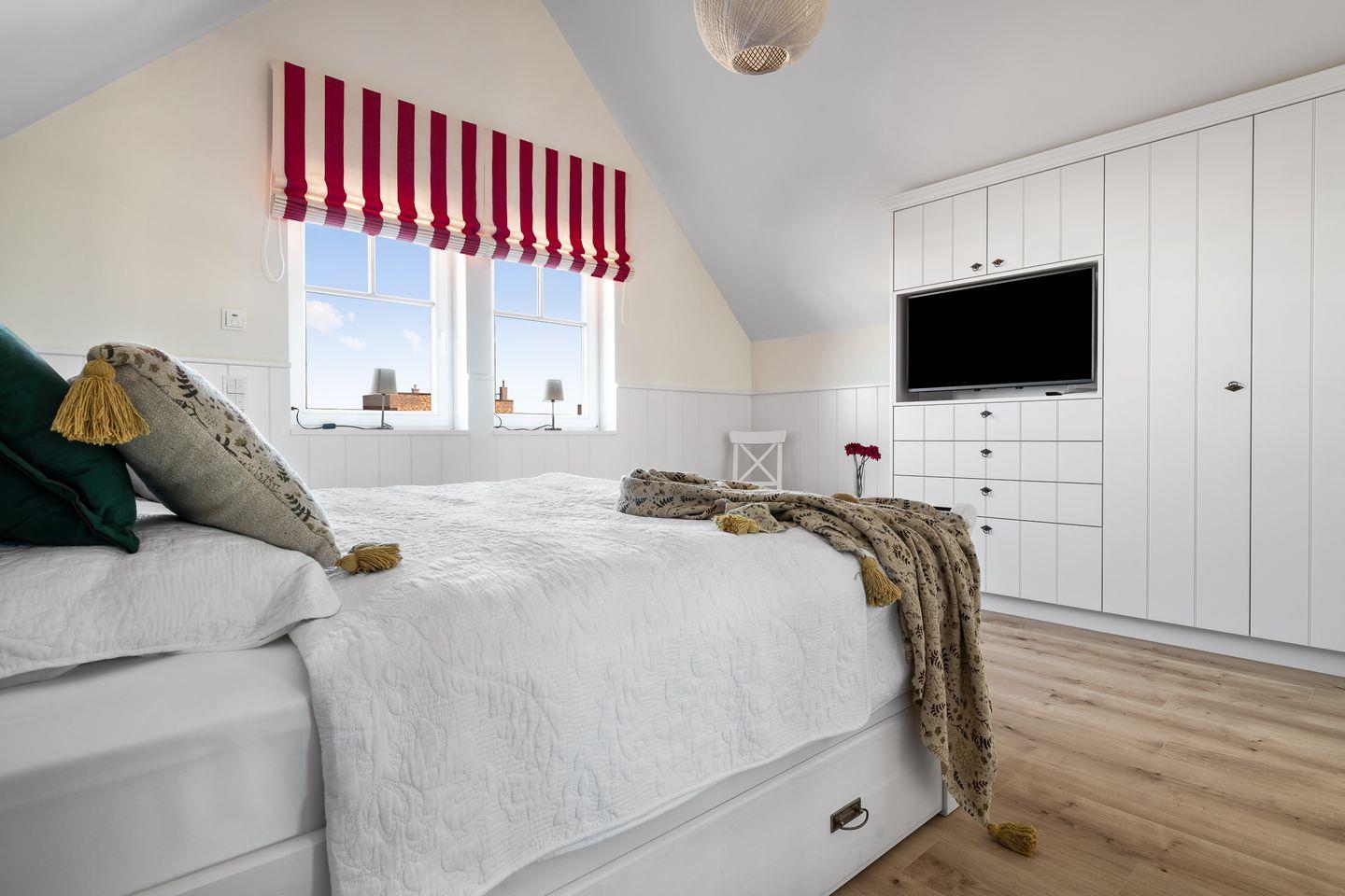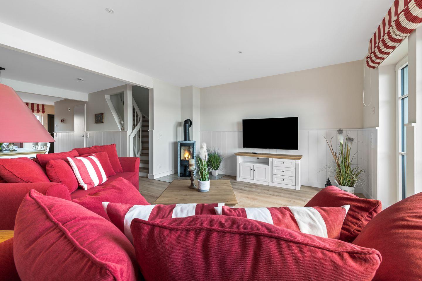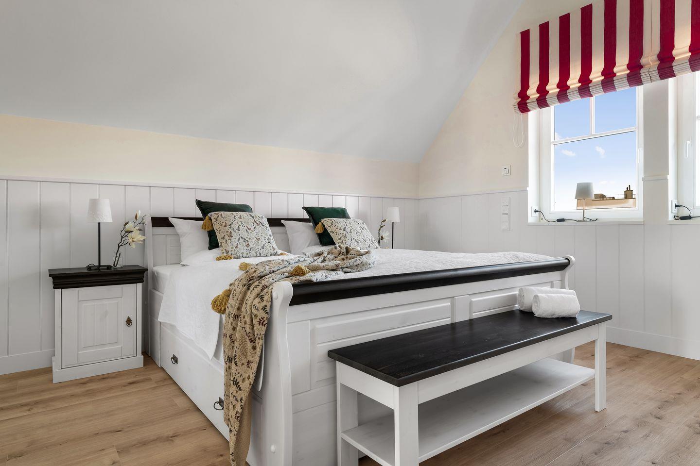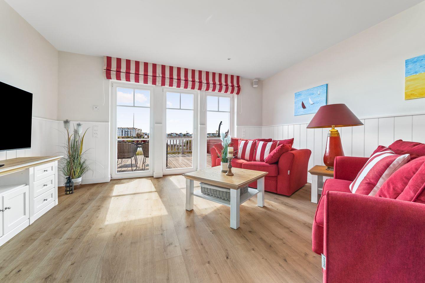 „Hafenliebe" – hier ist der Name Programm. Das romantisch eingerichtete, ca. 100qm große Ferienaus, sticht schon beim Vorbeifahren mit seiner roten Fassade unter den anderen Ferienobjekten heraus. Es wird genug Platz für bis zu 4 Personen geboten und überzeugt mit seiner herzlichen, in Rot gehaltenen Inneneinrichtung.