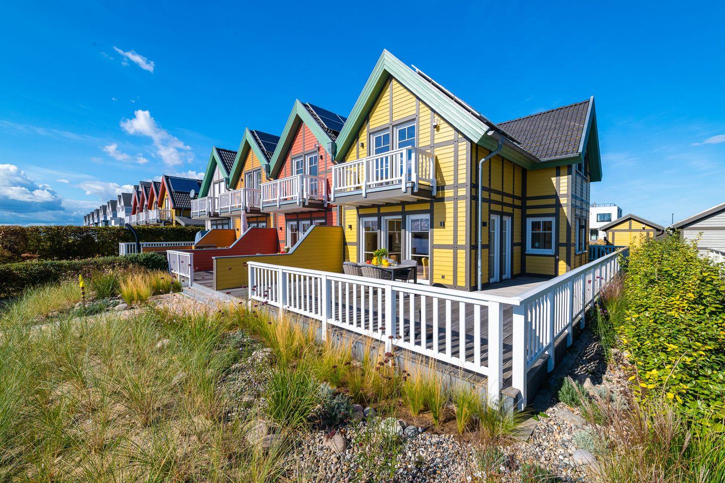 Das Ferienhaus "Hafenliebe" bietet mit seiner roten Fassade und der romantischen Einrichtung ein unvergessliches Erlebnis direkt am Segel- und Sportboothafen des Ostseeresort Olpenitz. Auf 100 qm finden bis zu 4 Personen Platz, bodentiefe Fenster kann der Blick auf die Ostsee genossen werden. Ausgestattet mit moderner Küche, Kamin und Sonos-Anlage im gemütlichen Wohnbereich, zwei Schlafzimmern im Obergeschoss sowie einer finnischen Sauna, bietet es Komfort und Erholung. PKW Stellplatz vorhanden.
