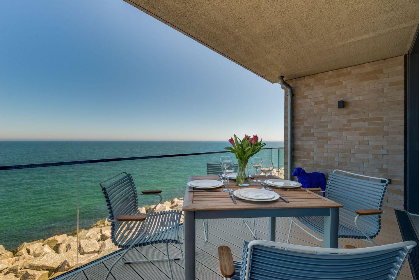 Eine hochwertige Wohnlandschaft, ein extravaganter Kamin, eine komplett ausgestattete Küche und der angrenzende Essbereich bieten Komfort auf ganzer Linie. Von hieraus auf den großen Balkon treten und die frische Ostseeluft einatmen oder beim Sundowner den Sonnenuntergang über der Schlei bewundern. Die hochwertige Möblierung und Überdachung des Balkons ermöglicht auch bei Regen den Aufenthalt an der frischen Luft. Am Morgen beim genussvollen Frühstück den Segelschiffen und Fischerbooten beim Ein- und Auslaufen aus der Schleimündung zuschauen und entspannt in den Tag starten.