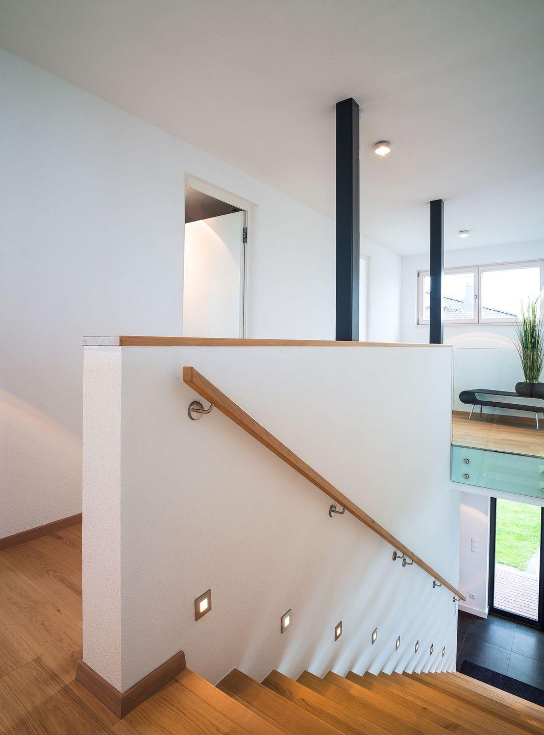 Über eine große Treppe gelangen unsere Gäste in das Obergeschoss, welches mit einem Atrium, 4 Schlafzimmern und zwei Badezimmern genügend Platz für 8 Personen bietet. Das Hauptschlafzimmer mit Einbauschränken, Safe, TV und hochwertigen Boxspringbett verfügt über einen separaten Zugang zum Badezimmer mit ebenerdiger Dusche, finnischer Sauna mit Meerblick, Waschtisch und WC.