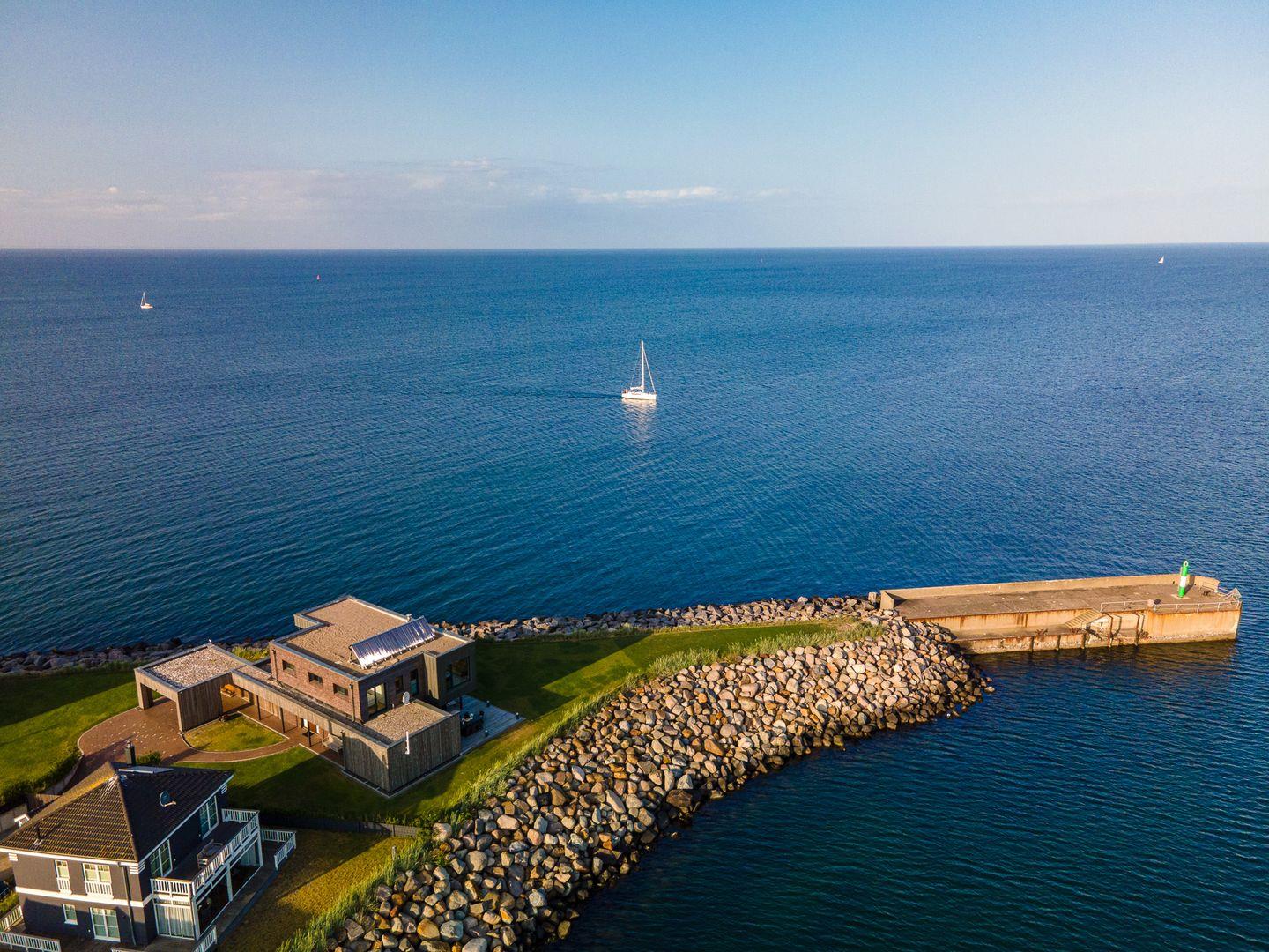 Das Luxus-Ferienhaus "Kap Baltic Sea" besticht durch seine einzigartige Lage direkt auf der Ostsee sowie durch die hochwertige Ausstattung des gesamten Objektes. Auf dem 2.050 qm großen Wassergrundstück wurde dieses schöne Feriendomizil errichtet. Umgeben von Wasser befindet sich das Ferienhaus auf der Spitze der Nordmole im Ostseeresort Olpenitz und ermöglicht den freien Blick auf die Ostsee und die Schleimündung. Hier wird Privatsphäre großgeschrieben, denn durch ein elektrisches, blickdichtes Rolltor gelangen unsere Gäste auf das nicht einsehbare Grundstück und können den Alltag hinter sich lassen.