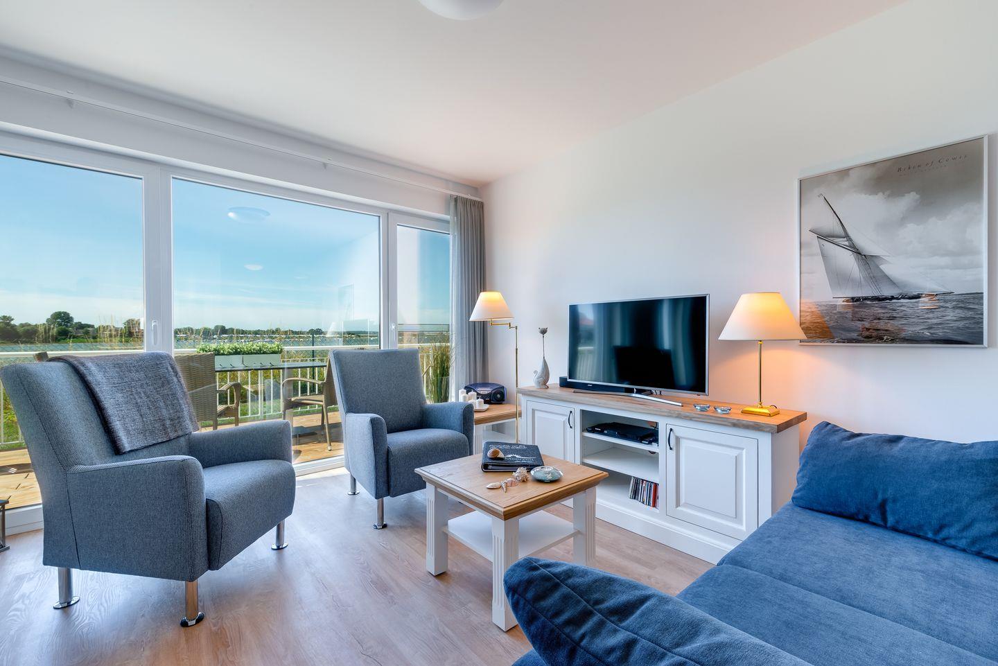 Tauchen Sie ein in das klassisch maritim eingerichtete Ferienhaus "Nis Randers". Bodentiefe Fenster sorgen für lichtdurchflutete Räume und lassen Sie die unvergleichliche Aussicht über die Schlei, die Ostsee und das OstseeResort Olpenitz von jedem Winkel des Hauses genießen.