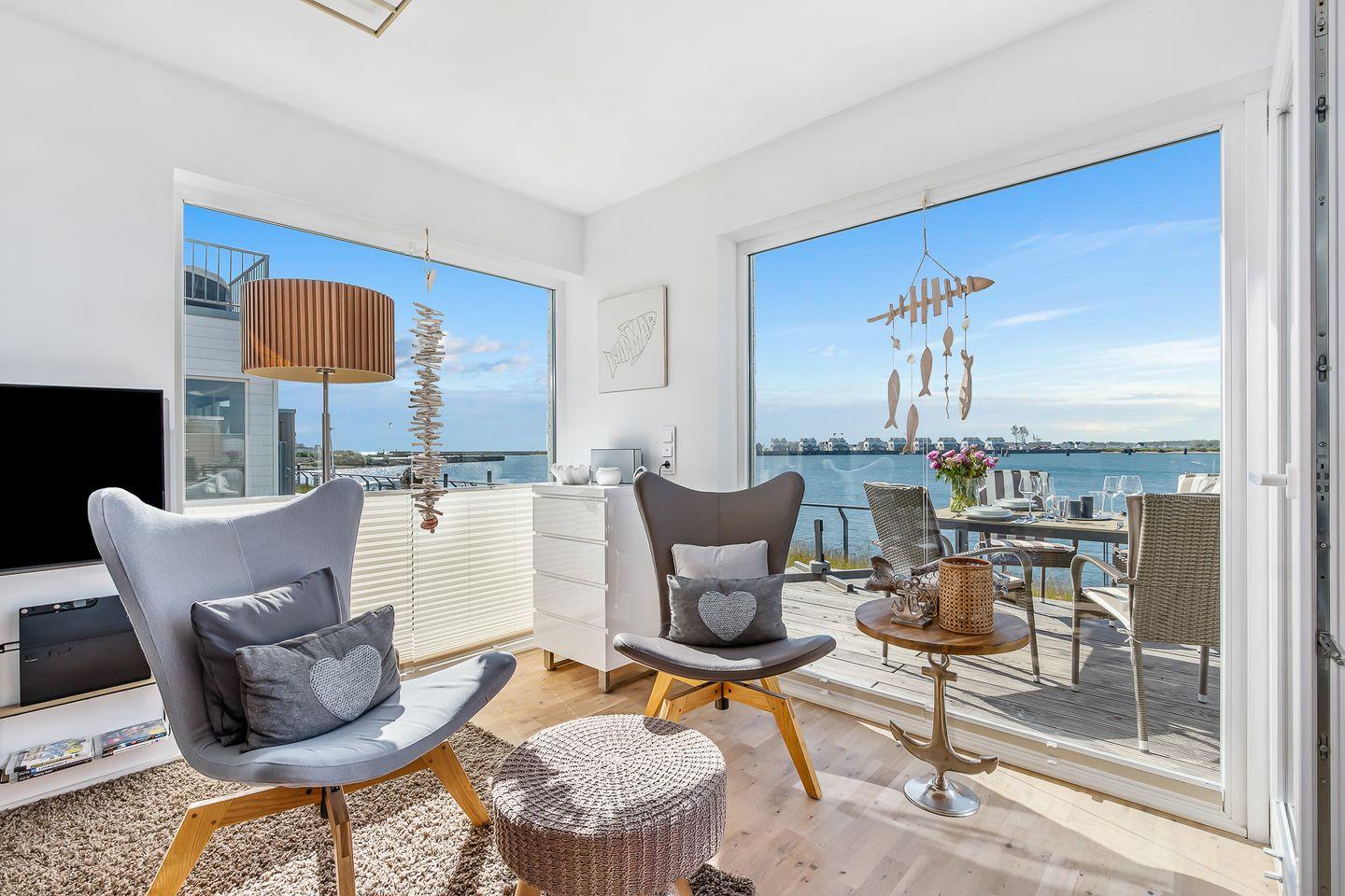 Die liebevoll eingerichtete Ferienwohnung "KapMar" mit 2 Schlafzimmern befindet sich in unmittelbarer Wasserlage am Kaianleger des neuen Ostseeresorts Olpenitz, dem wohl schönsten Platz an der Ostsee. Die Häuser stehen auf Stelzen direkt im Hafenbecken. Umgeben von Wasser bietet Ihnen die hochwertig ausgestattete Wohnung einen großzügigen und lichtdurchfluteten Wohn-/Essbereich. Aufgrund der unverbauten Lage und der bodentiefen Fenster genießen Sie ein einmaliges Panorama mit Blick über die Ostsee, den Hafen von Olpenitz und die Schlei.