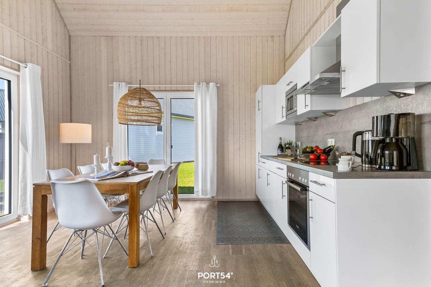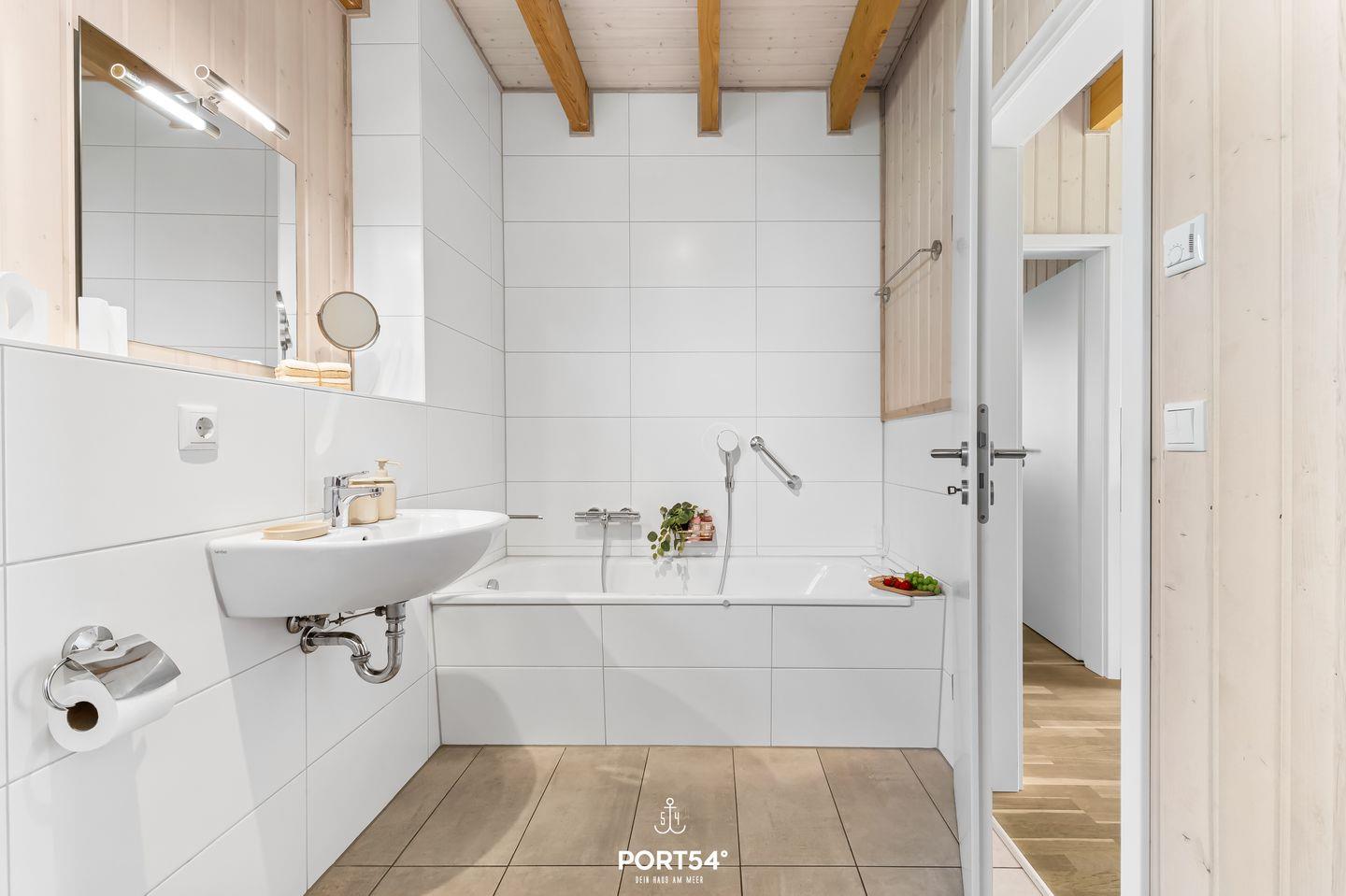 Die voll ausgestattete, modern eingerichtete Küche bietet alles, was Du für einen geselligen Kochabend mit der Familie benötigst. Das Bad im Erdgeschoss verfügt über ein Fenster mit Sichtschutz, eine Handtuchheizung, eine Badewanne und als Highlight eine Infrarot-Sauna. Hier kannst Du Dich nach langen Strandspaziergängen aufwärmen und entspannen.