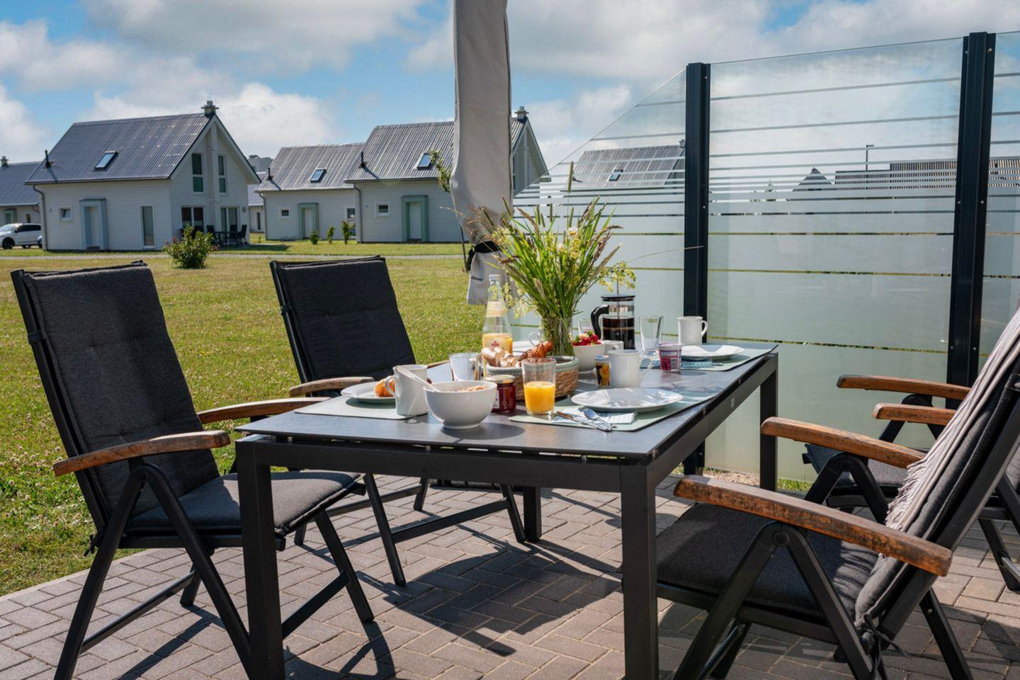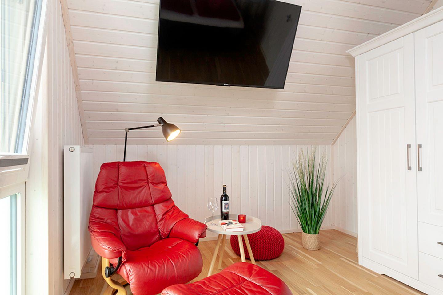 Willkommen im Haus "Maranatha" in Olpenitz. Das Ferienhaus besticht durch seine hochwertige, liebevolle Einrichtung sowie der unmittelbaren Nähe zur Ostsee. Die großen Fenster sorgen für ein lichtdurchflutetes großzügiges Wohngefühl. Es verfügt über einen offenen Wohn- und Essbereich, eine Küche, zwei Schlafzimmer und zwei Bäder. Nach langen Strandspaziergängen können Sie auf dem gemütlichen Sofa vor dem Kamin entspannen und Ihre Lieblingsserie auf dem Flachbild-TV schauen. Das Sofa kann zu einer Schlafcouch (170x190cm) ausgezogen werden und eignet sich als Schlafmöglichkeit für zwei Kinder. Für die Kleinen steht ein Kinderhochstuhl bereit. Die voll ausgestattete Küche bietet alles, was Sie für einen geselligen Kochabend mit der Familie benötigen. Im ersten Obergeschoss befinden sich die zwei Schlafzimmer. Das eine ist mit einem Doppelbett (180x200cm) und einem Flachbild-TV ausgestattet, das andere verfügt über zwei Einzelbetten (je 90x200cm). Beide Schlafzimmer sind mit jeweils mit einem Kleiderschrank und Verdunkelungsmöglichkeiten ausgestattet, sodass einem erholsamen Schlaf nichts mehr im Wege steht. Ein Badezimmer befindet sich im Erdgeschoss und ist mit einer ebenerdigen Dusche und dem Highlight: einer Infrarot-Sauna ausgestattet. Hier können Sie sich an kalten Tagen aufwärmen und entspannen! Das andere Badezimmer befindet sich im Obergeschoss und bietet eine Duschwanne und einen Föhn. An sonnigen Tagen können Sie es sich auf der möblierten Terrasse gemütlich machen. In dem Strandkorb können Sie ihre Urlaubstage genießen und an lauen Sommerabenden mit der Familie die Tage auf der Terrasse ausklingen lassen. Das Ferienhaus ist für maximal vier Erwachsene und zwei Kinder vorgesehen. Ihre Fellnasen können Sie gerne mitbringen! Für Ihren PKW ist ein Stellplatz vor dem Haus zur Verfügung. Im abschließbaren Fahrradschuppen können Sie Ihre mitgebrachten oder ausgeliehenen Fahrräder sicher abstellen. Das Haus ist für 4 Erwachsene und 2 Kinder geeignet.