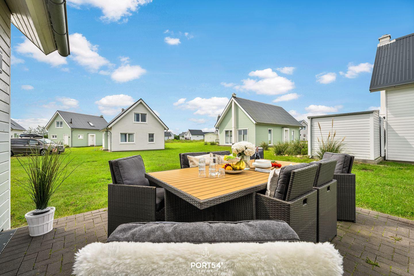 An sonnigen Tagen kannst Du es Dir auf der möblierten Terrasse gemütlich machen. Auf den Sonnenliegen kannst Du Deine Urlaubstage genießen und an lauen Sommerabenden mit der Familie die Tage auf der Terrasse ausklingen lassen.