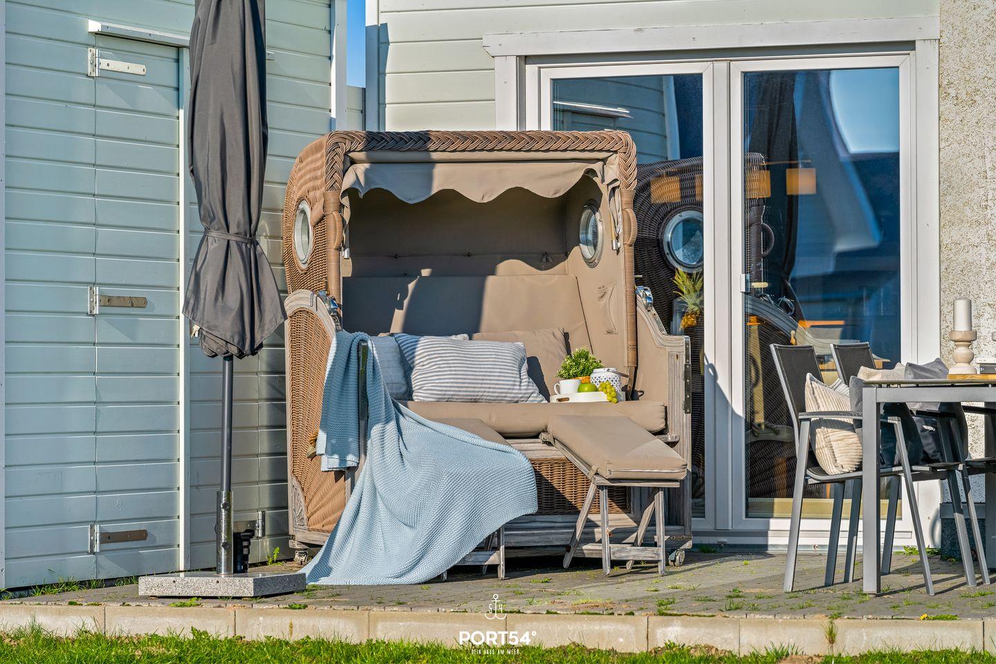 An sonnigen Tagen kannst Du es Dir auf der möblierten Terrasse gemütlich machen. Die Sonnenliegen laden zum Relaxen ein und an lauen Sommerabenden kannst Du die Tage auf der Terrasse ausklingen lassen.