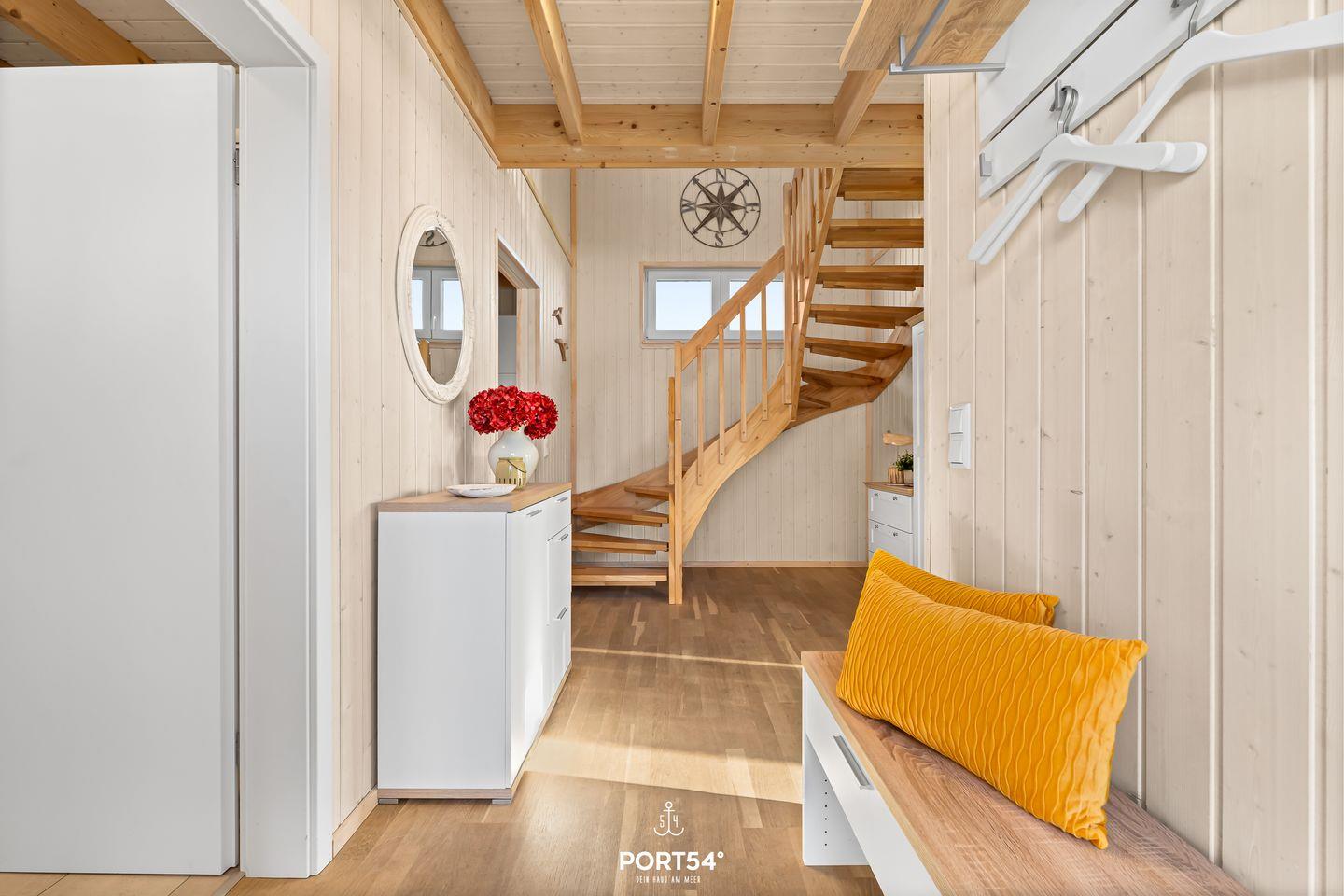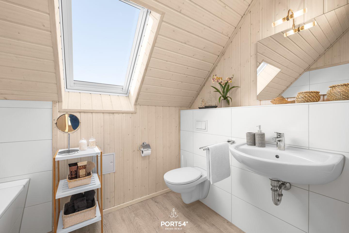 Ein Badezimmer befindet sich im Erdgeschoss und ist mit einer ebenerdigen Dusche und dem Highlight, einer Infrarot-Sauna, ausgestattet. Hier kannst Du Dich an kalten Tagen aufwärmen und entspannen.