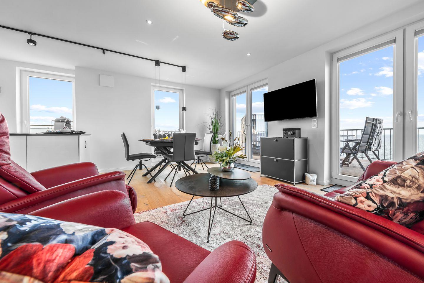 Unsere Luxus-Penthaus-Wohnung "Sea Point" erwartet Sie auf einer malerischen Landzunge im Ostseeresort Olpenitz, mit einem atemberaubenden Blick auf die Ostsee.