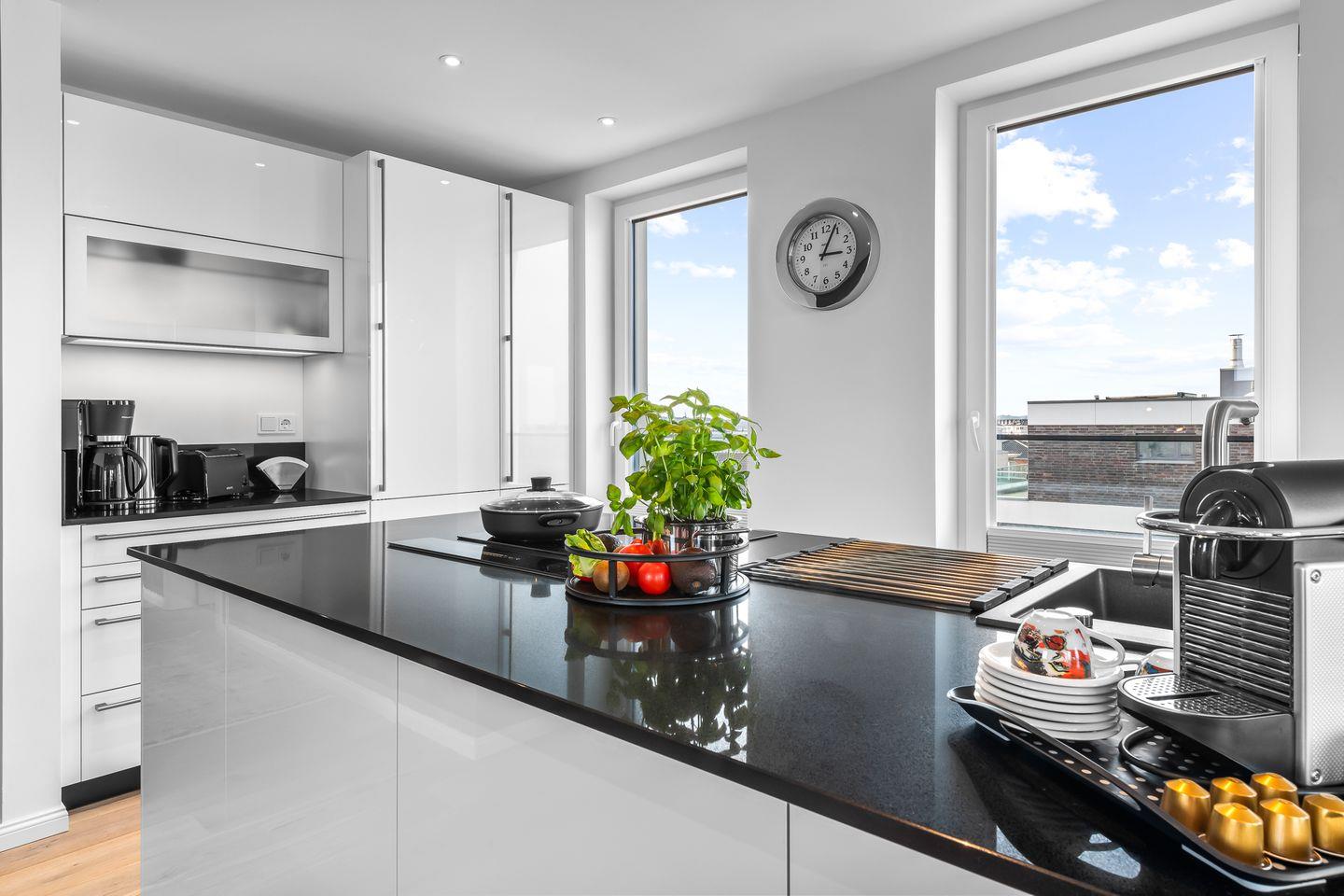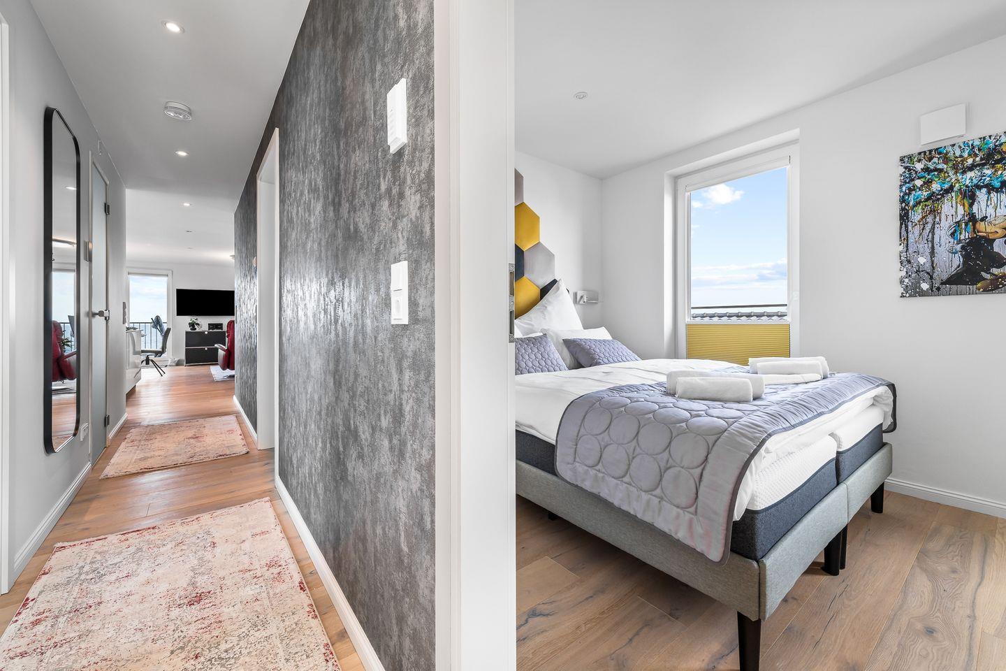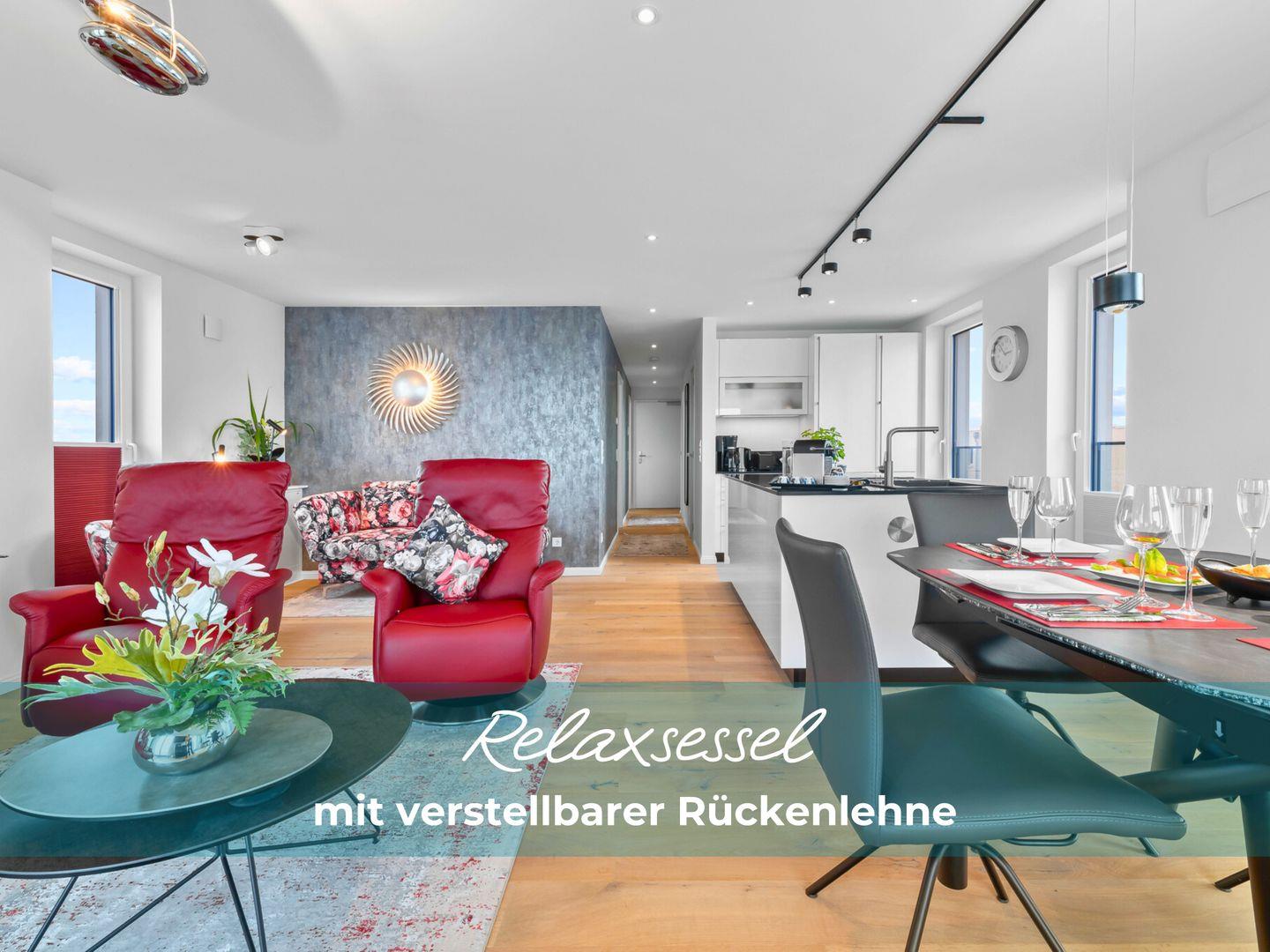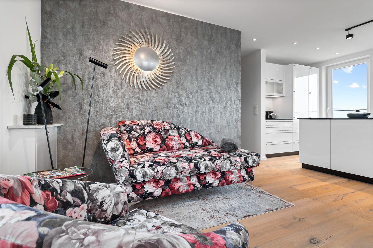 Egal, ob Sie mit Ihrer Familie, Freunden oder zu zweit reisen, unser geräumiges Apartment mit 115qm Wohnfläche bietet Platz für bis zu 5 Personen und ist bequem mit einem Fahrstuhl erreichbar. Die exklusive, modern gestaltete Ausstattung wurde sorgfältig ausgewählt und bis ins kleinste Detail harmonisch aufeinander abgestimmt.