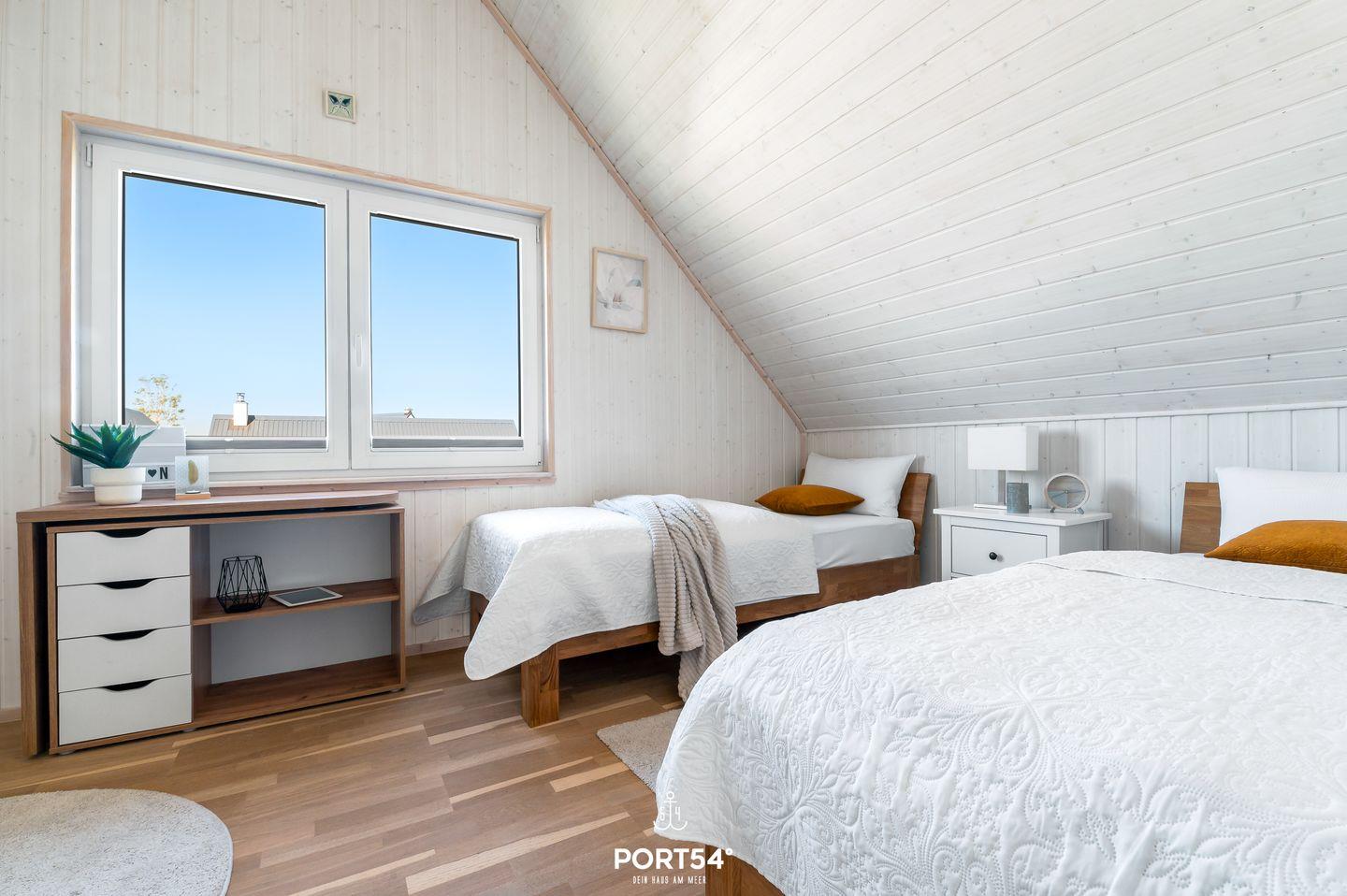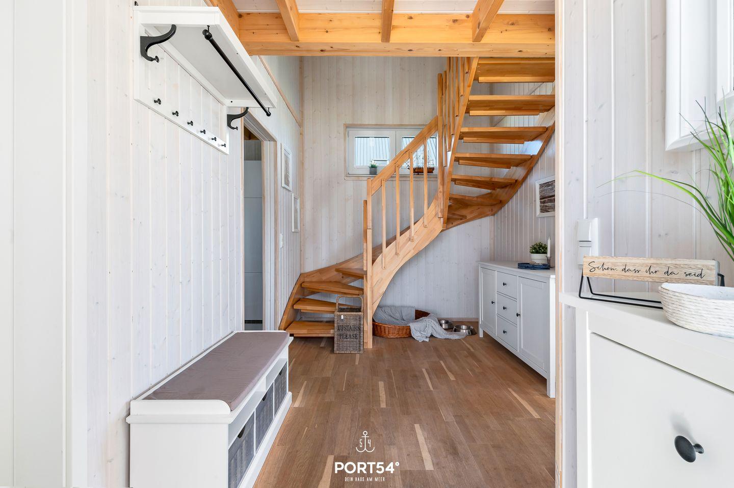 Herzlich willkommen im "Ahoi Skipper"! Das Haus verfügt über einen offenen Wohn- und Essbereich, eine Küche, zwei Schlafzimmer und zwei Bäder. Es besticht durch seine Lage im Grünen und der Nähe zur Ostsee. Die großen Fenster sorgen für ein lichtdurchflutetes, großzügiges Wohngefühl. Nach langen Strandspaziergängen können Sie auf dem gemütlichen Sofa vor dem Kamin entspannen und Ihre Lieblingsserie auf dem Flachbild-TV schauen. Das Sofa kann zu einer Schlafcouch (200x200cm) ausgezogen werden und so ergibt sich ein weiterer Schlafplatz. Für die Kleinen steht ein Kinderhochstuhl bereit. Die Küche bietet alles, was Sie für einen geselligen Kochabend mit der Familie benötigen. Im ersten Obergeschoss befinden sich die zwei Schlafzimmer: Das eine ist mit einem Doppelbett (180x200cm) und einem Flachbild-TV ausgestattet, das andere verfügt über zwei Einzelbetten (je 90x200cm). Hier steht Ihnen ein Schlafsofa (90x200cm) zur Verfügung. Bei Bedarf lässt sich die Schublade des Schlafsofas heraus ziehen und bietet eine weitere Schlafmöglichkeit (ebenfalls 90x200cm). Für erholsame Nächte sind beide Schlafzimmer mit Verdunkelungsmöglichkeiten ausgestattet. Ein Badezimmer befindet sich im Erdgeschoss und ist mit einer ebenerdigen Dusche, WC, einer Handtuchheizung und dem Highlight, einer Infrarot-Sauna. Hier können Sie sich an kalten Tagen aufwärmen und entspannen. Ein weiteres Badezimmer im ersten Obergeschoss bietet eine Duschwanne, ebenfalls eine Handtuchheizung und einen Föhn. An sonnigen Tagen können Sie es sich auf der möblierten Terrasse gemütlich machen. Sie können so Ihre Urlaubstage genießen und an lauen Sommerabenden mit der Familie die Tage auf der Terrasse ausklingen lassen. Ihre Fellnasen gehören zur Familie und sind bei uns nicht nur geduldet, sondern herzlich Willkommen. Für Ihren PKW steht ein Stellplatz vor dem Haus zur Verfügung. Das Haus wird für 5 Erwachsene und 1 Kind angeboten