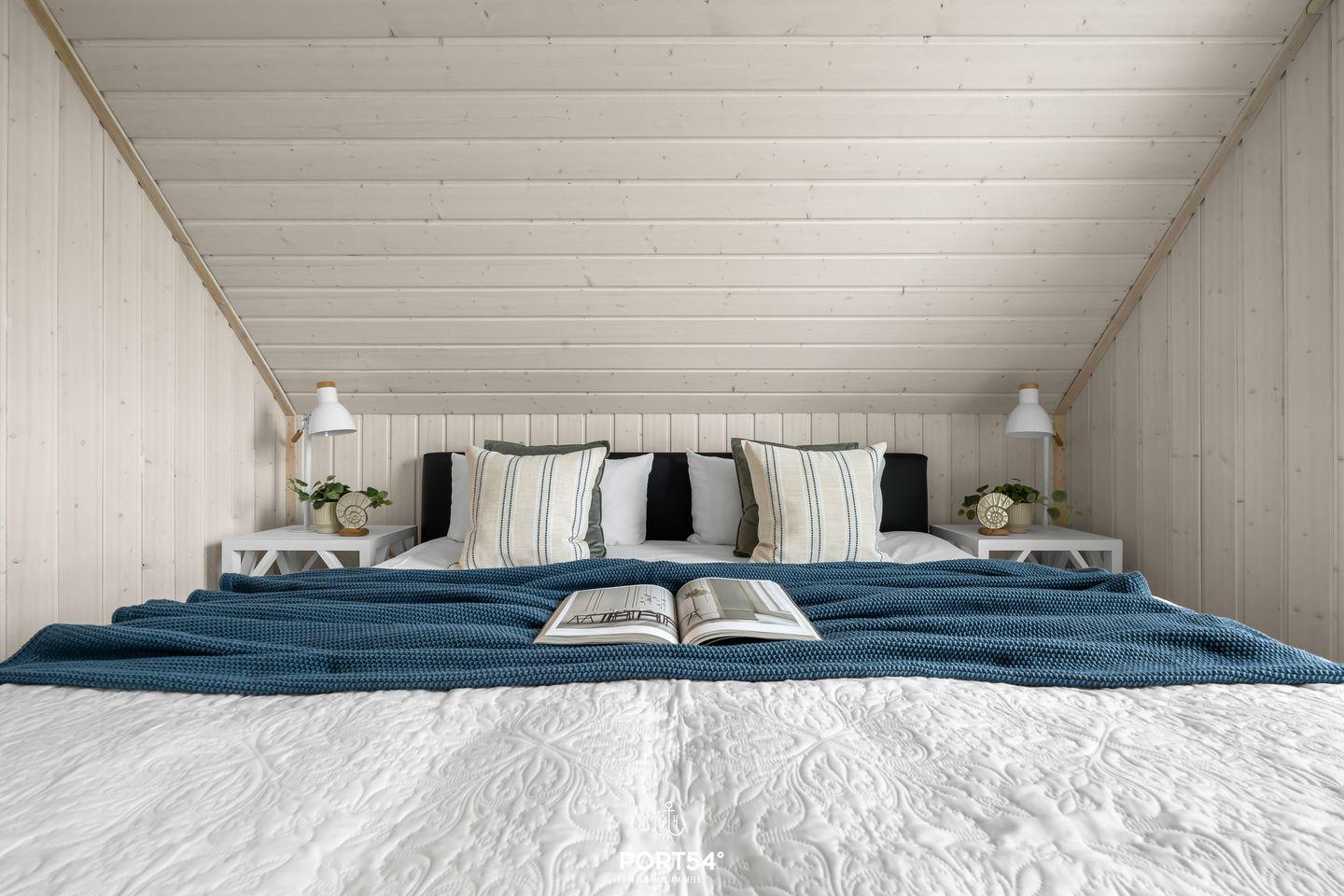 Das Ferienhaus bietet auf 80m² einen offenen Wohn- und Essbereich mit Küche, zwei Schlafzimmer, zwei Badezimmer und eine Terrasse. In der vollausgestatteten Küche lassen sich leckere Gerichte zaubern. Das eine Schlafzimmer bietet ein Doppelbett und das andere Schlafzimmer zwei Einzelbetten. Die Bäder bieten eine Dusche und eine Badewanne. Auf der Terrasse gibt es Gartenmöbel, einen Sonnenschirm, sowie einen Holzkohlegrill. Zwei Außenstellplätze sind vor dem Haus vorhanden.