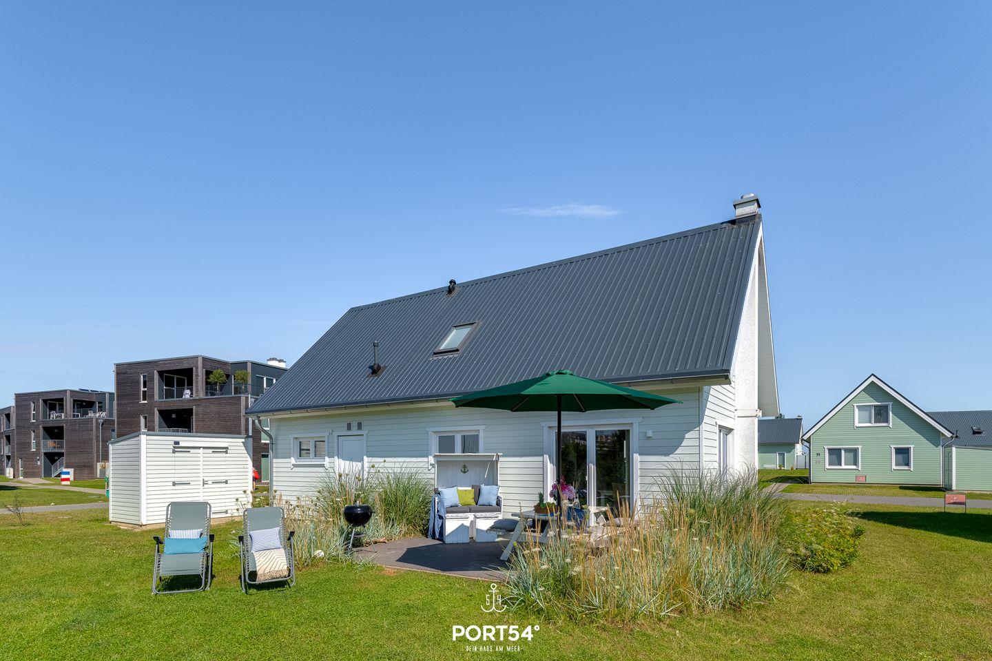 Genieße die Sonne auf der großen Südwest-Terrasse, umgeben von charmantem Pampasgras. Entspanne Dich auf den stilvollen Holzmöbeln oder im gemütlichen Strandkorb. Vier Sonnenliegen laden zum Relaxen ein, während der Grill perfekte Voraussetzungen für unvergessliche Grillabende im Kreise der Familie bietet.