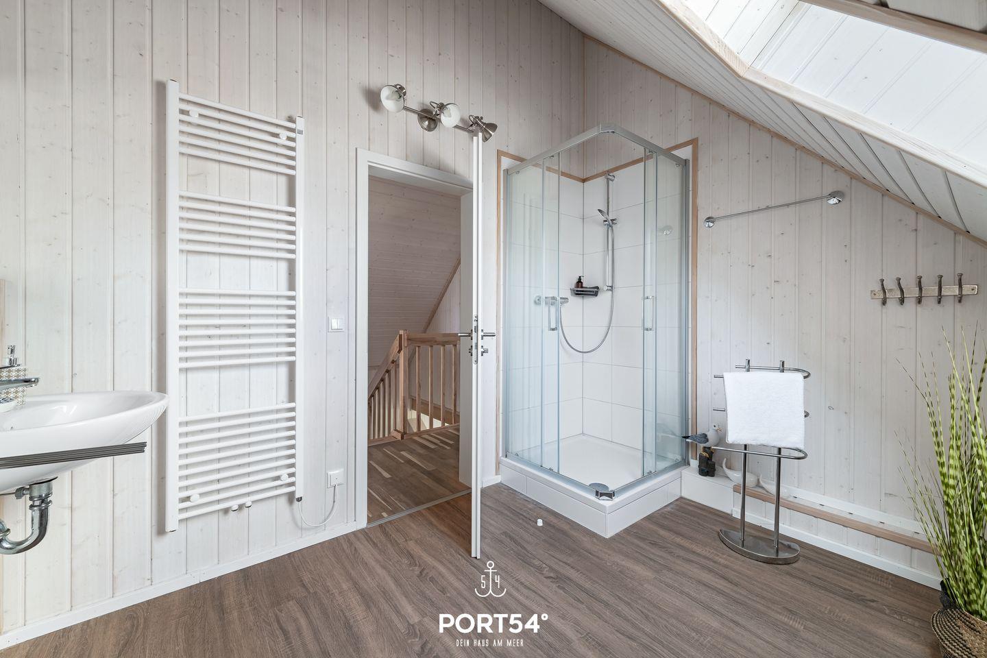 Willkommen in der "Möwenkoje" in Olpenitz. Gleich nach Eintritt werden Sie sich sofort wie Zuhause fühlen. Das freistehende, 115m² große Ferienhaus besticht durch seine gemütliche und geschmackvolle Einrichtung und der unmittelbaren Nähe zur Ostsee. Im Erdgeschoss erwartet Sie ein offener Wohn- und Essbereich mit Kaminofen. Nach langen Spaziergängen können Sie es sich vor dem Kamin bei wohliger Wärme gemütlich machen, ein gutes Buch lesen oder auf dem Flachbild-TV Ihre Lieblingsserie schauen. In der voll ausgestatteten Küche lassen sich leckere Gerichte zaubern. Neben Backofen, Mikrowelle, Toaster, Wasserkocher gibt es auch ein Waffeleisen um leckere Waffeln zaubern zu können. Das Haus verfügt über 4 Schlafzimmer, von denen 3 mit einem Flachbild-TV ausgestattet sind. Zwei Schlafzimmer befinden sich im Untergeschoss, eines ist mit einem Schrank und einem Boxspringbett (180x200cm) und ein weiteres mit einem Schrank und 2 Boxspringbetten (90x200cm) ausgestattet. Durch die Verdunkelungsmöglichkeiten in allen Schlafzimmern steht einem erholsamen Schlaf nichts mehr im Wege. Für unsere kleinen Gäste stehen ein Kinderhochstuhl und ein Kinderreisebett zur Verfügung. Ein Bad mit Fenster mit Sichtschutz, Badewanne, Waschmaschine, Handtuchheizung und dem Highlight: einer Infrarotkabine, runden das Untergeschoss ab. Im oberen Bereich befinden sich zwei weitere Schlafzimmer, beide sind jeweils mit einem Doppelbett (200x200cm) ausgestattet. Ebenfalls befindet sich im Obergeschoss ein weiteres Bad mit einem Dachfenster mit Sichtschutz und einer Dusche. Auf der Terrasse sind neben Gartenmöbeln, ein Sonnenschirm, ein Holzkohlegrill und Sonnenliegen zum Entspannen zu finden. Nutzen Sie die Terrasse für gemütliche Grillabende oder einfach nur zum Erholen und die Seele baumeln zu lassen. Ihre Fellnasen sind natürlich auch herzlich Willkommen. Vor Ihrem Ferienhaus stehen Ihnen 2 Parkplätze zur Verfügung. Das Haus ist ausgestattet für 8 Personen.