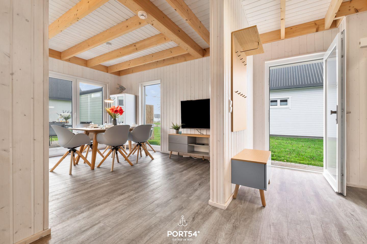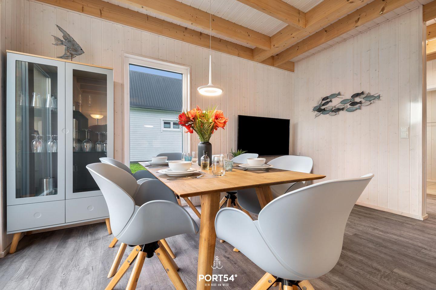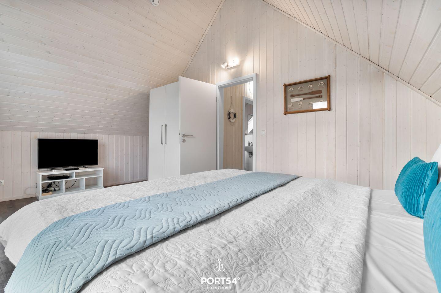 Herzlich Willkommen in Ihrem Ferienhaus "Huus Luv" in Olpenitz. Ihr freistehendes, 80 qm großes Feriendomizil verfügt über einen großzügigen Wohn- und Essbereich, zwei Schlafzimmer, zwei Bäder und eine Küche. Durch die Liebe zum Detail und der hochwertigen Ausstattung werden Sie sich gleich wie zuhause fühlen. Die großen Fenster sorgen für ein lichtdurchflutetes, großzügiges Wohngefühl. Im Wohnbereich können Sie es sich auf dem Sofa gemütlich machen, ein gutes Buch lesen oder auf dem Flach-TV Ihre Lieblingsserie schauen. Das Sofa lässt sich mit wenigen Handgriffen zu einem Schlafsofa umfunktionieren, so dass ein weiterer Schlafplatz für ein Kind zur Verfügung steht. An kühlen Abenden verbreitet der Kamin eine wohlige Wärme. Die Küche bietet alles, um sich und Ihre Familie kulinarisch zu verwöhnen. Ein Bad rundet das Erdgeschoss ab. Das Badezimmer verfügt über ein Fenster mit Sichtschutz, eine Dusche, eine Handtuchheizung und als besonderes Highlight, eine Infrarotkabine. Hier können Sie sich nach langen Strandspaziergängen aufwärmen und entspannen. Für unsere kleinen Gäste stehen ein Babyreisebett, ein Kinderhochstuhl, ein Kinderhocker und ein Töpfchen bereit. Im Obergeschoss befinden sich zwei Schlafzimmer. Eines der beiden Zimmer bietet ein gemütliches Boxspringbett (180cmx200cm), einen Schrank und einen Smart-TV, das zweite Schlafzimmer ist mit zwei Boxspringbetten (je90cmx200cm), sowie ebenfalls mit einem Schrank ausgestattet. Beide Zimmer verfügen über Insektenschutz und Verdunkelungsmöglichkeiten, so dass einem erholsamen Schlaf nichts mehr im Wege steht. Das Bad im Obergeschoss bietet ein Dachfenster mit Sichtschutz, eine Badewanne, eine Handtuchheizung, einen Föhn und ein weiteres WC. Ihre Fellnasen sind nicht nur geduldet, sondern herzlich Willkommen. Genießen Sie die nach Süden ausgerichtete, möblierte Terrasse um zu entspannen, Grillabende zu veranstalten oder einfach um im Strandkorb die Seele baumeln zu lassen. Für Ihre mitgebrachten oder beim Tourguide gemieteten Räder steht Ihnen ein abschließbarer Schuppen zur Verfügung. Nicht nur für Ihre Zweiräder ist gesorgt: vor Ihrem Ferienhaus stehen für Ihren PKW 2 Parkplätze zur Verfügung. Das Haus wird für 4 Erwachsene und ein Kind angeboten.