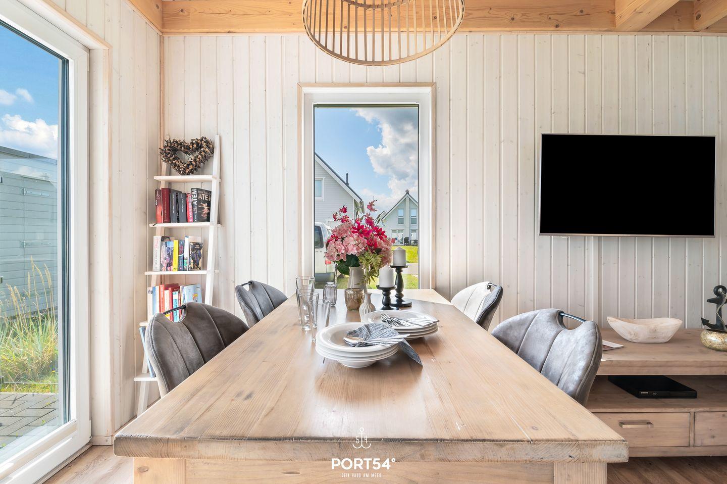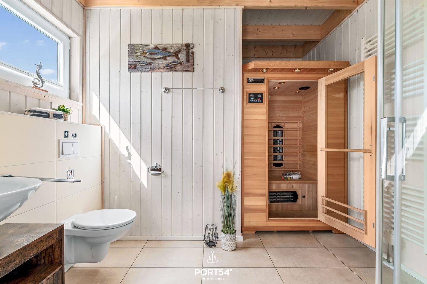 Herzlich Willkommen im "Lütt Hus Fiena" in Olpenitz. Ihr freistehendes, 80m² großes Feriendomizil verfügt über einen großzügigen Wohn- und Essbereich, zwei Schlafzimmer, zwei Bäder und eine Küche. Durch die Liebe zum Detail und der hochwertigen Ausstattung werden Sie sich gleich wie Zuhause fühlen. Die großen Fenster sorgen für ein lichtdurchflutetes, großzügiges Wohngefühl. Im Wohnbereich können Sie es sich auf dem Sofa gemütlich machen, ein gutes Buch lesen oder auf dem Flachbild-TV Ihre Lieblingsserie schauen. An kühlen Abenden verbreitet der Kamin eine wohlige Wärme. Die Küche bietet alles, um sich und Ihre Familie kulinarisch zu verwöhnen. Ein Bad rundet das Erdgeschoss ab. Das Badezimmer verfügt über ein Fenster mit Sichtschutz, eine Dusche, eine Handtuchheizung und über ein besonderes Highlight: eine Infrarot-Sauna. Hier können Sie sich nach langen Strandspaziergängen aufwärmen und entspannen. Im Obergeschoss befinden sich zwei Schlafzimmer. Eines der beiden Zimmer bietet ein gemütliches, großes Boxspringbett (180x200cm) und einen Schrank, das zweite Schlafzimmer ist mit zwei Boxspringbetten (90x200cm), sowie ebenfalls mit einem Schrank ausgestattet. Beide Zimmer verfügen über Verdunkelungsmöglichkeiten und Insektenschutz, sodass einem erholsamen Schlaf nichts im Wege steht. Das Bad im Obergeschoss bietet ein Dachfenster mit Sichtschutz, eine Badewanne, eine Handtuchheizung, einen Föhn und ein weiteres WC. Genießen Sie die möblierte Terrasse um zu entspannen oder einfach auf der Sonnenliege die Seele baumeln zu lassen. Für Ihre mitgebrachten oder beim Tourguide gemieteten Räder steht Ihnen ein abschließbarer Schuppen zur Verfügung. Nicht nur für Ihre Zweiräder ist gesorgt: vor Ihrem Ferienhaus stehen für Ihre PKWs 2 Parkplätze zur Verfügung.