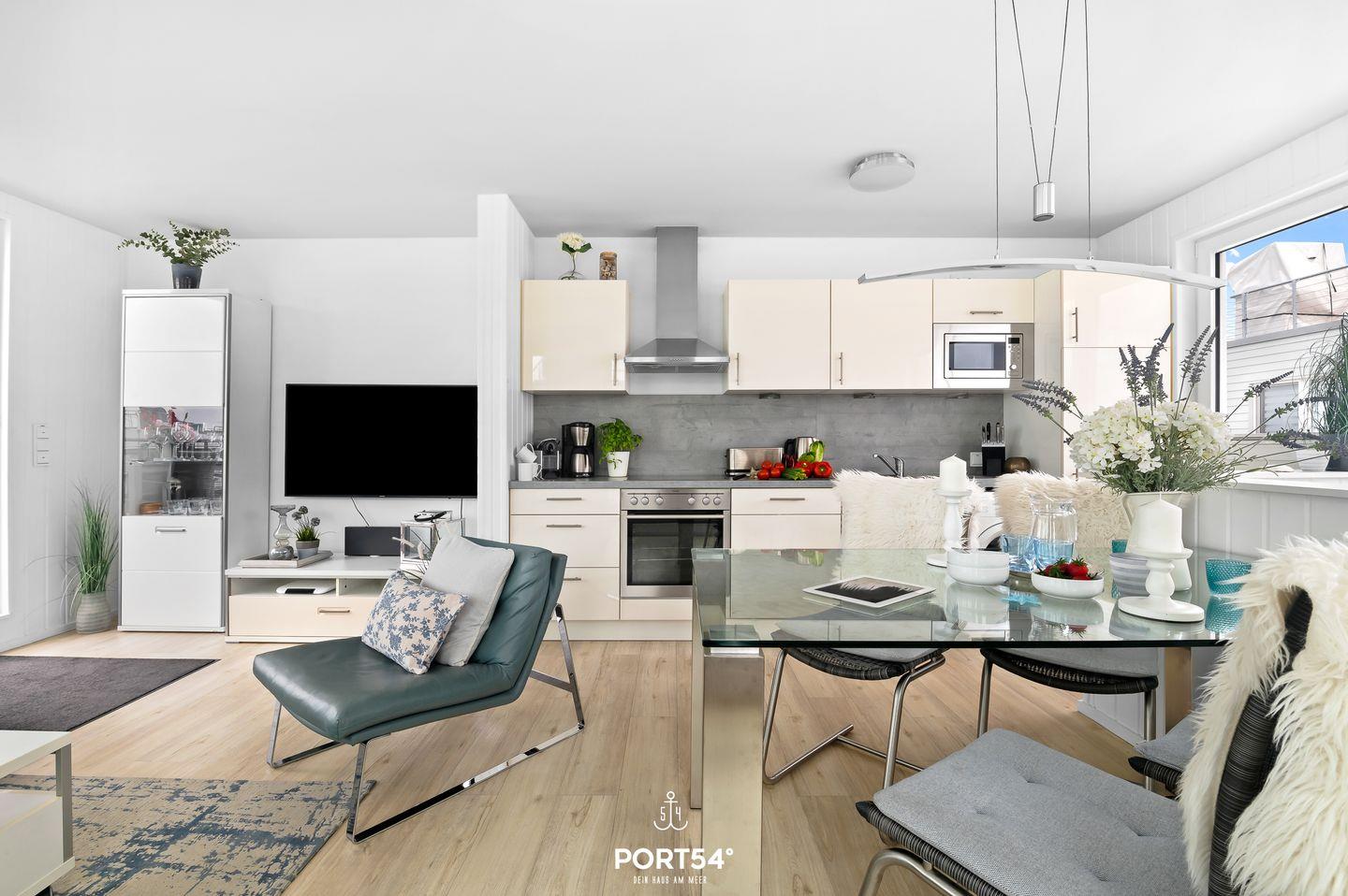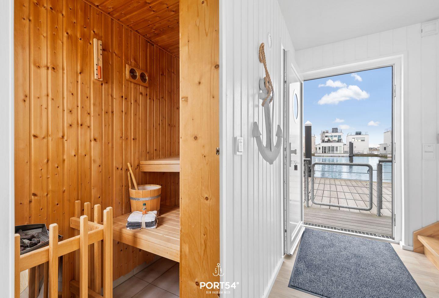 Ihr Traumhaus "Biscaya" im Hafenbecken von Olpenitz. Ihr Urlaub beginnt nicht am Wasser, sondern auf dem Wasser! Im malerischen Hafenbecken von Olpenitz erwartet Sie das exklusive Schwimmhaus, ein architektonisches Meisterwerk mit 97 qm auf einem stabilen Ponton errichtet, bequem über einen Steg erreichbar. Hier vereinen sich Luxus, Natur und maritime Atmosphäre zu einem unvergesslichen Urlaubserlebnis. Ihr schwimmendes Paradies: Dieses einzigartige Haus bietet Ihnen zwei stilvoll eingerichtete Schlafzimmer. Das Hauptschlafzimmer verwöhnt Sie mit einem luxuriösen Boxspringbett (180x200 cm), einem großzügigen Kleiderschrank sowie einem Flachbild-TV. Das zweite Schlafzimmer ist ebenfalls mit zwei bequemen Boxspringbetten (90x200cm) und einem Flachbild-TV ausgestattet. Ein besonderes Highlight: Das Schlafzimmer liegt direkt über dem Wasser und bietet bodentiefe Fenster, die Ihnen einen atemberaubenden Blick auf das Hafenbecken ermöglichen. Wellness & Komfort: Auf der gleichen Etage finden Sie eine private Sauna – der perfekte Ort, um nach einem Tag voller Entdeckungen zu entspannen. Das moderne Badezimmer ist mit einer erfrischenden Dusche, Handtuchheizung und einem Fenster ausgestattet, das Tageslicht hereinlässt und für eine angenehme Atmosphäre sorgt. Für die kleinen Gäste steht ein Kinderreisebett und ein Kinderhochstuhl zur Verfügung. Offenes Wohnkonzept: Eine Holztreppe führt Sie in das Obergeschoss, das sich in einer offenen, loftartigen Bauweise ohne Wände präsentiert. Hier verschmelzen Wohn- und Essbereich zu einem einladenden Raum, der keine Wünsche offen lässt. Die komplett ausgestattete Küchenzeile bietet Ihnen alle Annehmlichkeiten, die Sie benötigen, um köstliche Mahlzeiten zuzubereiten. Im Wohnbereich erwartet Sie ein gemütliches Sofa und ein Flachbild-TV, während bodentiefe Fenster auch hier für lichtdurchflutete Räume und einen traumhaften Ausblick sorgen. Outdoor-Luxus: Eine 30 qm große, umlaufende Terrasse lädt mit hochwertigen Gartenmöbeln zum Verweilen ein. Von hier aus haben Sie Zugang zu einem Sonnendeck, das Ihnen einen fantastischen Blick über das Wasser bietet. Genießen Sie die frische Brise, beobachten Sie die vorbeiziehenden Boote und lassen Sie die Seele baumeln. Perfekte Lage: In unmittelbarer Nähe finden Sie den idyllischen Weidefelder Strand sowie eine Badebucht mit feinem Sandstrand. Hier können Sie nach Herzenslust schwimmen, sonnenbaden oder einfach nur die herrliche Küstenlandschaft genießen. Ihre Fellnasen sind nicht nur geduldet sondern herzlich Willkommen. Einem Stellplatz für Ihren PKW finden sie am Stegzugang. Ein Urlaub der besonderen Art: Erleben Sie Urlaub auf eine ganz neue Weise – auf dem Wasser, inmitten der Natur, mit allem Komfort und Luxus, den Sie sich wünschen. Das Schwimmhaus im Hafenbecken von Olpenitz ist mehr als nur eine Unterkunft; es ist ein Erlebnis, das Sie nicht vergessen werden. Buchen Sie jetzt und tauchen Sie ein in Ihr persönliches Urlaubsparadies!