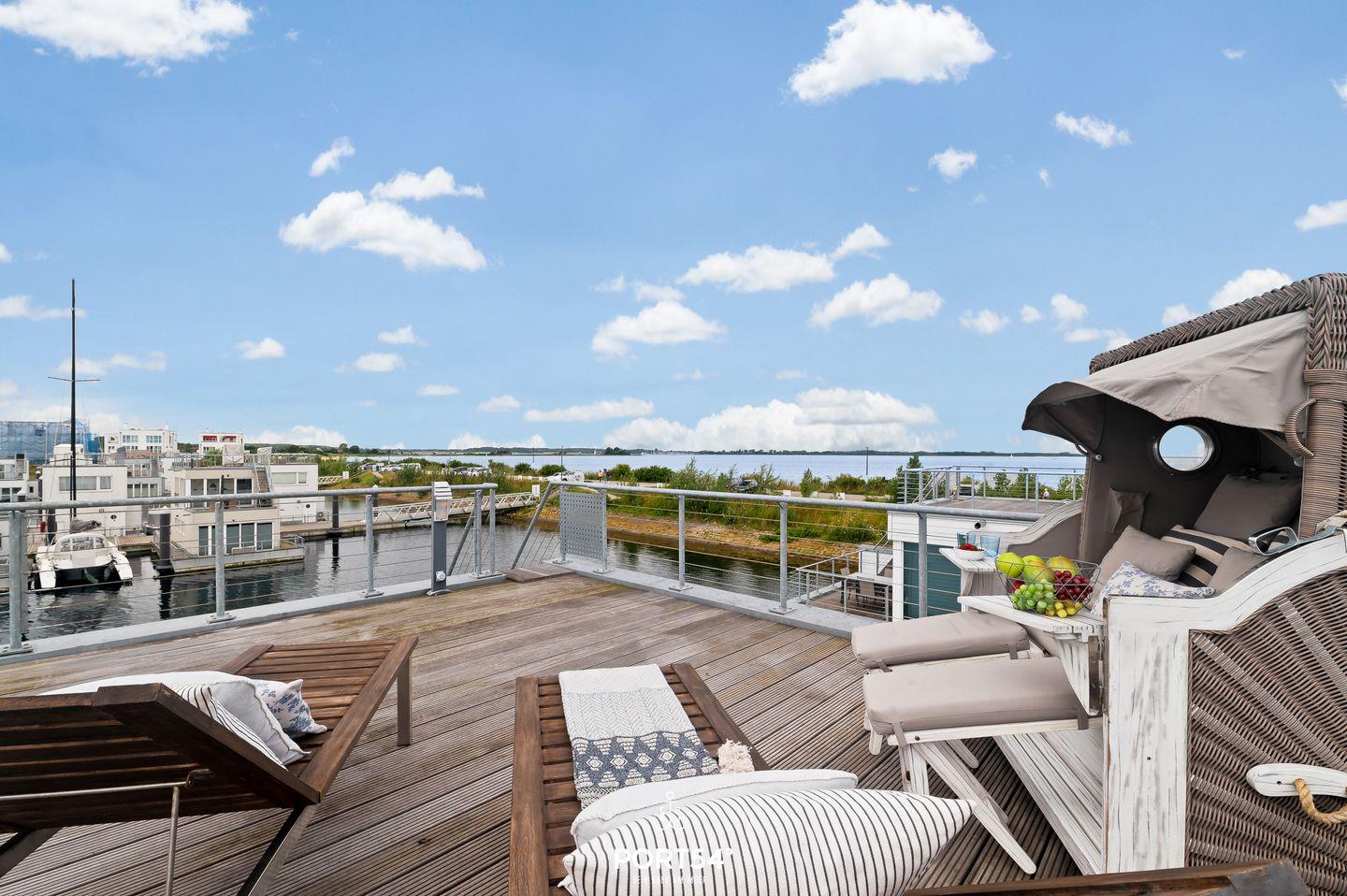 Biscaya - Sauna, Dusche, Dachterrasse 360° mit Panoramablick, schwimmendes Haus