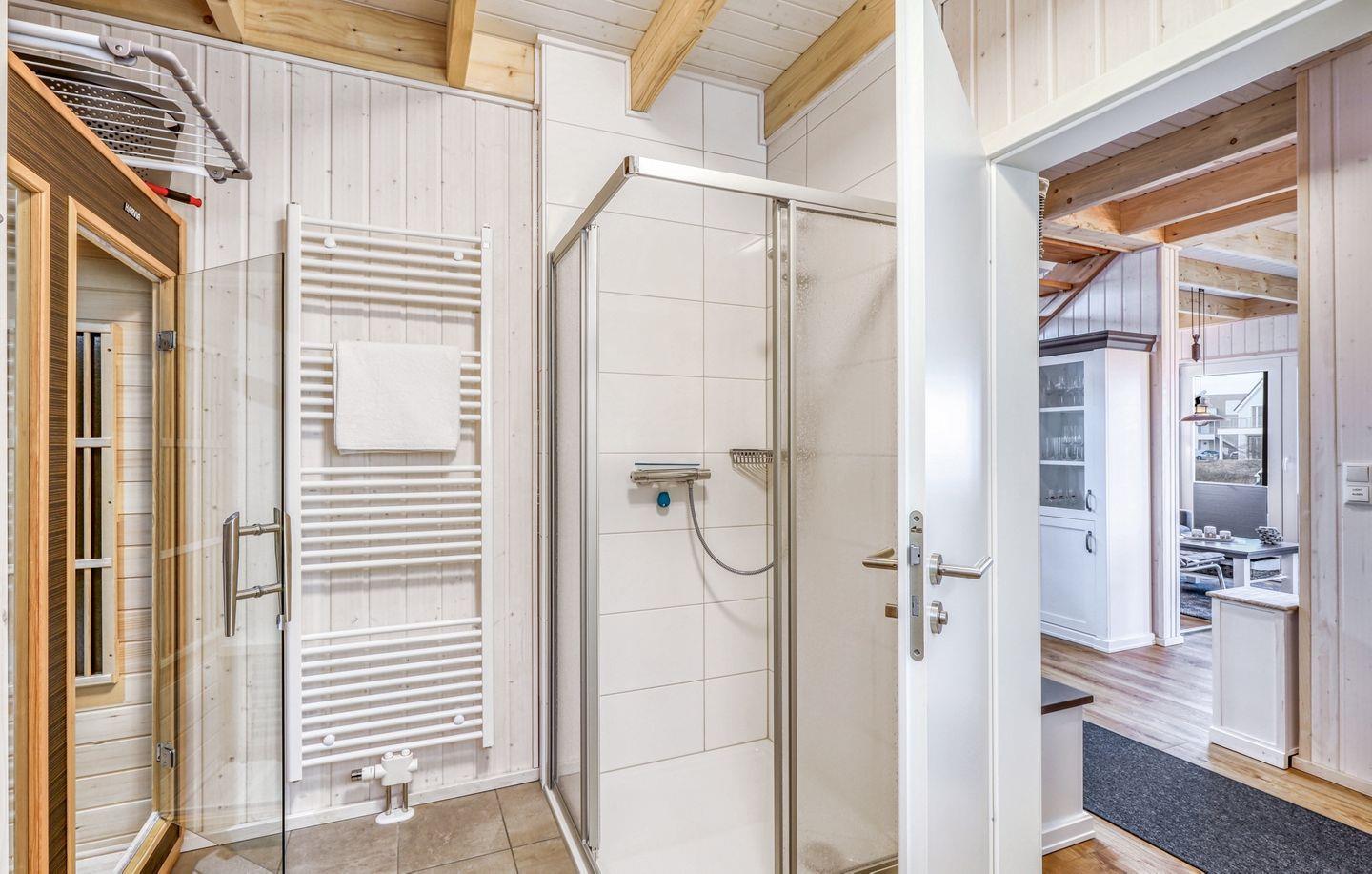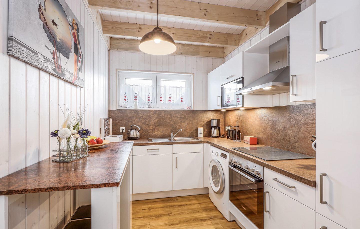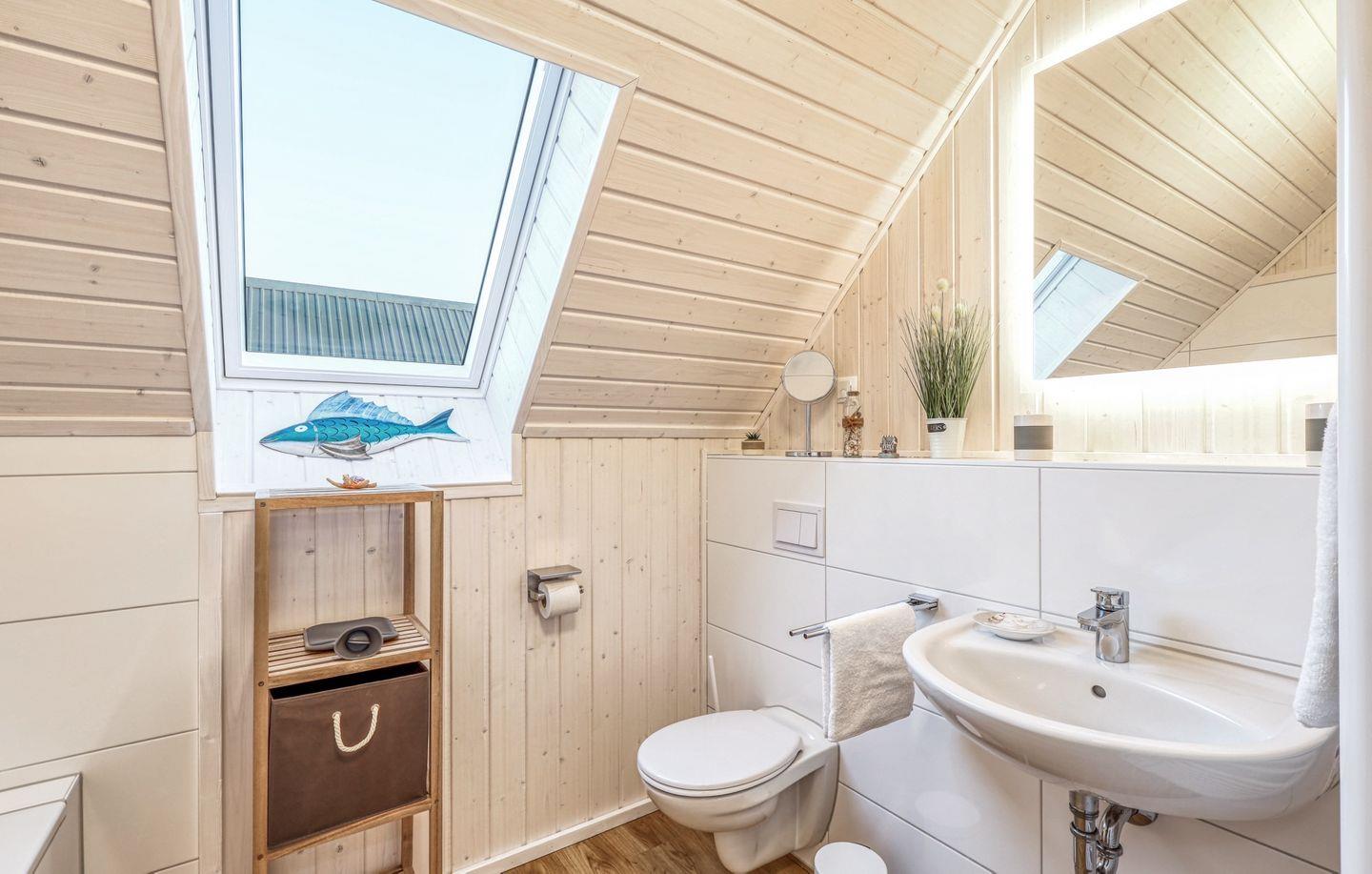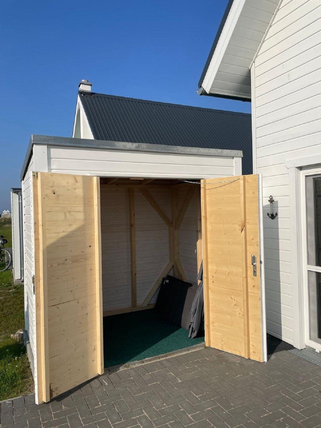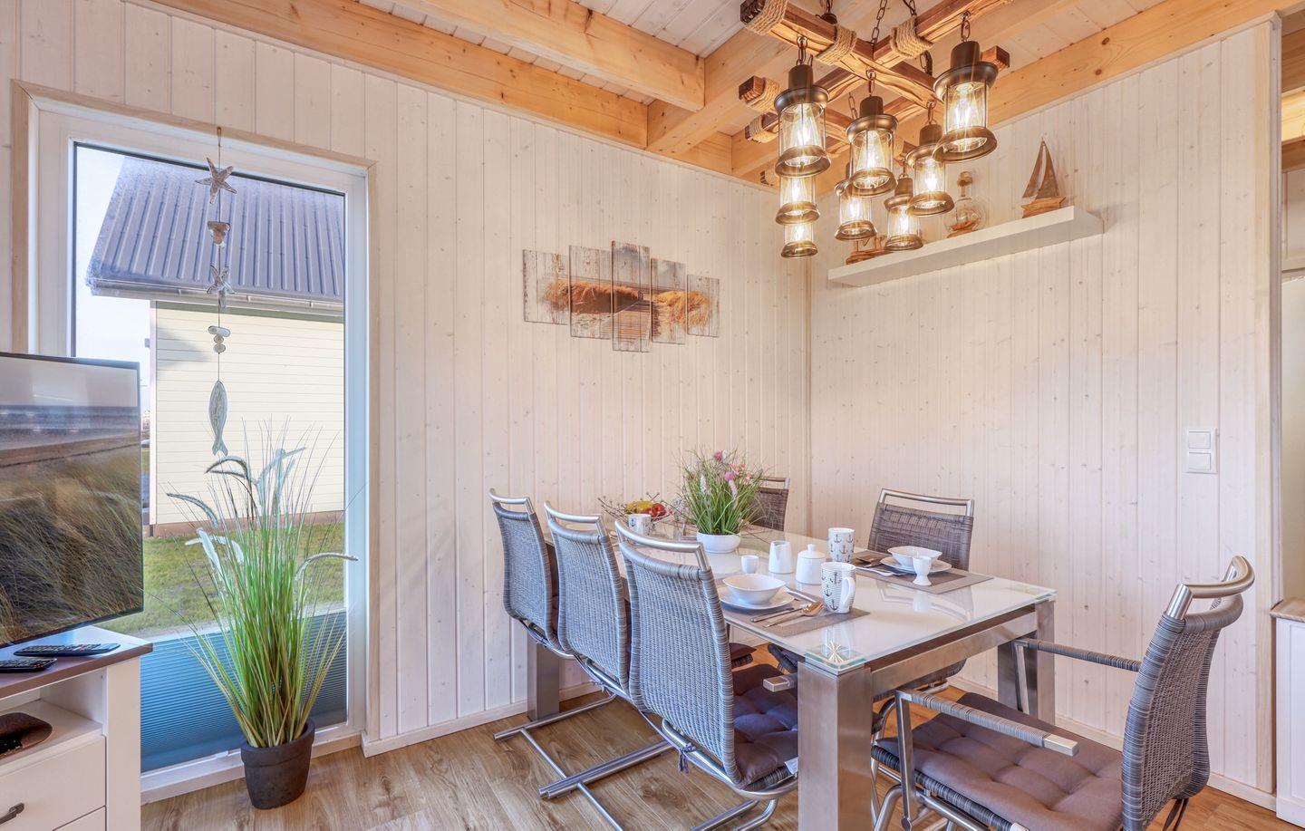 Willkommen in "Störtebekers Koje". Dieses freistehende Ferienhaus mit 80m² bietet Ihnen den perfekten Rückzugsort für unvergessliche Urlaubstage. Im Untergeschoss erwartet Sie ein offener Wohn- und Essbereich, der mit Liebe zum Detail eingerichtet wurde. Bodentiefe Fenster sorgen für eine helle und freundliche Atmosphäre. Im Wohnbereich empfängt Sie ein gemütliches Sofa, welches Sie zudem als Schlafsofa (140x200cm) nutzen können, ideal für zusätzliche Gäste. An kühlen Abenden können Sie es sich vor dem knisternden Kamin gemütlich machen und Ihre Lieblingsserie auf dem Flachbild-TV schauen. Die voll ausgestattete Küche lässt keine Wünsche offen – mit Spülmaschine, Mikrowelle, Ceranfeld und Waschmaschine sind Sie bestens gerüstet. Das großzügige Bad ist ein Highlight: Hier finden Sie eine Infrarotkabine, eine ebenerdige Dusche und eine Handtuchheizung, die für zusätzlichen Komfort sorgt. Im Obergeschoss erwarten Sie zwei geschmackvoll eingerichtete Schlafzimmer. Das erste Schlafzimmer verfügt über ein gemütliches Boxspringbett (180x 200cm), einen Schrank und zwei bequeme Sessel, die sich perfekt als Leseecke eignen. Das zweite Schlafzimmer ist mit zwei Einzelbetten (90x200cm), einem Schrank, einer Kommode und einem Flachbild-TV ausgestattet. Beide Schlafzimmer bieten Insektenschutz und eine Verdunkelungsmöglichkeit, sodass einem erholsamen Schlaf nichts im Wege steht. Für unsere kleinen Gäste wird ein Kinderreisebett und ein Kinderhochstuhl vorgehalten. Genießen Sie die frische Luft auf der Terrasse, die mit bequemen Outdoormöbeln, einem Sonnenschirm und zwei Sonnenliegen ausgestattet ist. Ein Holzkohlegrill lädt zu geselligen Grillabenden ein, während Strandspiele und ein Roller für zusätzlichen Spaß sorgen. Für Ihre Fahrräder steht ein abschließbarer Fahrradschuppen zur Verfügung, und ein eigener Parkplatz direkt vor dem Haus rundet das Angebot ab. Erleben Sie unvergessliche Momente in diesem charmanten Ferienhaus – Ihr perfekter Ort für Erholung und Abenteuer!