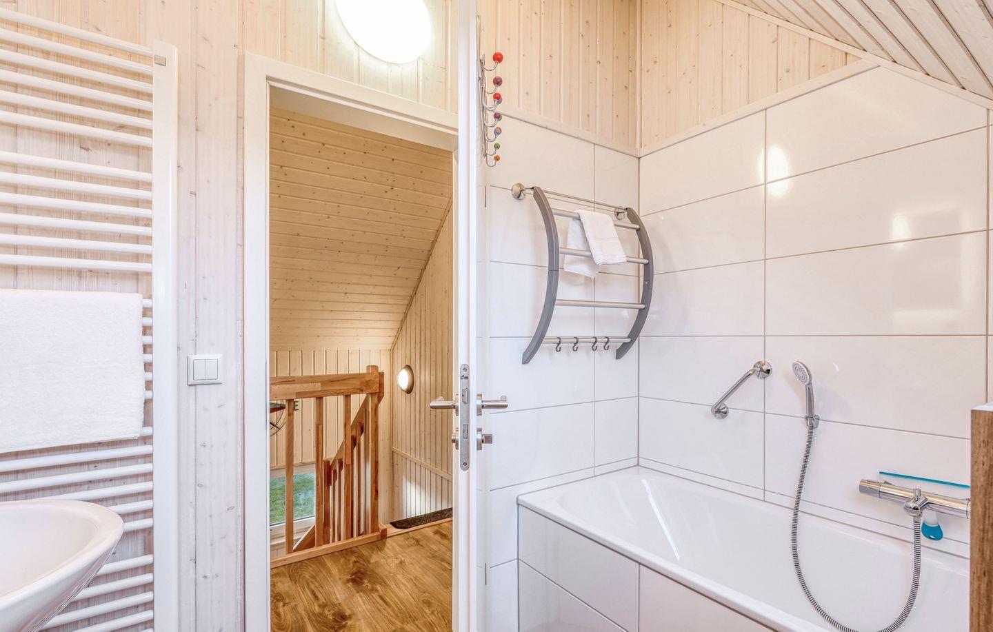 Willkommen in Ihrem freistehenden 80m² großen Ferienhaus. Das Haus verfügt über einen großen Wohn- und Essbereich, eine vollausgestatteten Küche, 2 Bäder und 2 Schlafzimmer. Eines davon bietet ein gemütliches Doppelbett (180x200cm), das weitere 2 Einzelbetten (90x200cm). Ein Bad bietet eine Dusche und eine Infrarotkabine, das andere Bad ist mit einer Badewanne ausgestattet. Die Terrasse ist möbliert. Vor dem Haus steht Ihnen ein Parkplatz zur Verfügung.