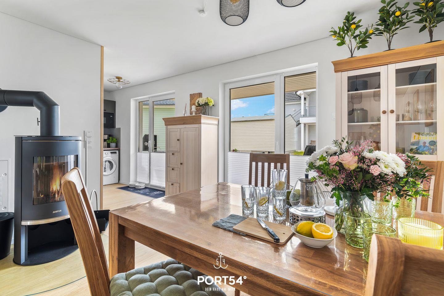 Die Ferienwohnung bietet alles für einen unvergesslichen Urlaub an der Ostsee mit Italienflair! Der "Zitronengarten" teilt sich auf in einen offenen Wohn- und Essbereich mit Küche, zwei Schlafzimmer, ein Badezimmer und eine Terrasse. In der vollausgestatteten Küche können Sie sich leckere Gerichte zaubern und im Wohnzimmer anschließend auf dem Sofa auf dem Flachbild-TV Ihre Lieblingsserie schauen, während der Kamin für eine angenehme und wohlige Wärme sorgt. Das eine Schlafzimmer verfügt über ein gemütliches Boxspring-Doppelbett (180x200cm) und das zweite Schlafzimmer bietet zwei komfortable Boxspring-Einzelbetten (je 90x200cm). Für erholsame Nächte gibt es in beiden Zimmern Verdunkelungsmöglichkeiten und für's nächtliche Entertainment Flachbild-TV. Im Badezimmer finden Sie eine ebenerdige Dusche, einen Handtuchtrockner, sowie einen Föhn. Das absolute Highlight: die Infrarot-Sauna, in der Sie sich nach langen Spaziergängen aufwärmen und entspannen können. Für unsere kleinen Gäste ist ein Kinderhochstuhl vorhanden. Für Ihre Fahrräder befindet sich ein abschließbarer Fahrradschuppen direkt am Haus. Ihr Vierbeiner ist herzlich willkommen und hat bereits zwei Näpfe zur Verfügung.