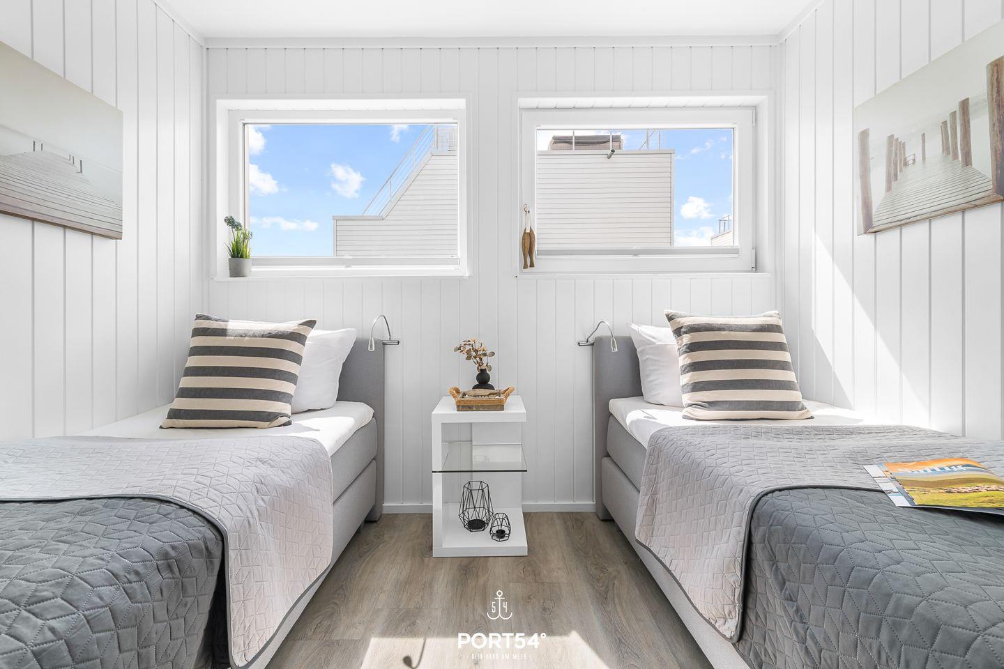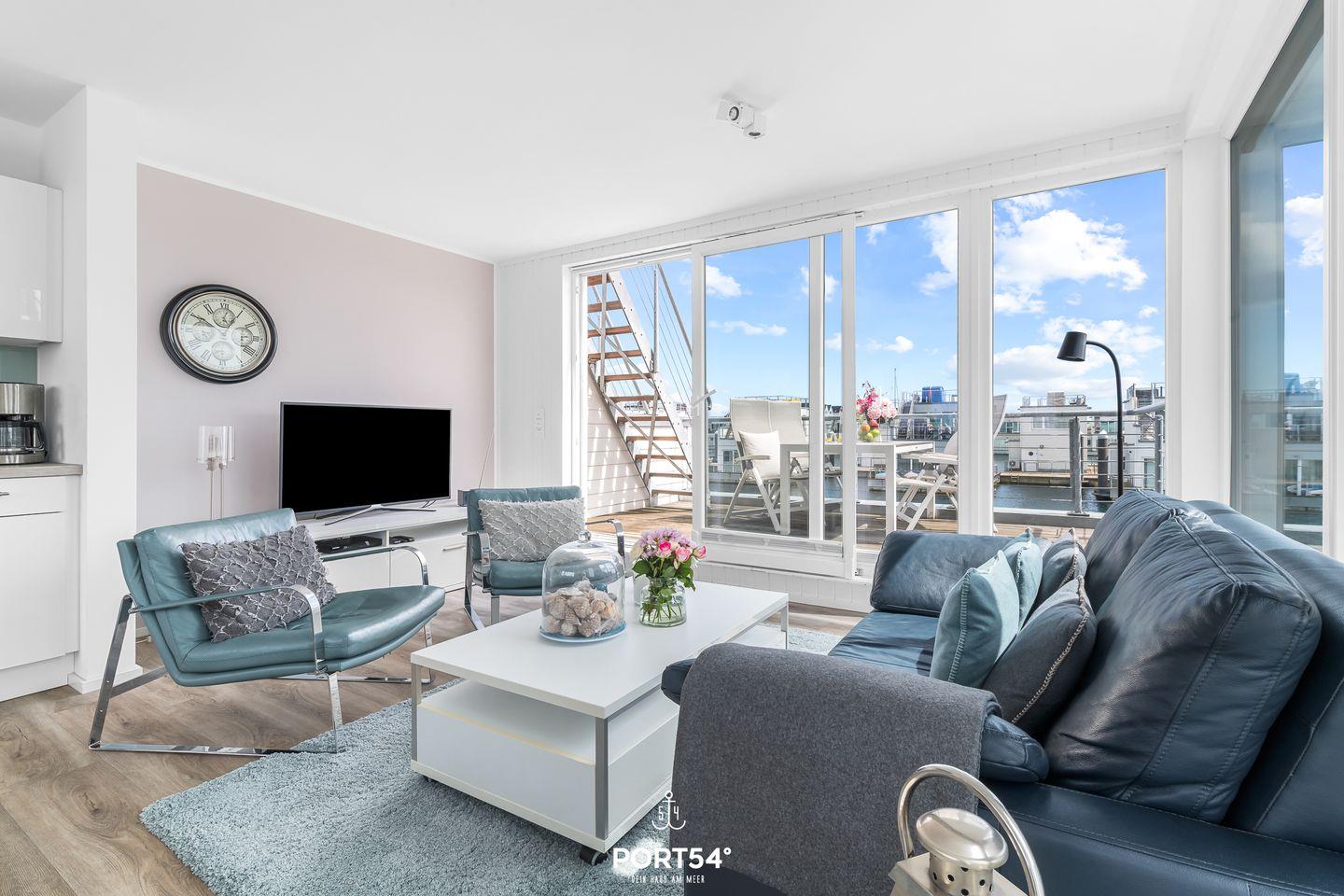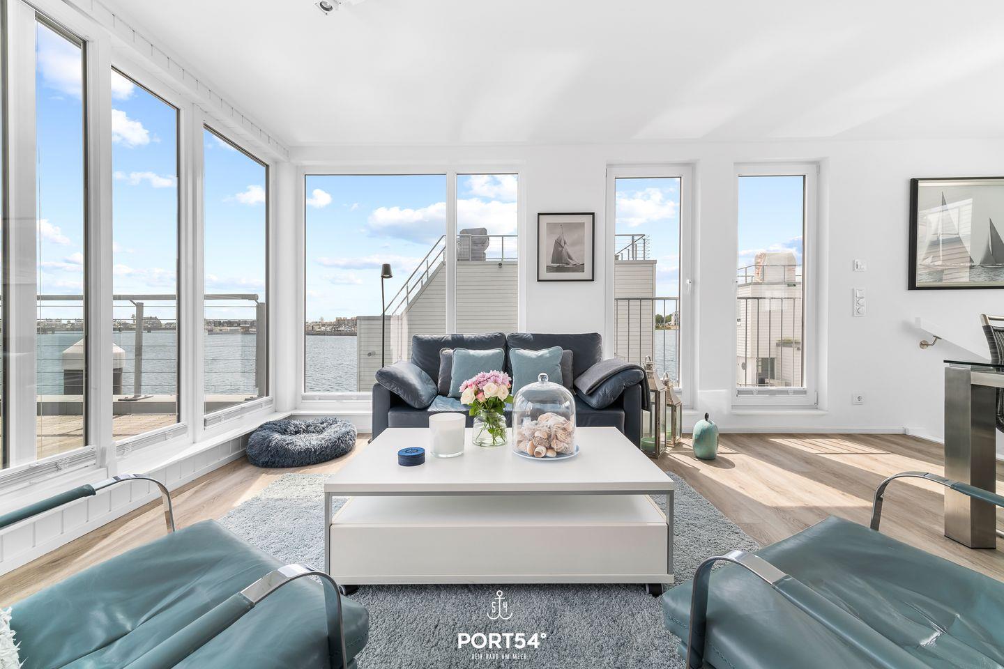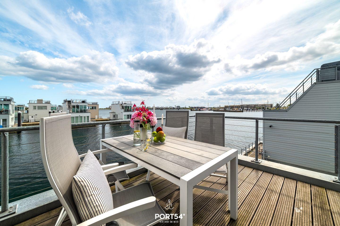 Willkommen in Ihrem schwimmenden Ferienhaus in Olpenitz – ein einzigartiges Refugium für 4 Personen mit direktem Blick auf die Hafeneinfahrt und die Ostsee. Genießen Sie den Luxus und Komfort dieses exklusiven Domizils, das Ihnen ein unvergessliches Urlaubserlebnis auf dem Wasser bietet. Das modern gestaltete Ferienhaus verfügt über bodentiefe Fensterfronten, die für ein lichtdurchflutetes Ambiente und spektakuläre Ausblicke sorgen. Im Erdgeschoss befinden sich zwei gemütliche Schlafzimmer – eines mit komfortablem Doppelbett, das andere mit zwei Einzelbetten. Das Badezimmer überzeugt mit einer bodengleichen Dusche, einer großen Spiegelfront und stilvoller Ausstattung. Für erholsame Stunden steht Ihnen eine finnische Sauna zur Verfügung. Im Obergeschoss erwartet Sie die bestens ausgestattete Küche mit Essbereich, offen gestaltet zum großzügigen Wohnbereich mit gemütlicher Sofalandschaft. Drei Terrassen laden zum Verweilen ein, darunter eine beeindruckende 30m² große Dachterrasse mit 360-Grad-Schleiblick. Für kulinarische Genüsse sorgt ein Weber Elektrogrill, während der exklusive Bootsliegeplatz Wassersportlern und Bootsbesitzern besonderen Komfort bietet. Zusätzliche Sitzgelegenheiten sind durch zwei extra Bänke sowie eine spezielle „Sundowner Bank“ am Eingang gegeben. Technische Highlights wie dimmbare Beleuchtung, Telekom Home Entertainment und ein Internetradio runden das Angebot ab. Zwei Außenstellplätze stehen Ihnen während Ihres Aufenthalts zur Verfügung.